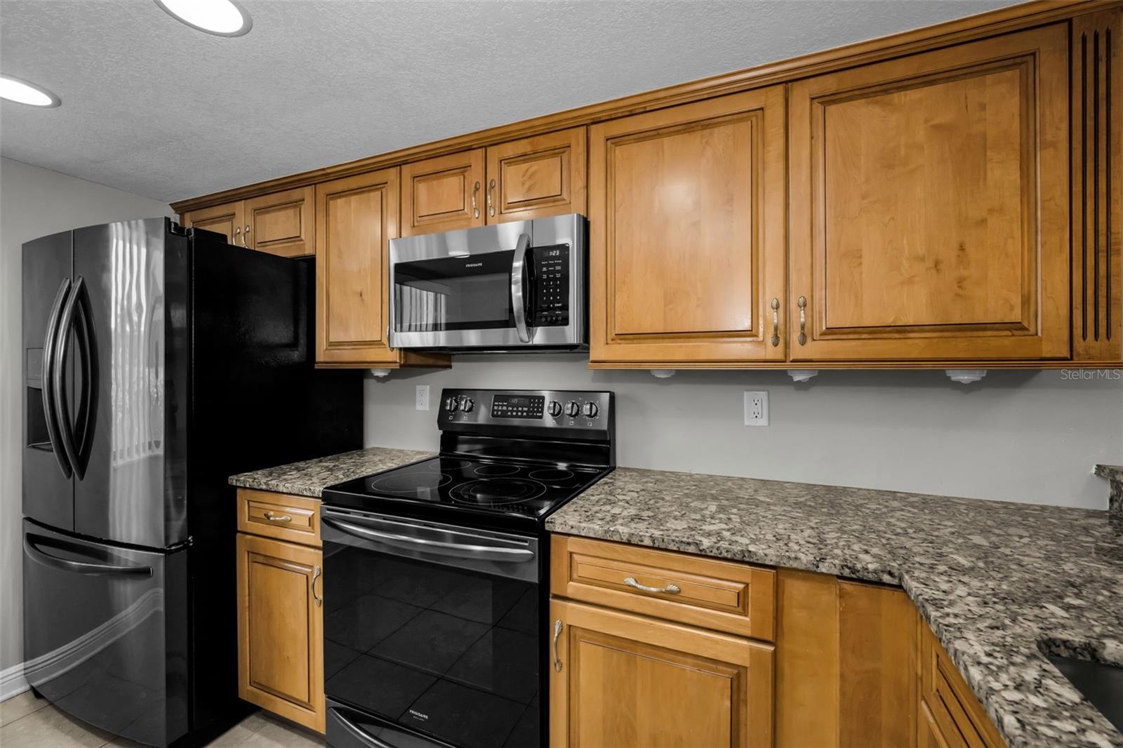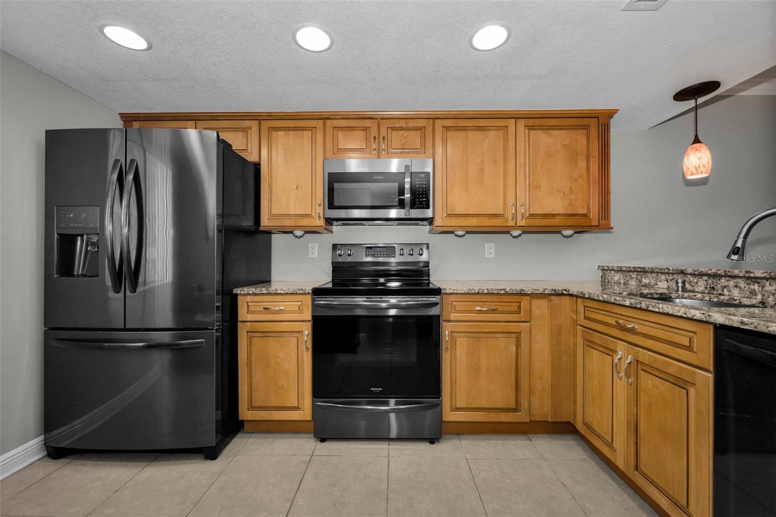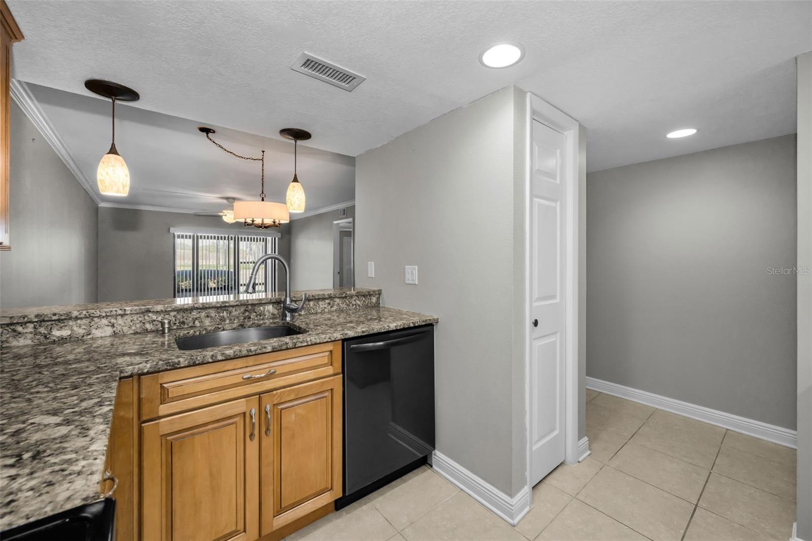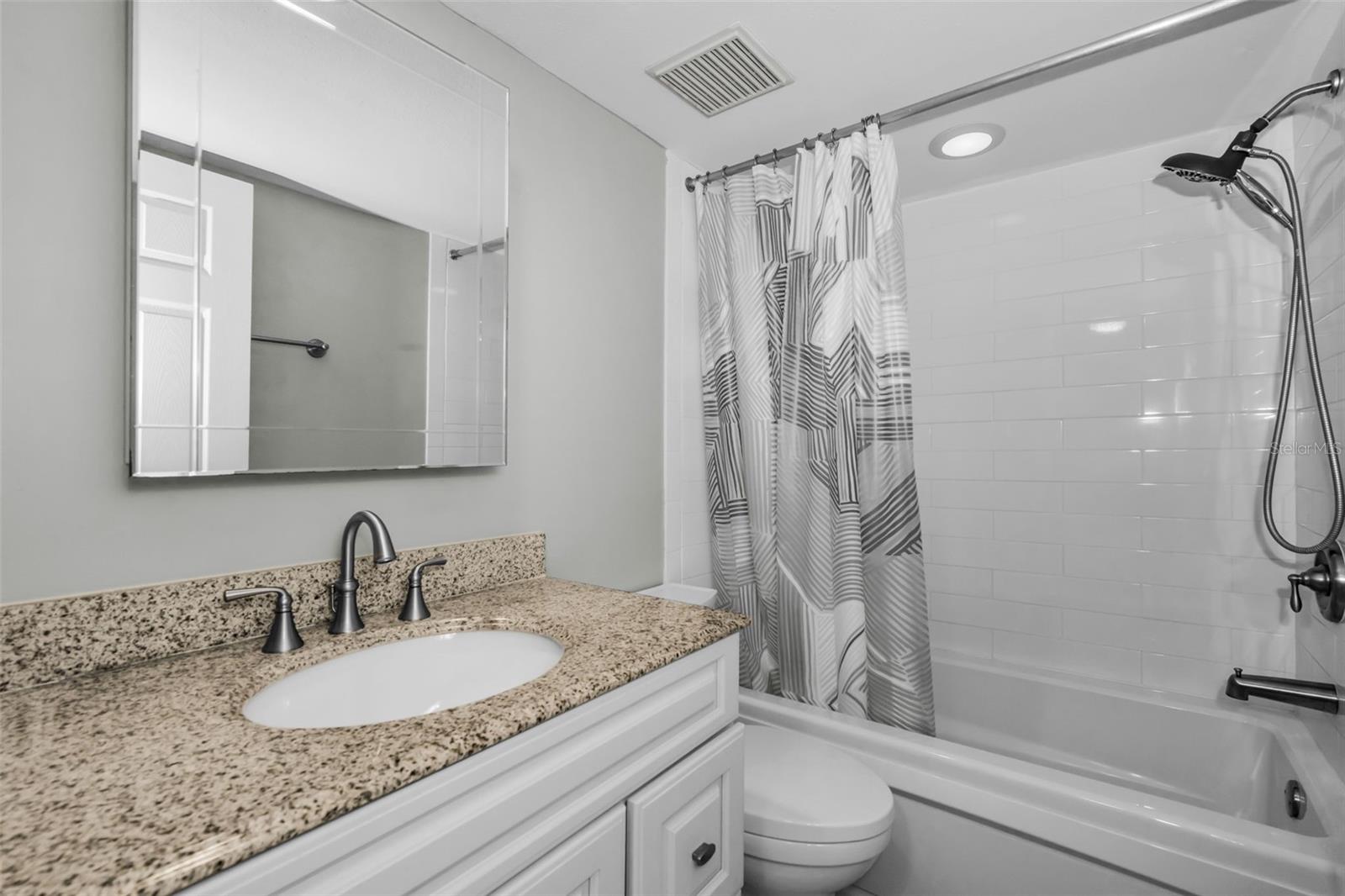 This East Lake Woodlands gem is a must-see. This renovated two-bedroom, two-bath downstairs condo offers comfort, convenience, and a beautiful natural setting. Enjoy a peaceful backyard view overlooking green space and a conservation area where wildlife is often seen. As you enter the front door, the renovated kitchen is to your left, featuring stone countertops and abundant storage. The entire condo has tile flooring throughout, creating a clean and cohesive look. The living area opens to a screened lanai that includes a washer and dryer for added convenience. Being a downstairs unit, this condo offers easy access from your reserved covered carport. The spacious primary bedroom is located on the right side of the condo and features three closets along with a beautifully renovated ensuite bathroom. On the opposite side, the guest bedroom is generously sized and can comfortably accommodate a queen-size bed, with the guest bathroom conveniently located just outside the door. The community offers a crystal-clear pool, ample guest parking, and a 24/7 guard-gated entrance. Residents receive a car pass for easy access through all gated entrances. Ideally located close to shopping, theaters, clothing stores, and a wide variety of dining options ranging from casual to fine dining, this condo truly has it all.