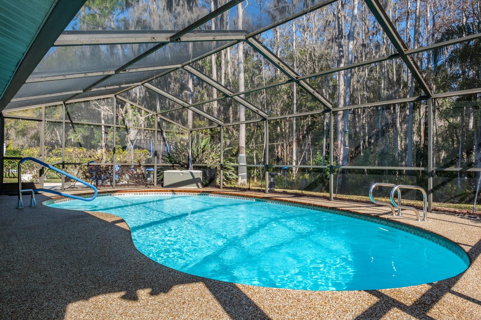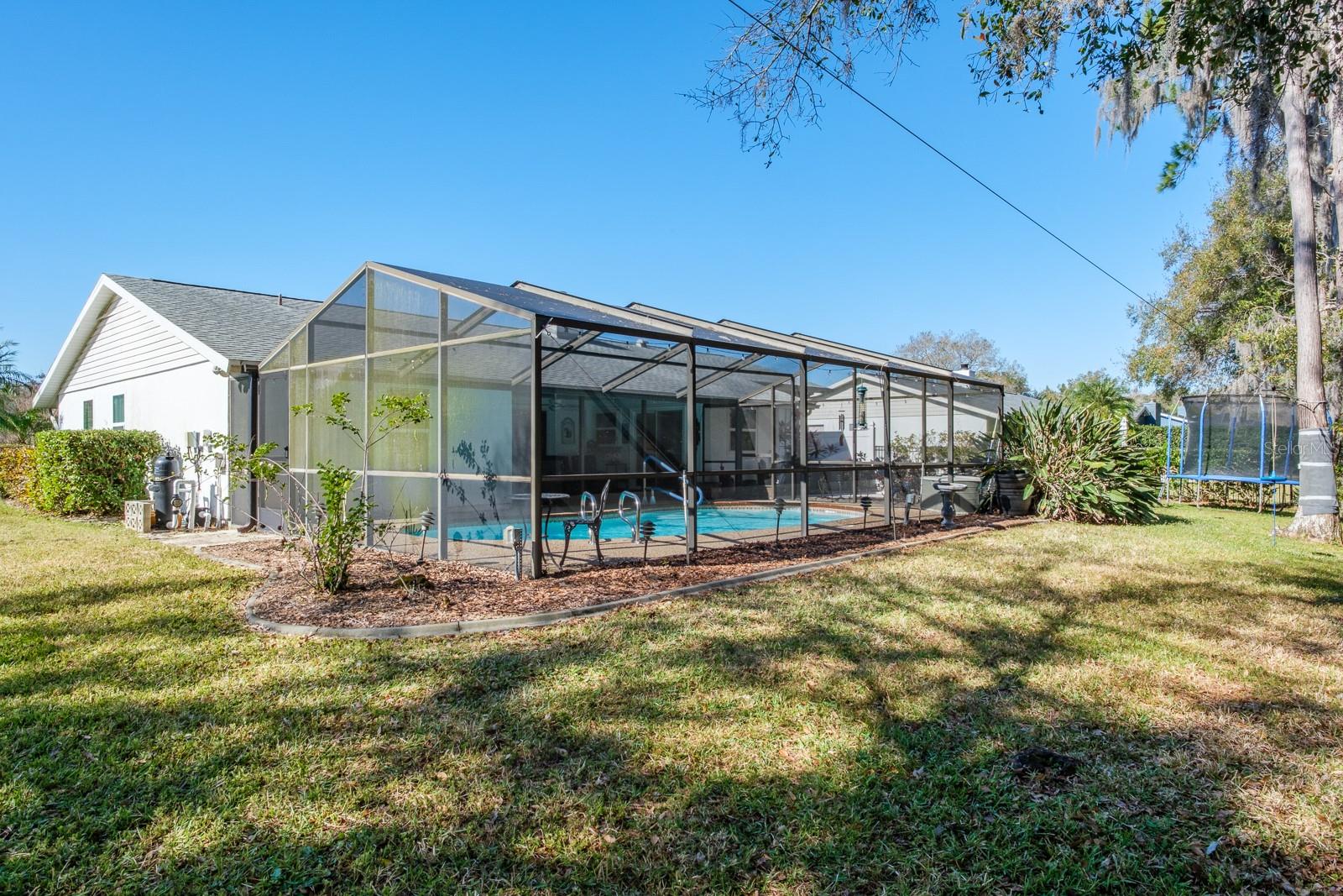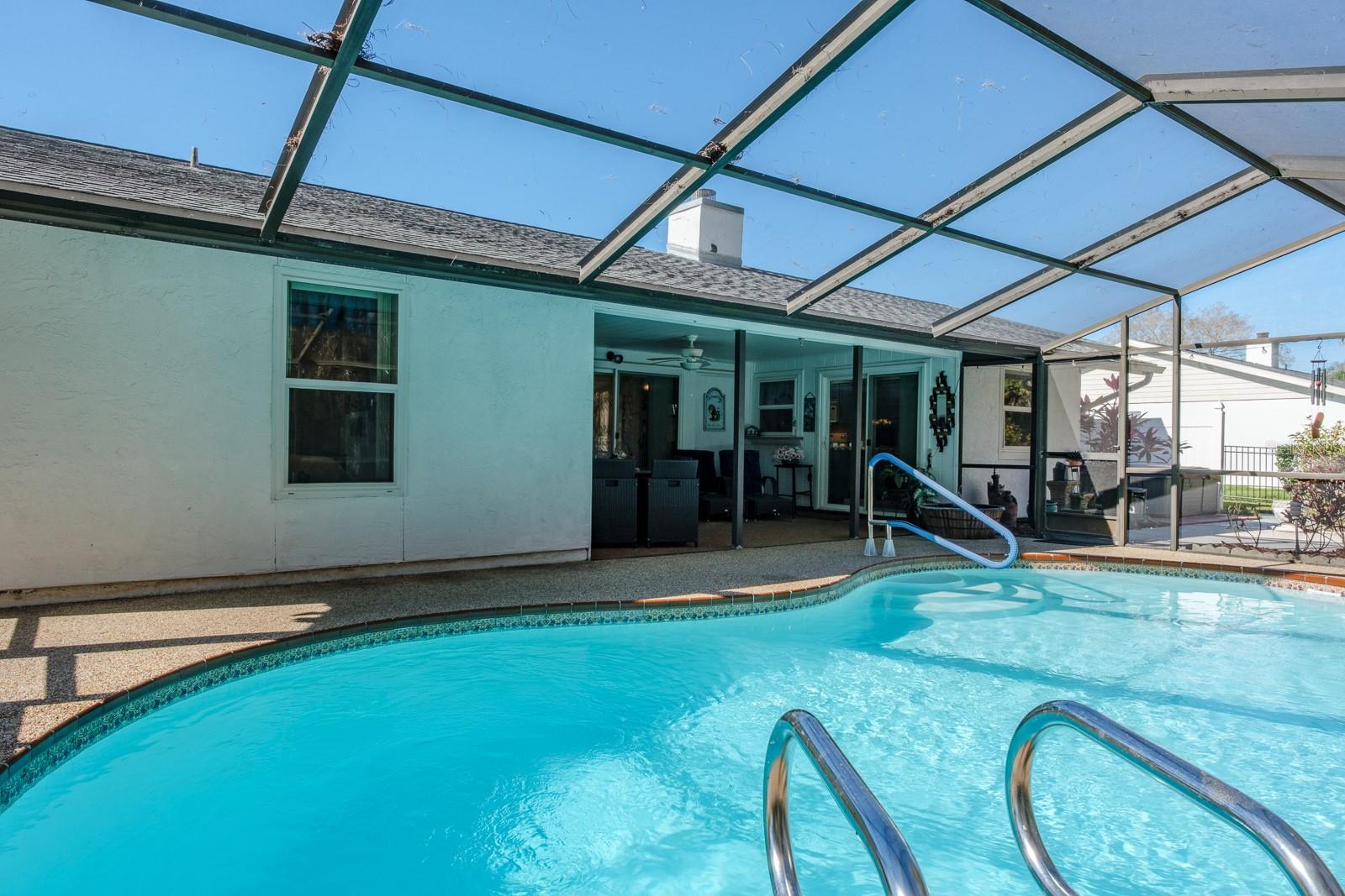Location! Location! Location! This stunning pool home in the sought after community of Forest Lakes sits on an oversized corner lot and offers tranquil water and conservation views.; Move-in ready, delightfully updated home of nearly 1,700 sq.ft. features 3 bedrooms in a desirable split floorplan layout, 2 brilliantly renovated baths and an oversized 2 car garage. Enter thru the double leaded glass doors to the fabulous main living area featuring luxury vinyl flooring (2023) and centered by an elegant decorative stone and granite accented wood burning fireplace and offering views of your gorgeous pool side lanai thru large sliders. The spacious formal dining room also features luxury vinyl flooring and is an ideal space for entertaining. The extended galley kitchen boasts raised panel cabinetry, epoxy coating countertops, tile backsplash, dual stainless-steel sinks, large built in cabinet pantry including butler pull out drawers and plenty of storage and counter space for family meals and entertaining. Appliances include ceran top range, built in microwave, side by side refrigerator and dishwasher. The built-in desk is convenient and ideal for office space or homework area. The spacious eat in area offers tranquil serenity overlooking the lanai and pool. A perfectly situated laundry room is located just off the kitchen. The seller is generously including the washer and dryer with the sale of the home. Large primary suite features a walk-in closet and spectacular remodeled ensuite bath (2023). The magnificent, spa like bathroom boasts gorgeous tile flooring, designer vanity with quartz counter, undermount sink, spacious full walk-in shower with decorative tile accents and a bench seat... absolutely stunning! The secondary bedrooms and bath are conveniently situated on the other side of the home offering ultimate privacy. The spectacular remodeled second bath (2023) boasts dual vanities with undermount sinks, granite countertop, an enormous walk-in shower with fashionable frameless glass, floor to ceiling designer tilework, dual shower heads, corner bench seat and niche. Gorgeous!!! Entertaining and family living space is extended outdoors with a covered lanai accented by river rock decking and a vaulted screen enclosed saltwater pool (2023). Florida living at its best… enjoy a morning cup of coffee or afternoon cocktail watching the turkeys and deer graze while overlooking the tranquil pond and serene conservation views. Other notable updates include interior paint 2023, Roof 2015, AC Jan 2016, Impact windows and sliding glass doors. Forest Lakes Community offers basketball, racquetball, tennis and pickle ball courts, community pool, playground and picnic area. Zoned for top rated schools! Quick drive to Tampa International Airport & minutes from shopping, restaurants and a short drive to Dunedin’s Honeymoon Island. Florida living… can’t beat it!