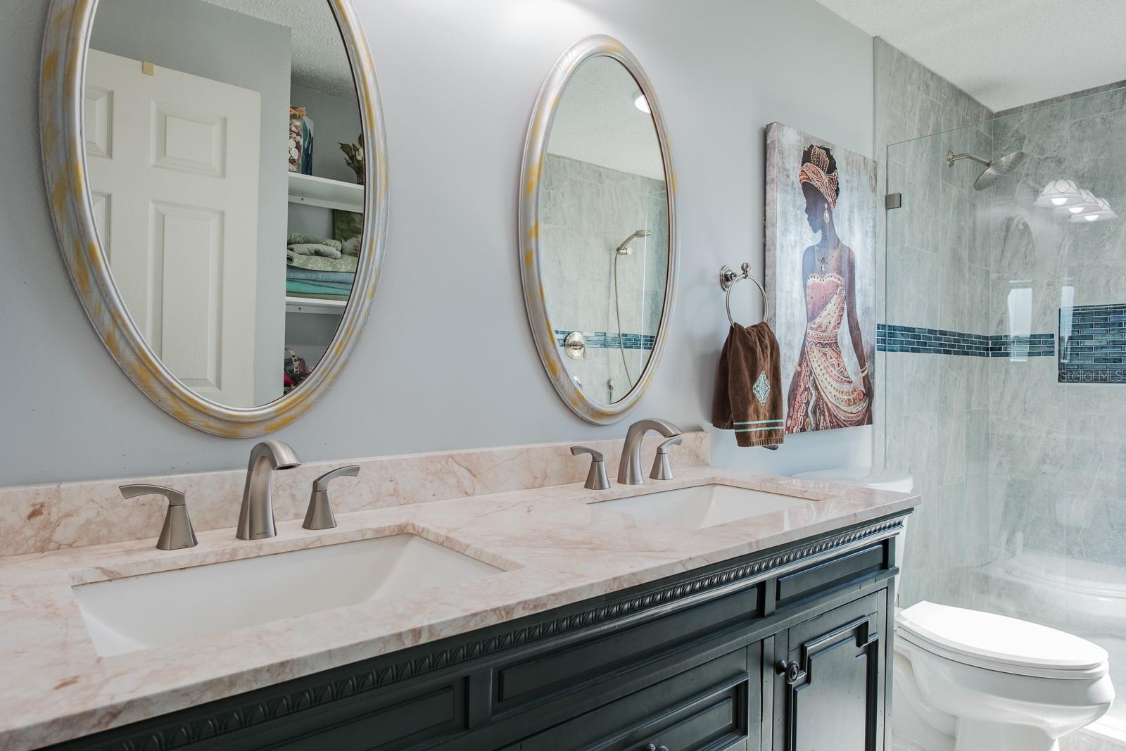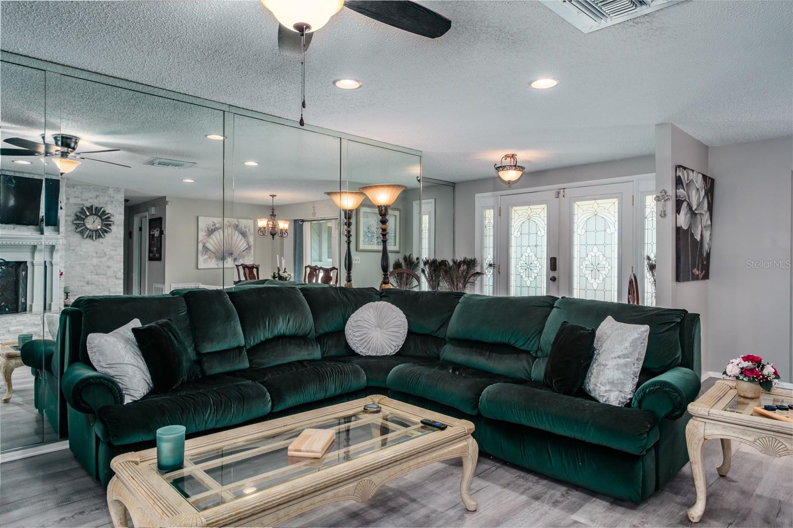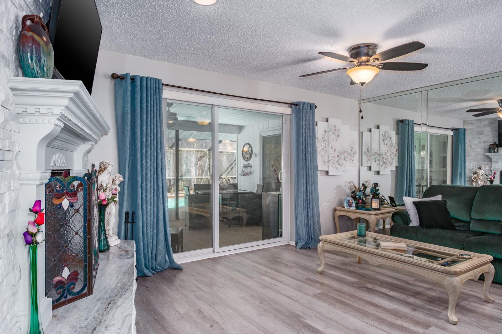 Location! Location! Location! This stunning pool home in the sought after community of Forest Lakes sits on an oversized corner lot and offers tranquil water and conservation views.; Move-in ready, delightfully updated home of nearly 1,700 sq.ft. features 3 bedrooms in a desirable split floorplan layout, 2 brilliantly renovated baths and an oversized 2 car garage. Enter thru the double leaded glass doors to the fabulous main living area featuring luxury vinyl flooring (2023) and centered by an elegant decorative stone and granite accented wood burning fireplace and offering views of your gorgeous pool side lanai thru large sliders. The spacious formal dining room also features luxury vinyl flooring and is an ideal space for entertaining. The extended galley kitchen boasts raised panel cabinetry, epoxy coating countertops, tile backsplash, dual stainless-steel sinks, large built in cabinet pantry including butler pull out drawers and plenty of storage and counter space for family meals and entertaining. Appliances include ceran top range, built in microwave, side by side refrigerator and dishwasher. The built-in desk is convenient and ideal for office space or homework area. The spacious eat in area offers tranquil serenity overlooking the lanai and pool. A perfectly situated laundry room is located just off the kitchen. The seller is generously including the washer and dryer with the sale of the home. Large primary suite features a walk-in closet and spectacular remodeled ensuite bath (2023). The magnificent, spa like bathroom boasts gorgeous tile flooring, designer vanity with quartz counter, undermount sink, spacious full walk-in shower with decorative tile accents and a bench seat... absolutely stunning! The secondary bedrooms and bath are conveniently situated on the other side of the home offering ultimate privacy. The spectacular remodeled second bath (2023) boasts dual vanities with undermount sinks, granite countertop, an enormous walk-in shower with fashionable frameless glass, floor to ceiling designer tilework, dual shower heads, corner bench seat and niche. Gorgeous!!! Entertaining and family living space is extended outdoors with a covered lanai accented by river rock decking and a vaulted screen enclosed saltwater pool (2023). Florida living at its best… enjoy a morning cup of coffee or afternoon cocktail watching the turkeys and deer graze while overlooking the tranquil pond and serene conservation views. Other notable updates include interior paint 2023, Roof 2015, AC Jan 2016, Impact windows and sliding glass doors. Forest Lakes Community offers basketball, racquetball, tennis and pickle ball courts, community pool, playground and picnic area. Zoned for top rated schools! Quick drive to Tampa International Airport & minutes from shopping, restaurants and a short drive to Dunedin’s Honeymoon Island. Florida living… can’t beat it!