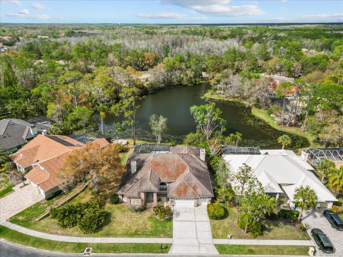 Welcome to Greenhaven II, where this beautiful waterfront homesite create a serene setting within the desirable gated community of East Lake Woodlands. This spacious 4 bedroom, 3 bath residence offers 3,098 SqFt of living space with a 3 car garage on a Cul-De-Sac street, perfectly designed for comfortable living and effortless entertaining. Approaching the home welcoming double door entry set the stage. As you step through the double door foyer, you are greeted by a formal living room with soaring 12’ ceilings and views of the pool and tranquil water beyond. Natural light fills the space, creating a warm and inviting first impression. Just off the foyer is a formal dining room, ideal for gatherings and holiday meals, complete with a convenient butler’s pantry that provides additional serving and storage space. Moving further into the home, the layout opens to the light and bright kitchen and great room, designed with an open concept that is perfect for everyday living and entertaining. The great room features 12’ ceilings, a wood-burning fireplace, and large sliding glass doors that lead out to the pool and lanai area, seamlessly blending indoor and outdoor living.The kitchen offers abundant workspace and storage with wood cabinetry, granite countertops, tile backsplash, a pantry, breakfast bar, and an eat-in dining area, making it a central gathering place for family and guests alike. Step outside to enjoy the expansive outdoor lanai, featuring an exceptionally spacious covered outdoor living area, caged pool and spa, with peaceful water views, the perfect place to relax, entertain, or enjoy Florida living year-round. The Primary Bedroom Suite is privately situated and generously sized, featuring sliding doors with direct access to the pool area. The suite also includes a generous walk-in closet and a primary bathroom with double vanity, walk-in shower, and garden tub. Bedroom 2 is features its own private bathroom, perfect for guests or extended family. Bedrooms 3 and 4 share a convenient Jack and Jill bathroom, providing functionality for family members. The Laundry room is complete with washer and dryer, for everyday convenience. The 3-car garage offers ample parking along with plenty of storage space. Located in one of the Tampa Bay Area’s premier golf, tennis, and country club communities, residents can enjoy the Optional membership at the on-site Ardea Country Club, offering exceptional amenities including golf, tennis, pickleball, lap pool, fitness center, restaurant, and social events for family and guests. Conveniently located minutes from highly rated schools, airports, shopping, restaurants, beaches, arts and entertainment, as well as Tampa Bay sports venues. This location has it all, along with No flood insurance required. AC 2019, Metal/tile Roof 2004, water heater aprox 2020 This home offers space, comfort, and a lifestyle that truly captures the best of Florida living. A must see today!