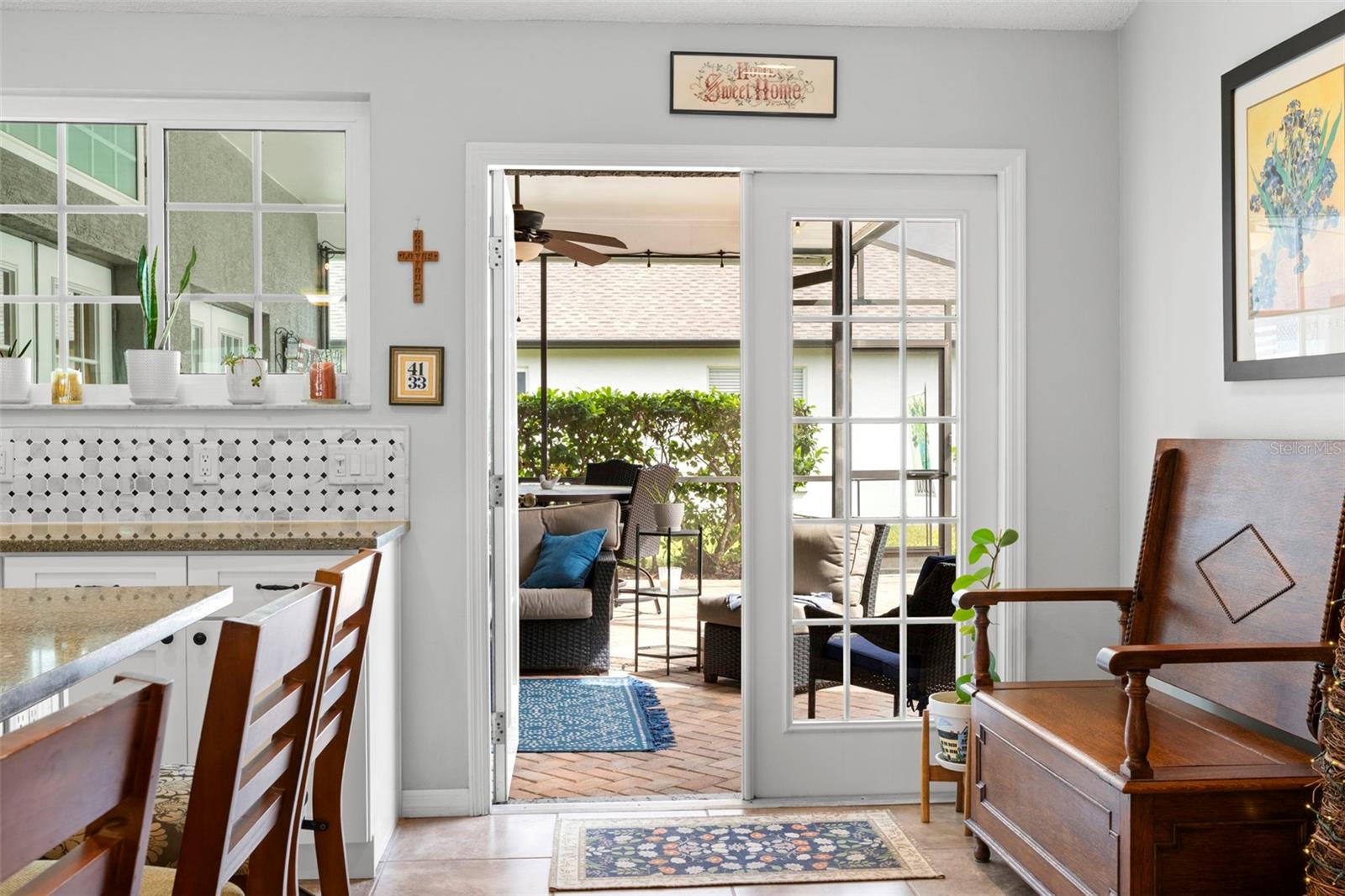 Welcome to an exceptional opportunity in the highly desirable Stonebriar enclave of East Lake Woodlands—where timeless design meets effortless Florida living. This impeccably maintained four-bedroom, two-bath pool home showcases true pride of ownership and offers a seamless blend of comfort, functionality, and style. From the moment you arrive, the home’s pristine condition and inviting curb appeal set the tone. Step through the front door and be immediately captivated by a stunning sightline that draws your eye through the living space to the screened lanai and sparkling pool beyond—an ideal introduction to the indoor-outdoor lifestyle that defines this residence. To the right, the formal dining room offers generous proportions, perfect for hosting gatherings both intimate and grand. Straight ahead, the formal living room provides direct access to the lanai, creating a fluid transition for entertaining and allowing you to fully embrace Florida’s beautiful weather year-round. Privately positioned to the left of the entry, the primary suite is a serene retreat featuring its own access to the lanai. The en suite bath is thoughtfully appointed with a deep soaking tub, step-in shower, and a spacious walk-in closet—delivering both comfort and convenience. At the heart of the home, the updated kitchen is a standout, boasting white shaker cabinetry, stone countertops, and an elegant tile backsplash. A breakfast bar and optional nook space add flexibility, while the open layout flows effortlessly into the family room, complete with a cozy wood-burning fireplace—perfect for relaxed evenings at home. The split-bedroom floor plan enhances privacy, with three additional generously sized bedrooms located toward the rear of the home, each offering ample closet space. The secondary bath features a tub/shower combination and provides direct access to the laundry room and lanai, functioning perfectly as a pool bath. Step outside to your private oasis—an expansive screened lanai featuring a solar heated saltwater pool, ideal for year-round enjoyment. The covered area offers the perfect setting for outdoor dining and lounging, and select patio furnishings are available for purchase, making this space move-in ready for immediate enjoyment. A spacious backyard completes the outdoor experience. With its thoughtful layout, stylish updates, and inviting indoor-outdoor flow, this home is truly ready for its next chapter. Don’t miss the opportunity to experience everything this exceptional property has to offer—schedule your private showing today.