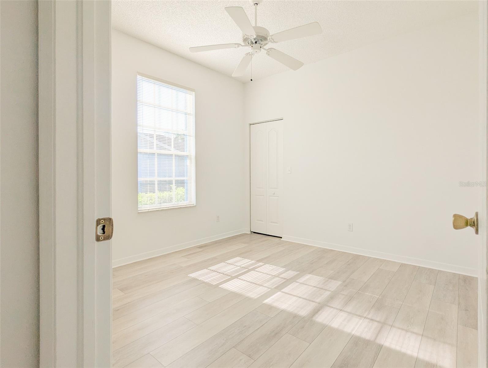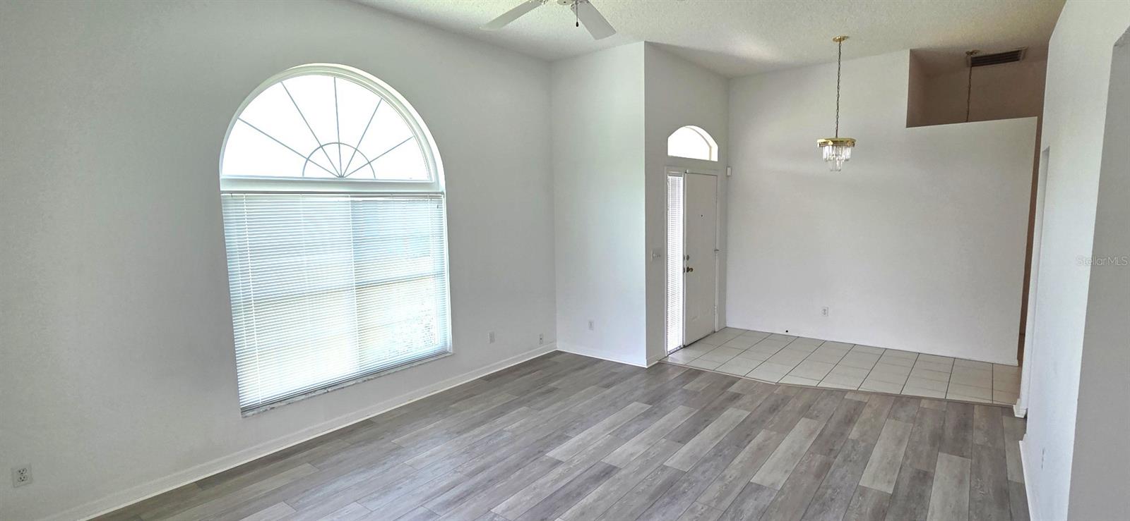 This beautifully maintained end-unit villa offers the perfect combination of comfort, privacy, and modern upgrades along with water views from most rooms. Step inside to high-volume ceilings that create a bright and spacious atmosphere throughout. The home features all-new luxury flooring, giving every room a sleek and cohesive look. The thoughtful layout includes a separate living and dining area, ideal for both everyday living and entertaining guests. From here, step out onto your private screened lanai with an epoxy floor, overlooking a serene pond—a perfect spot for morning coffee or relaxing evenings. The back yard is fenced for extra privacy. The split-bedroom floorplan has a spacious primary suite boasting a large walk-in closet and an en suite bathroom with a walk-in shower and dual sink vanity. The open, tiled kitchen is a chef’s delight, offering ample counter space and a convenient breakfast bar. Additional highlights include a 2-car garage with extra driveway space, French drains, rain gutters, and the added privacy of an end unit. Conveniently located near shopping, airports, schools, beaches, and the community pool, this villa truly combines style, convenience, and tranquility. Your new home awaits—move in and enjoy the perfect blend of comfort and elegance!
