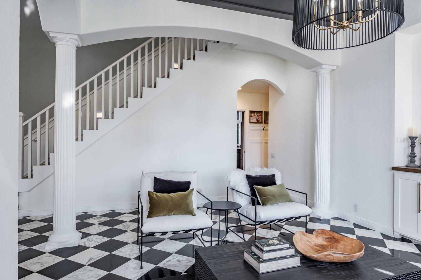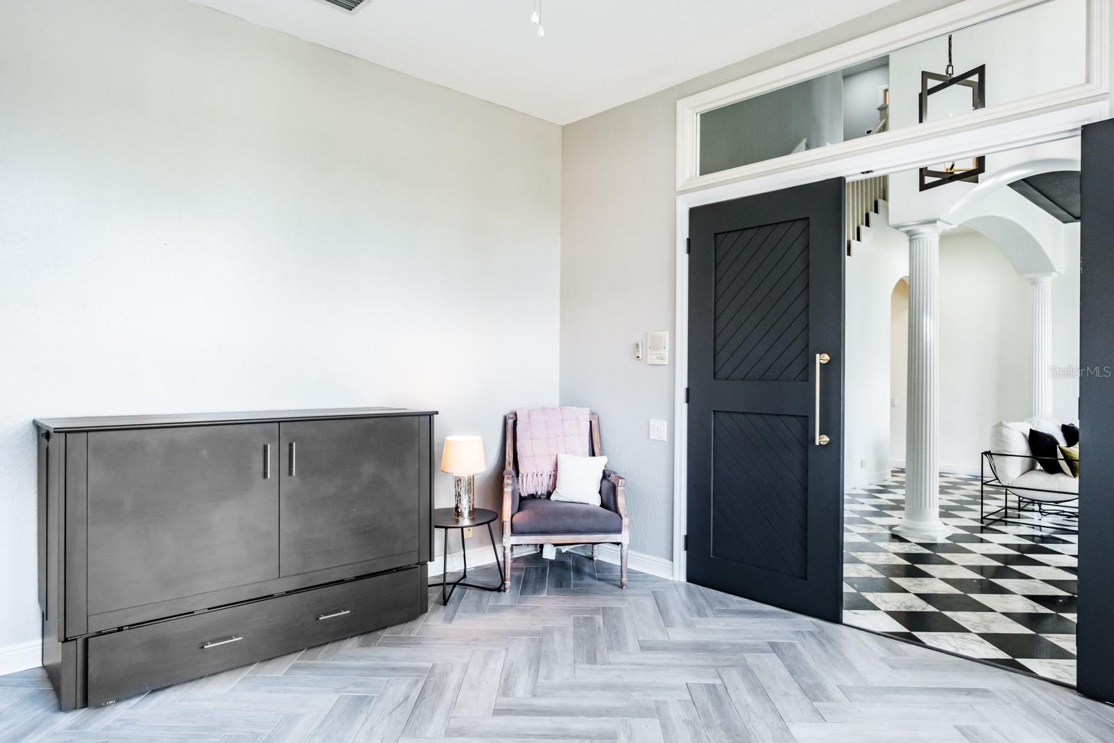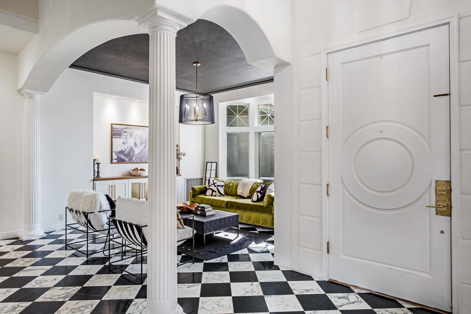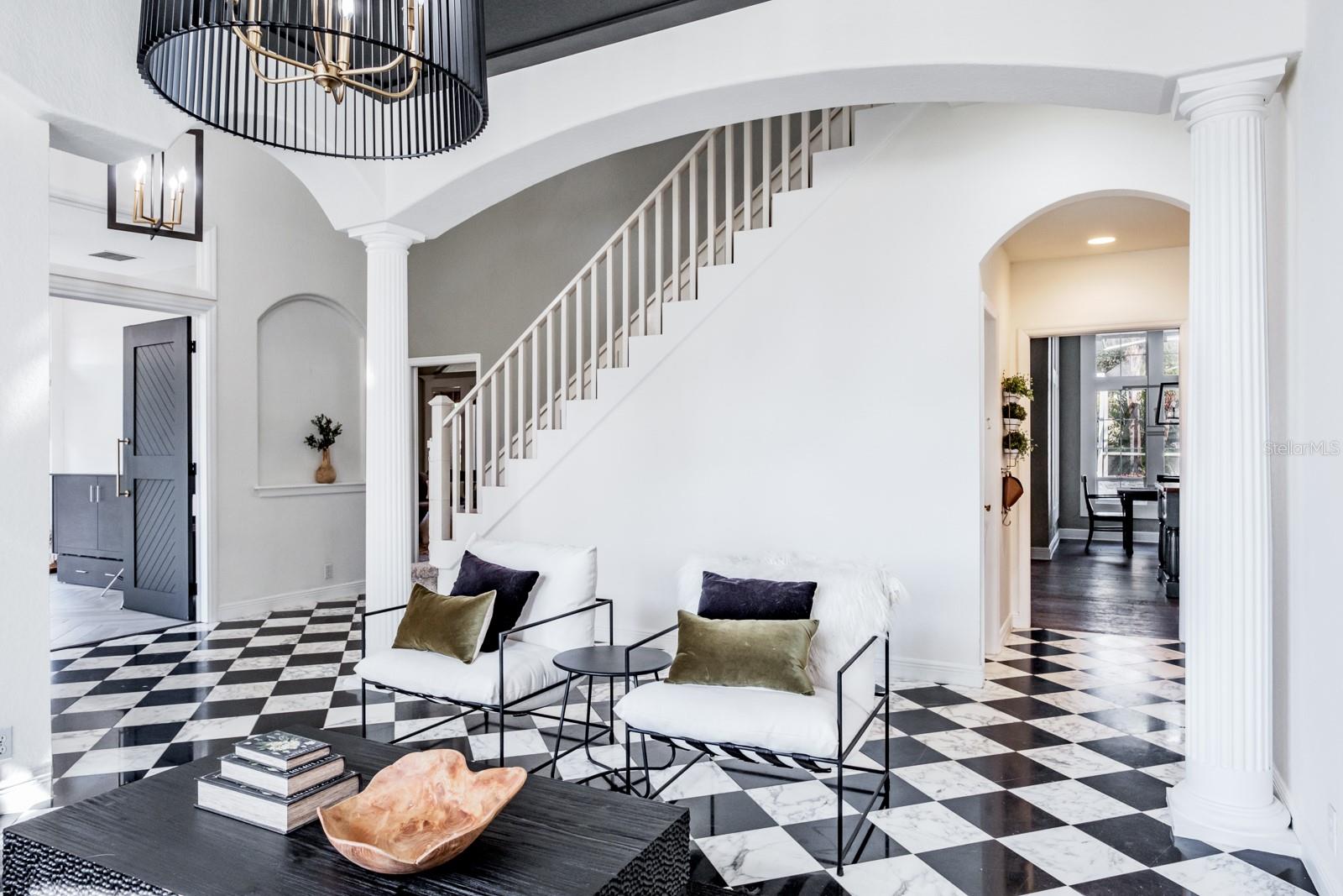 Exquisite Estate Home in the Prestigious Aberdeen Enclave of East Lake Woodlands...Located within the highly sought-after, gated community of East Lake Woodlands and the exclusive Aberdeen enclave, this beautifully appointed residence offers refined living in one of the area’s most desirable neighborhoods. Positioned on an oversized 0.33-acre cul-de-sac lot, this approximately 3,300-square-foot home blends timeless elegance, quality craftsmanship, and thoughtful design. The home welcomes you with a dramatic two-story foyer featuring a sweeping volute staircase with wood spindles. Elegant black and white Carrera marble harlequin tile flooring enhances the entry and formal dining room, while rich 8-inch distressed hickory flooring flows through the kitchen and family room. The spacious layout offers 4 bedrooms plus a dedicated study/den, 3 full bathrooms, and 1 half bath. Oversized upstairs bedrooms provide comfortable accommodations for family and guests. For added protection and efficiency, the home also features 12 newly installed impact windows across the front of the home and in all three upstairs bedrooms, providing enhanced storm protection, energy efficiency, and peace of mind. At the center of the home is a gourmet kitchen designed for both everyday living and entertaining. Features include granite countertops, a solid wood center island, custom Ash wood cabinetry, stainless steel appliances, and a Monogram four-burner gas range with griddle and vent hood. A large walk-in pantry and counter-height breakfast bar add convenience, while a stylish built-in mini bar with a wine cooler enhances the home’s entertaining appeal. A two-sided gas fireplace connects the kitchen and family room, creating a warm and inviting atmosphere. The luxurious primary suite serves as a private retreat with sliding doors opening to the patio. A grand gas fireplace with a custom mantel adds character, while the spa-inspired bathroom features dual vanities, a private water closet, a walk-in shower with dual showerheads, and a stunning clawfoot soaking tub positioned in a bay window beneath a chandelier. Expansive walk-in closets with custom built-ins complete the suite. Outdoor living is equally impressive. The backyard showcases an oversized pool with automation, solar heating, and a spillover spa with optional propane heating. Travertine pavers surround the pool area, and the covered screened patio provides multiple seating and entertaining spaces. Mature landscaping and decorative accent planters create a private resort-style setting. The irrigation system utilizes reclaimed water. Additional highlights include a barrel tile roof (2013), brick-paver driveway, oversized three-car garage, large laundry and mudroom, updated HVAC systems with UV lights (2016 and 2019), a water softener system, and a 100-gallon propane tank serving the pool, spa, and range. Most solar panels have been replaced within the past four years, and the exterior was freshly painted in 2017. This exceptional property offers a rare combination of elegance, space, and modern updates in a premier gated community. Conveniently located near top-rated schools, golf, shopping, and dining, it provides the ideal setting for both everyday living and entertaining. Schedule your private showing and experience everything this remarkable East Lake Woodlands home has to offer.