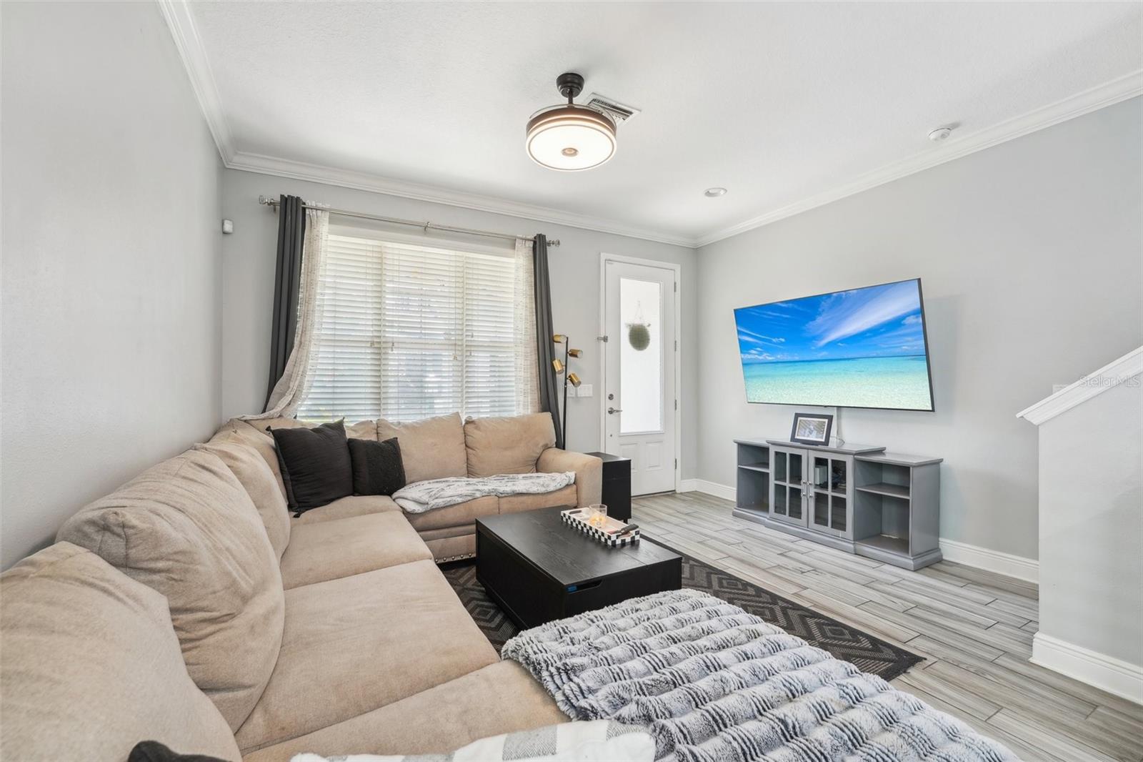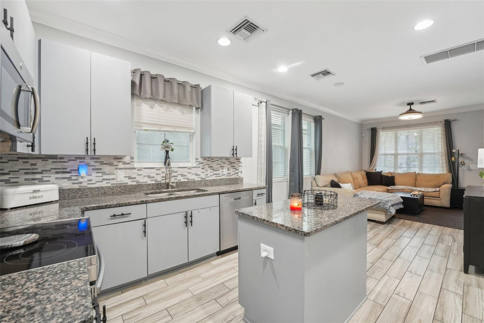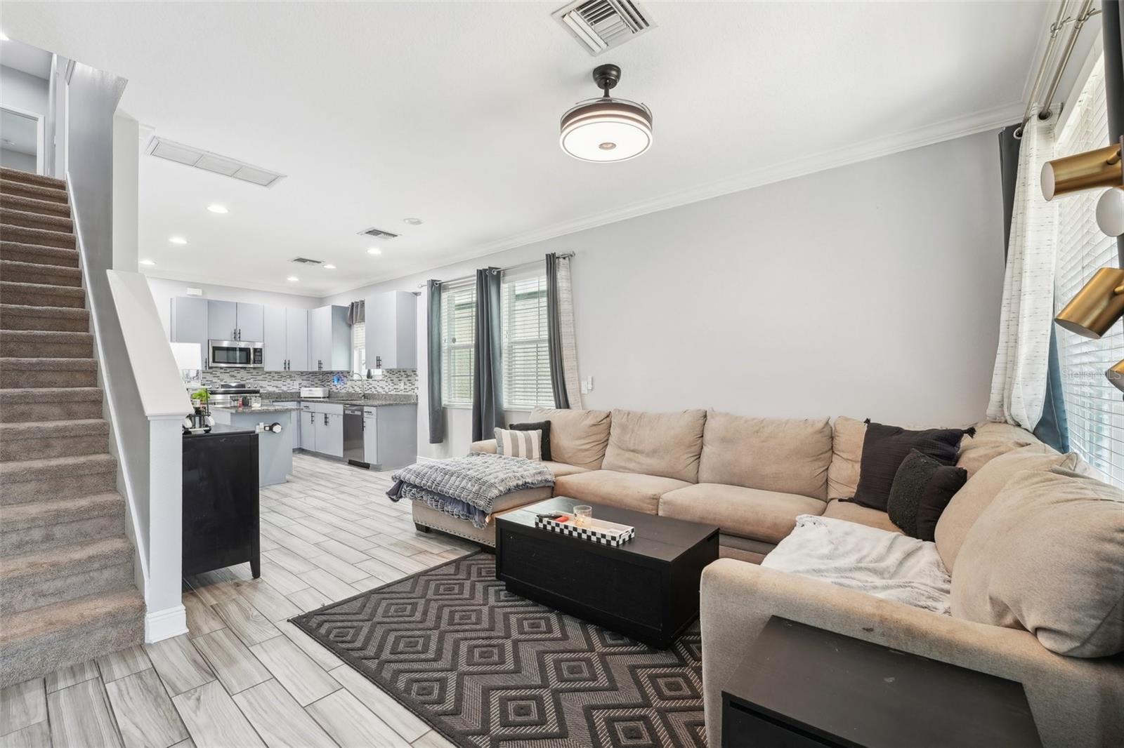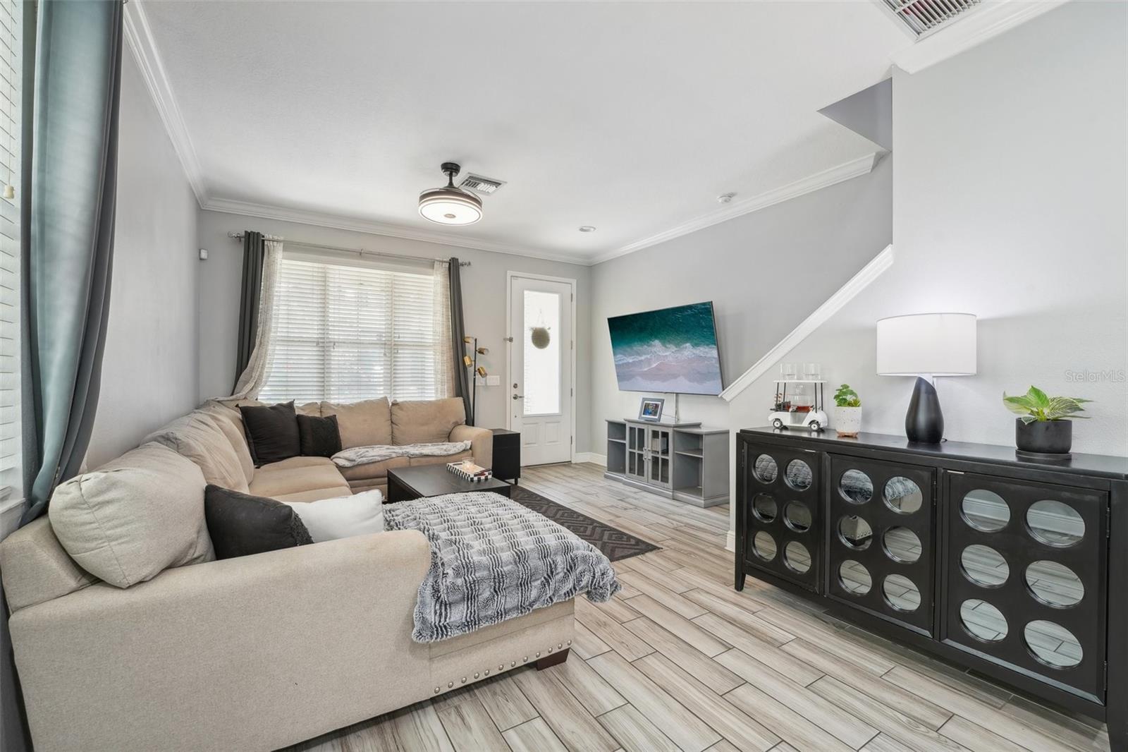 *No Flooding from Hurricane Helene or Milton* NO damage or issues. Discover the perfect blend of modern convenience and charming elegance in this meticulously maintained 3-bedroom, 2.5-bathroom townhome in the desirable Hayes Park Village community of Oldsmar. Boasting 1,365 square feet of thoughtfully designed living space, this one-owner property, built in 2017, showcases an array of upgrades that elevate the living experience. Step inside and be captivated by the open-concept layout, featuring high ceilings, crown molding, and the kitchen is a chef's dream, featuring beautiful tile backsplash, granite countertops, and upgraded appliances that will delight even the most seasoned home cook. The open living room and dining area provide an exceptional space for entertaining guests, while the upgraded Bluetooth speaker-enabled ceiling fan in the living room can liven any get together. Upstairs, the luxurious master suite offers a tray ceiling and a spacious walk-in closets, while the en-suite bathroom provides the ultimate in relaxation. The two additional bedrooms and a full bath complete the picture of this impeccably designed townhome, while the convenient upstairs laundry closet ensures maximum efficiency. Convenience is at your fingertips with the attached one-car garage equipped with MYQ technology, allowing you to effortlessly access your home. Or, step out onto the charming front porch and savor your morning coffee while taking in the picturesque surroundings. Situated just minutes from several major beaches, as well as the charming towns of Dunedin and Safety Harbor, this quiet, pet-friendly community offers a low-maintenance lifestyle with a low HOA fee. HOA fee covers maintenance of grounds, trash, sewer, water. This townhome truly offers the best of both worlds – the charm and character of a single-family home with the low-maintenance benefits of community living. Priced to sell, this unique home won't last long, so schedule your showing today and make this your new slice of paradise.