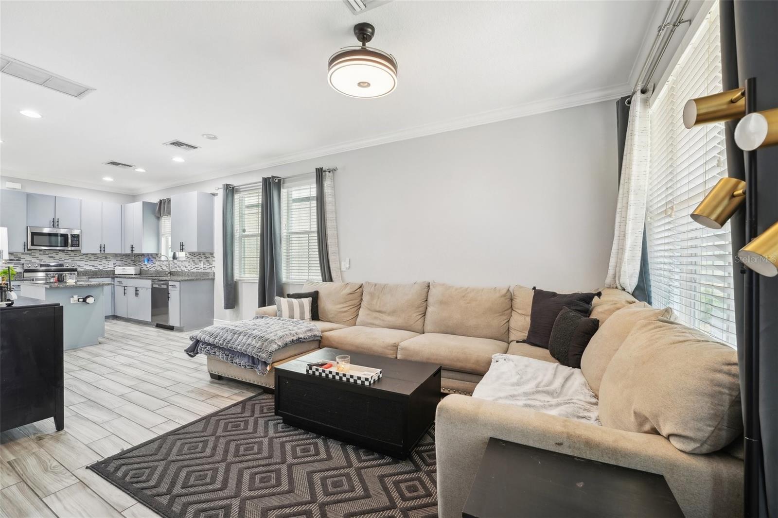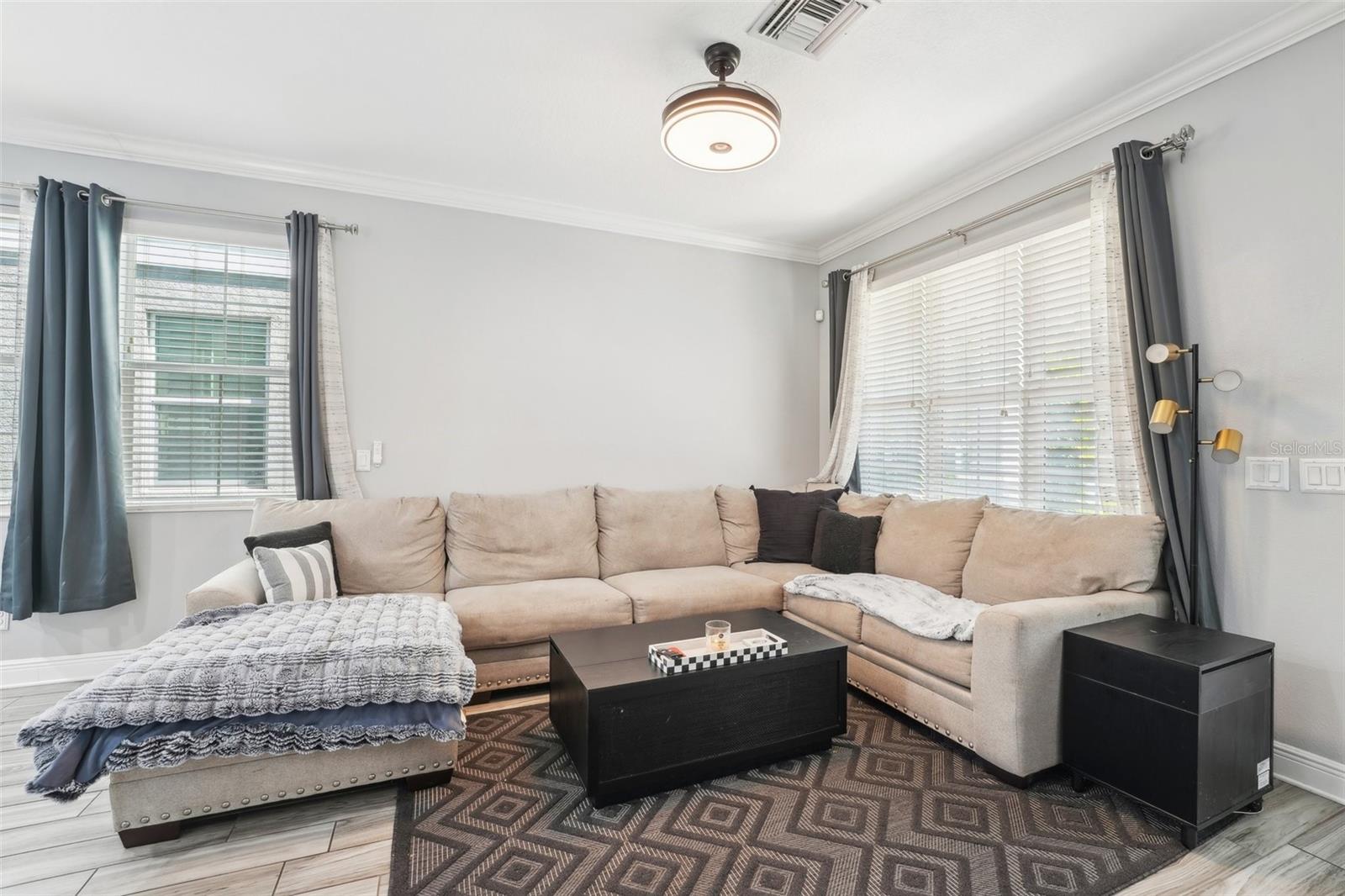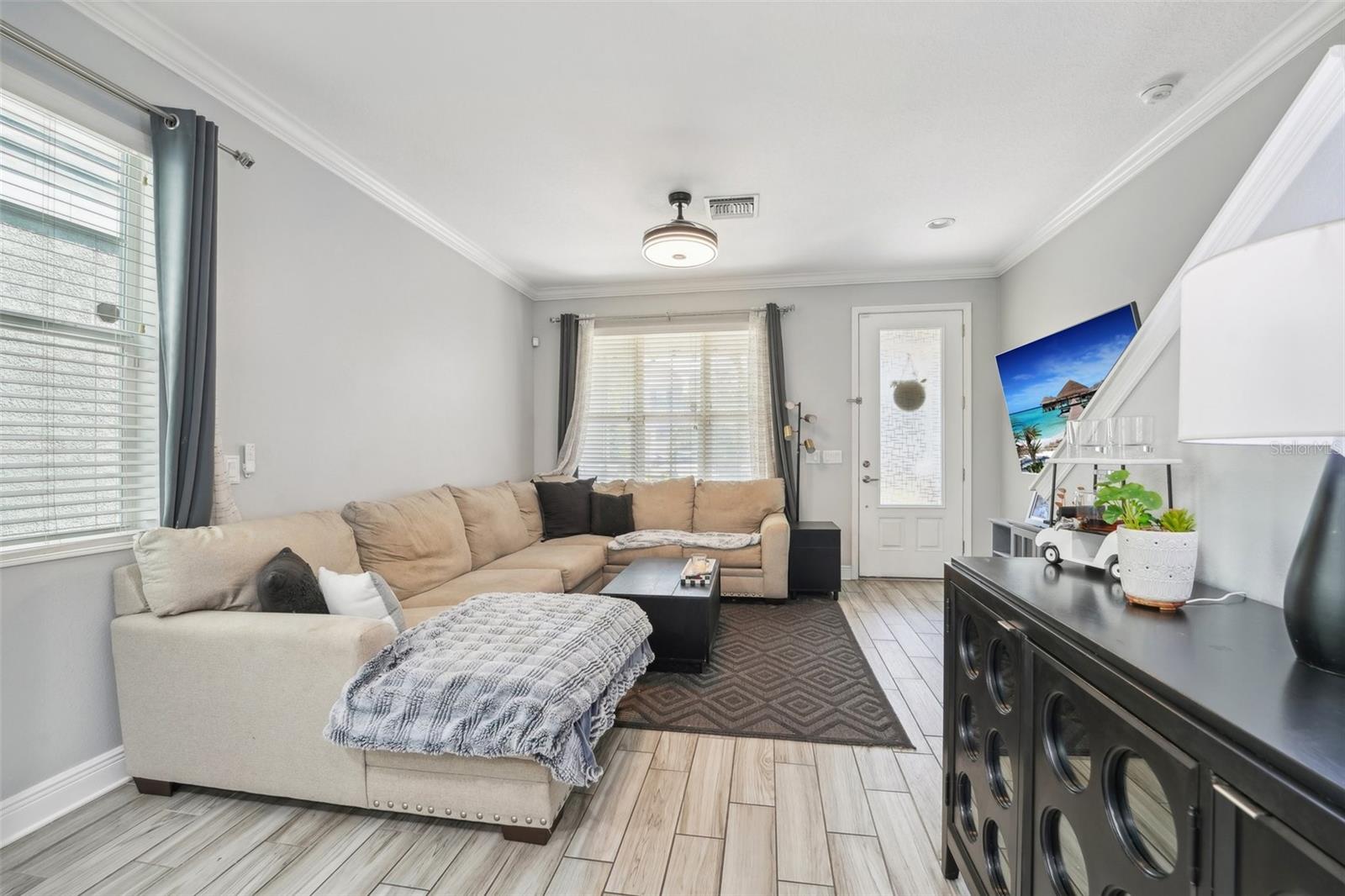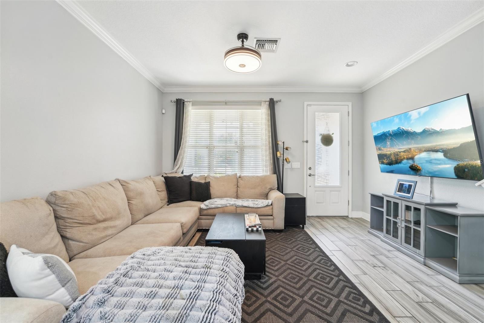 *No Flooding from Hurricane Helene or Milton* NO damage or issues. Discover the perfect blend of modern convenience and charming elegance in this meticulously maintained 3-bedroom, 2.5-bathroom townhome in the desirable Hayes Park Village community of Oldsmar. Boasting 1,365 square feet of thoughtfully designed living space, this one-owner property, built in 2017, showcases an array of upgrades that elevate the living experience. Step inside and be captivated by the open-concept layout, featuring high ceilings, crown molding, and the kitchen is a chef's dream, featuring beautiful tile backsplash, granite countertops, and upgraded appliances that will delight even the most seasoned home cook. The open living room and dining area provide an exceptional space for entertaining guests, while the upgraded Bluetooth speaker-enabled ceiling fan in the living room can liven any get together. Upstairs, the luxurious master suite offers a tray ceiling and a spacious walk-in closets, while the en-suite bathroom provides the ultimate in relaxation. The two additional bedrooms and a full bath complete the picture of this impeccably designed townhome, while the convenient upstairs laundry closet ensures maximum efficiency. Convenience is at your fingertips with the attached one-car garage equipped with MYQ technology, allowing you to effortlessly access your home. Or, step out onto the charming front porch and savor your morning coffee while taking in the picturesque surroundings. Situated just minutes from several major beaches, as well as the charming towns of Dunedin and Safety Harbor, this quiet, pet-friendly community offers a low-maintenance lifestyle with a low HOA fee. HOA fee covers maintenance of grounds, trash, sewer, water. This townhome truly offers the best of both worlds – the charm and character of a single-family home with the low-maintenance benefits of community living. Priced to sell, this unique home won't last long, so schedule your showing today and make this your new slice of paradise.