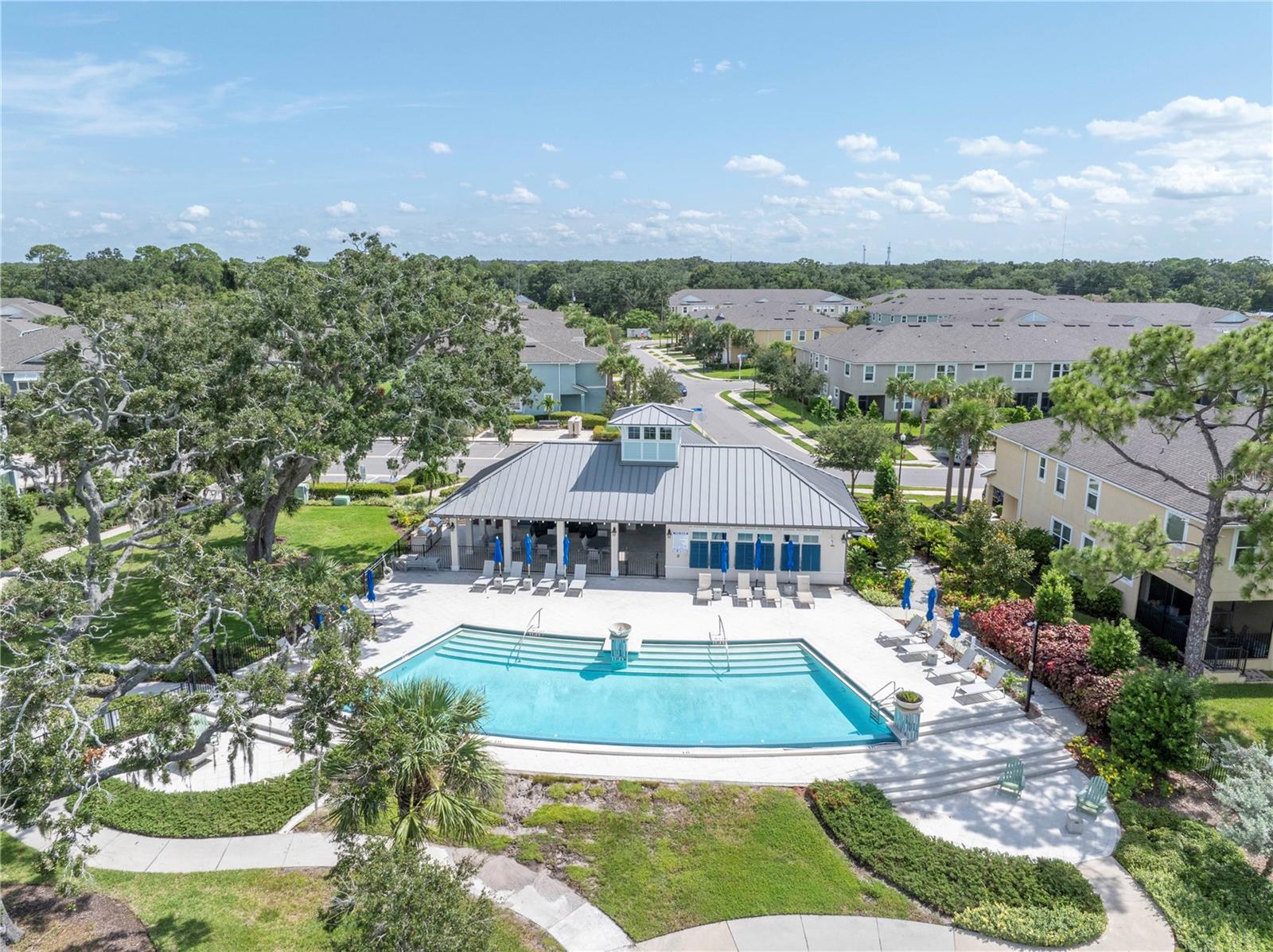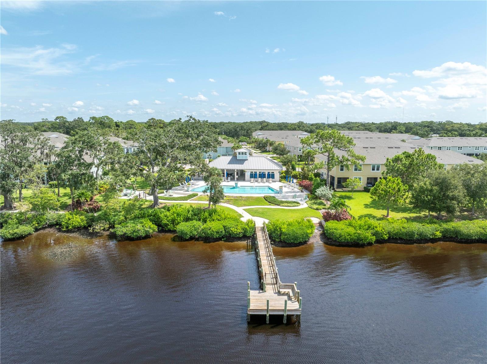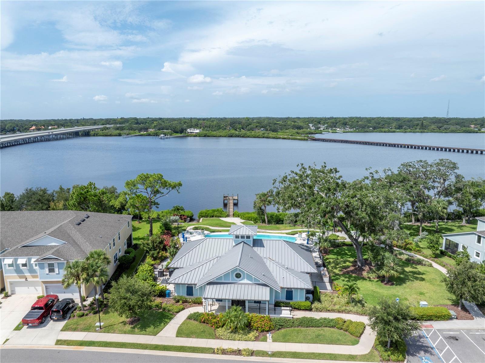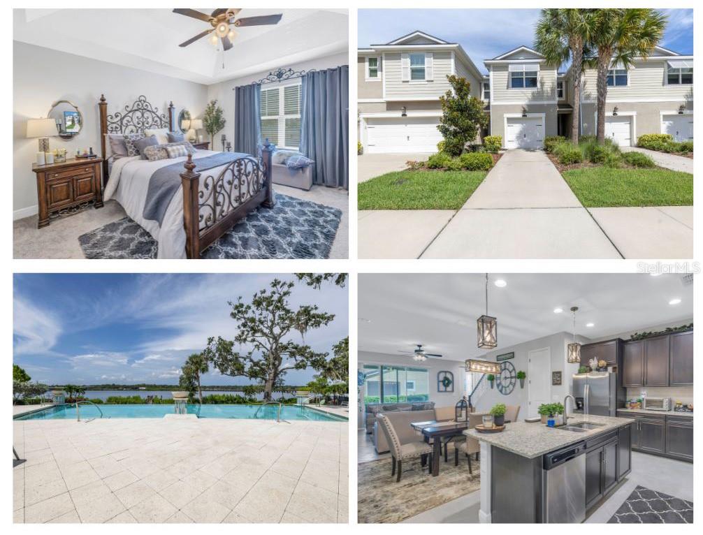 One or more photo(s) has been virtually staged. Beautiful Key West style, Waterfront Gated Community of BAYSIDE TERRACE. No water intrusion or storm damage from Hurricane Helene or Milton. Upon entering, you will experience a sense of modern elegance. The open floor plan offers 10' ceilings, upgraded diagonal tile flooring that guides you through to a chef's dream kitchen. Equipped with a walk-in pantry, top-of-the-line cabinetry, stainless steel appliances, cooking island, breakfast bar, and pristine granite countertops, it’s an ideal space for both casual meals and entertaining. The adjacent dining area and great room flow onto a private screened lanai via multi-panel sliding doors, creating a tranquil retreat with picturesque views. The sliding doors bring in plenty of natural light. The half bath is privately situated at the bottom of the stairs for plenty of privacy. Dual primary suites feature walk-in closets, en-suite bathrooms with dual-sink in the primary, long vanities and large showers, providing a luxurious and private haven. Upstairs, a flexible loft space awaits, perfect for an additional living area or home office. Practicality is key with a convenient laundry room and smart home features such as an Ecobee 4 thermostat, built-in USB chargers, and pre-wiring for ceiling fans. The sleek, slate-colored décor adds a contemporary touch throughout. (All windows have pre fitted hurricane panels.) Outside, indulge in resort-style amenities: Heated infinity pool, a dock, a kayak launch, a fitness center, fishing pier, gas fire pit and more—all designed for an active and indulgent lifestyle. Nestled minutes from Safety Harbor, downtown Dunedin, top-rated restaurants, entertainment venues, and beautiful beaches, 2604 Arch Ave is more than a home; it's a luxury lifestyle waiting for you. Schedule your viewing today and discover your slice of paradise.