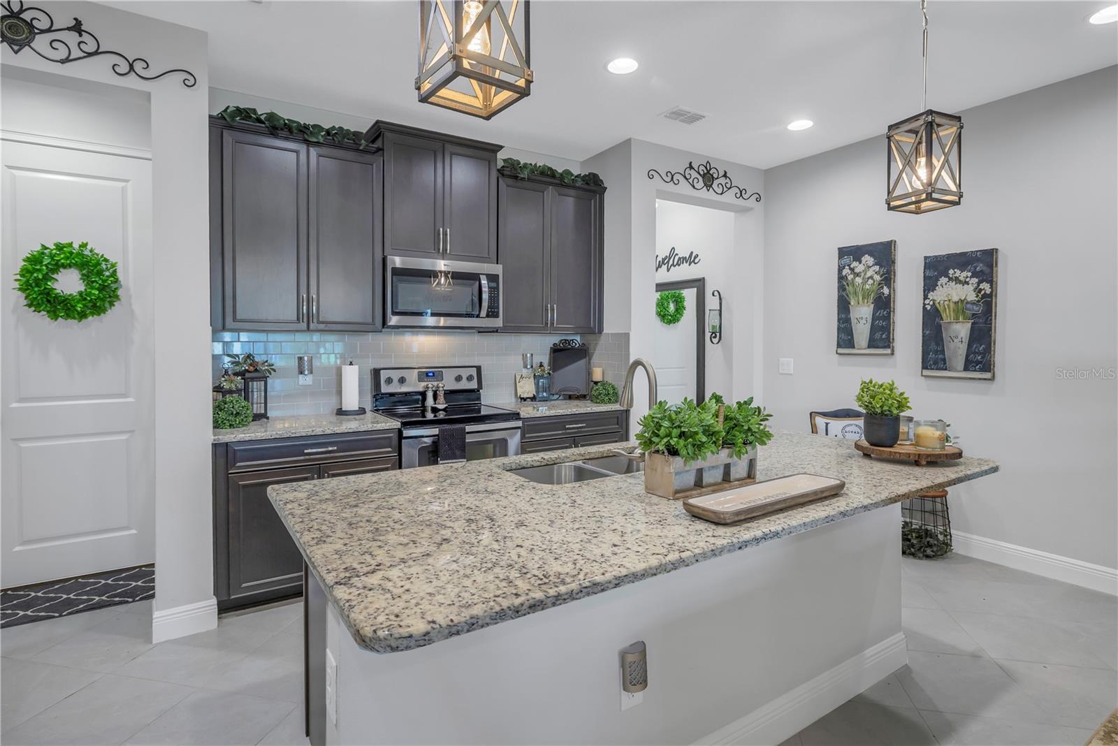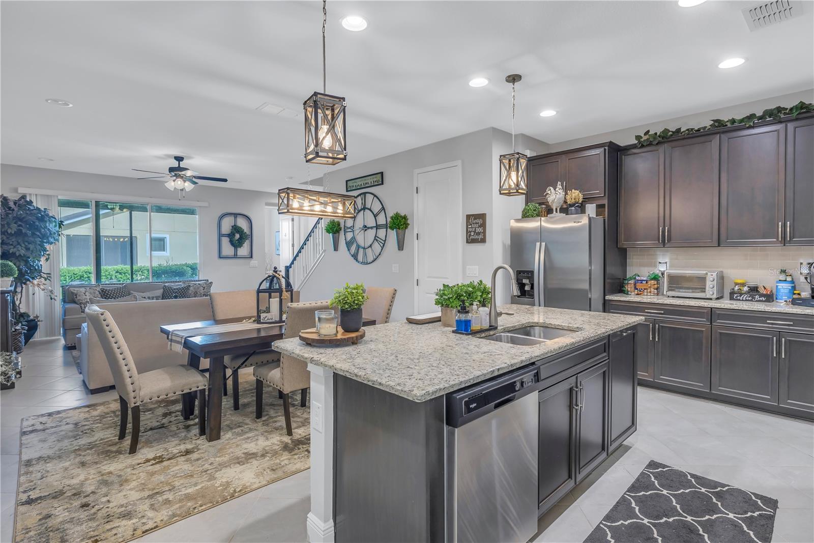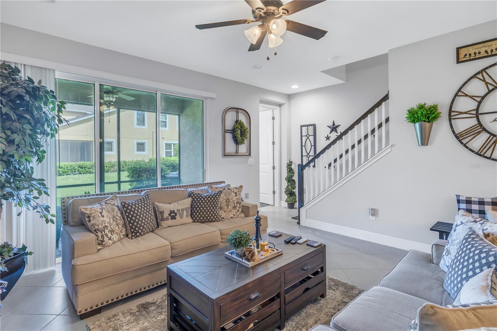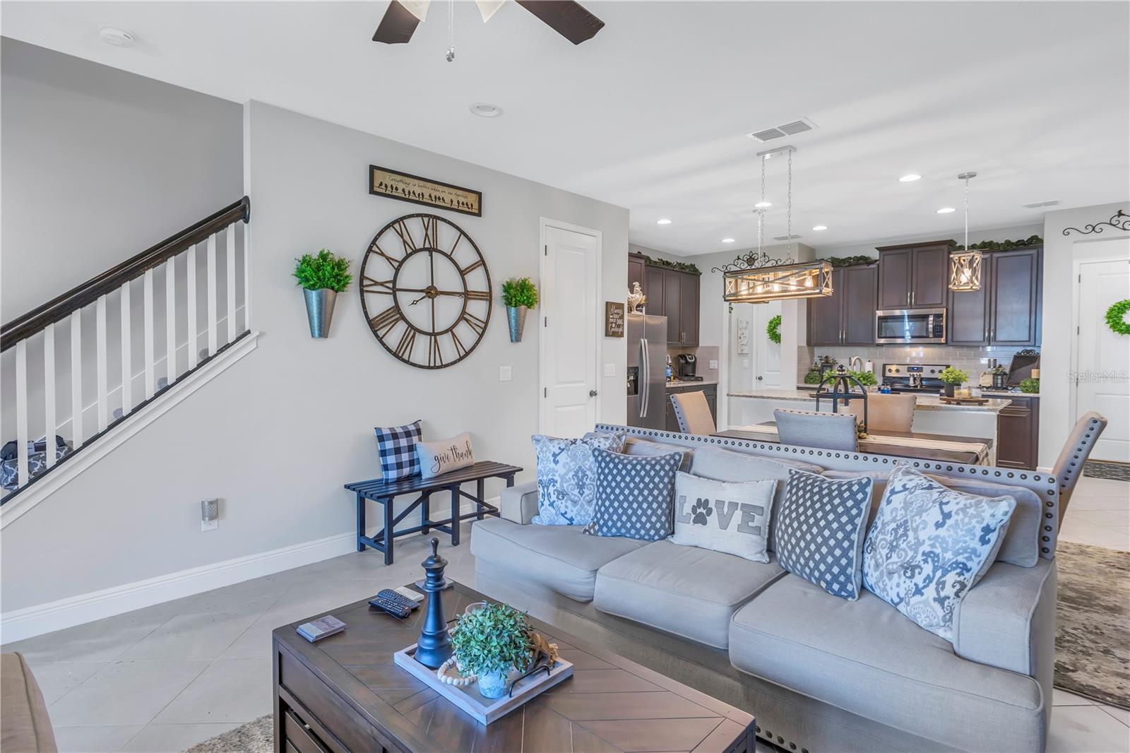 One or more photo(s) has been virtually staged. Beautiful Key West style, Waterfront Gated Community of BAYSIDE TERRACE. No water intrusion or storm damage from Hurricane Helene or Milton. Upon entering, you will experience a sense of modern elegance. The open floor plan offers 10' ceilings, upgraded diagonal tile flooring that guides you through to a chef's dream kitchen. Equipped with a walk-in pantry, top-of-the-line cabinetry, stainless steel appliances, cooking island, breakfast bar, and pristine granite countertops, it’s an ideal space for both casual meals and entertaining. The adjacent dining area and great room flow onto a private screened lanai via multi-panel sliding doors, creating a tranquil retreat with picturesque views. The sliding doors bring in plenty of natural light. The half bath is privately situated at the bottom of the stairs for plenty of privacy. Dual primary suites feature walk-in closets, en-suite bathrooms with dual-sink in the primary, long vanities and large showers, providing a luxurious and private haven. Upstairs, a flexible loft space awaits, perfect for an additional living area or home office. Practicality is key with a convenient laundry room and smart home features such as an Ecobee 4 thermostat, built-in USB chargers, and pre-wiring for ceiling fans. The sleek, slate-colored décor adds a contemporary touch throughout. (All windows have pre fitted hurricane panels.) Outside, indulge in resort-style amenities: Heated infinity pool, a dock, a kayak launch, a fitness center, fishing pier, gas fire pit and more—all designed for an active and indulgent lifestyle. Nestled minutes from Safety Harbor, downtown Dunedin, top-rated restaurants, entertainment venues, and beautiful beaches, 2604 Arch Ave is more than a home; it's a luxury lifestyle waiting for you. Schedule your viewing today and discover your slice of paradise.