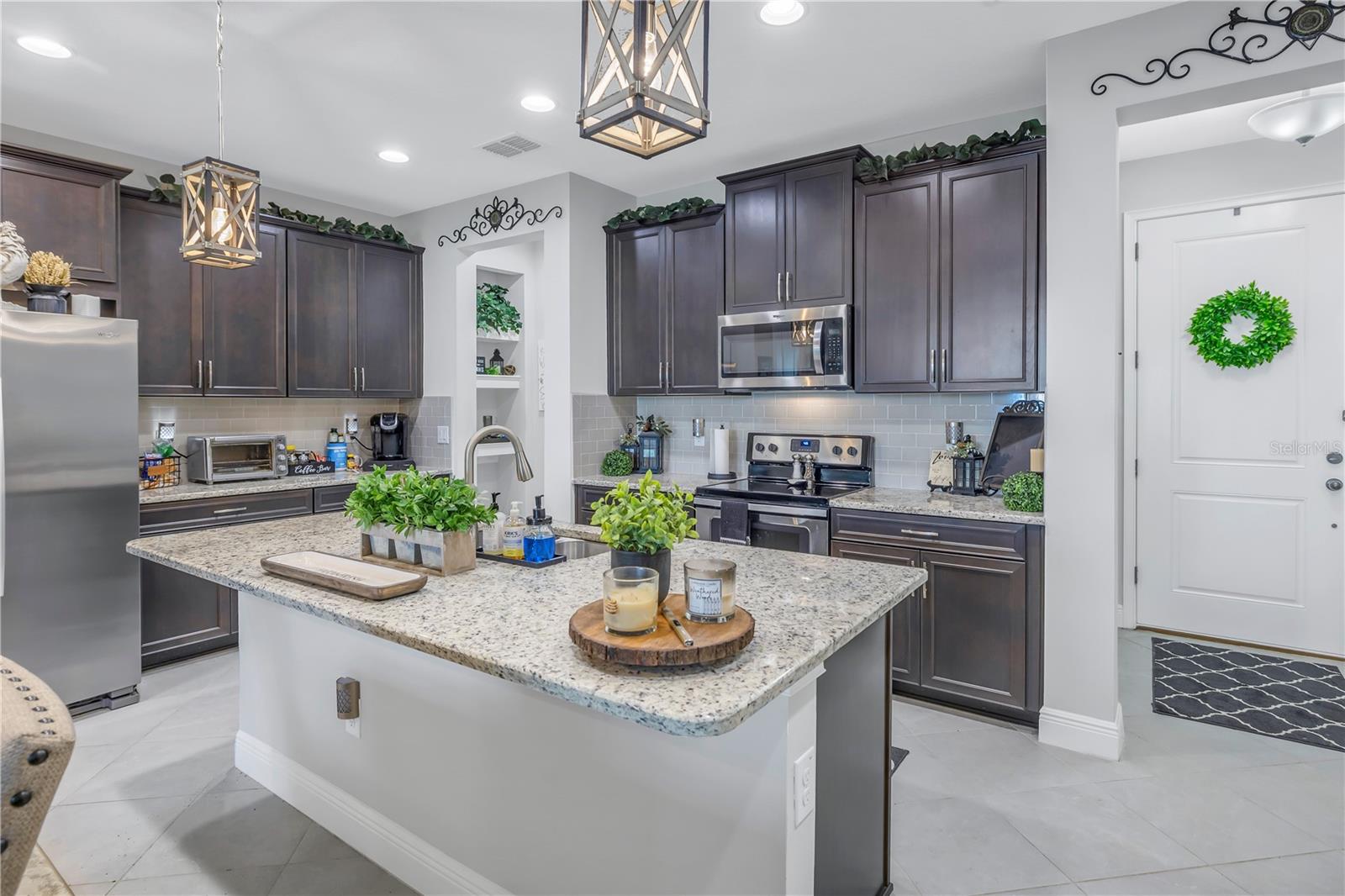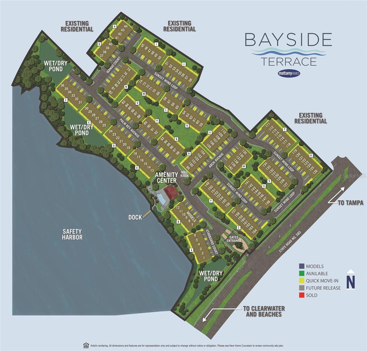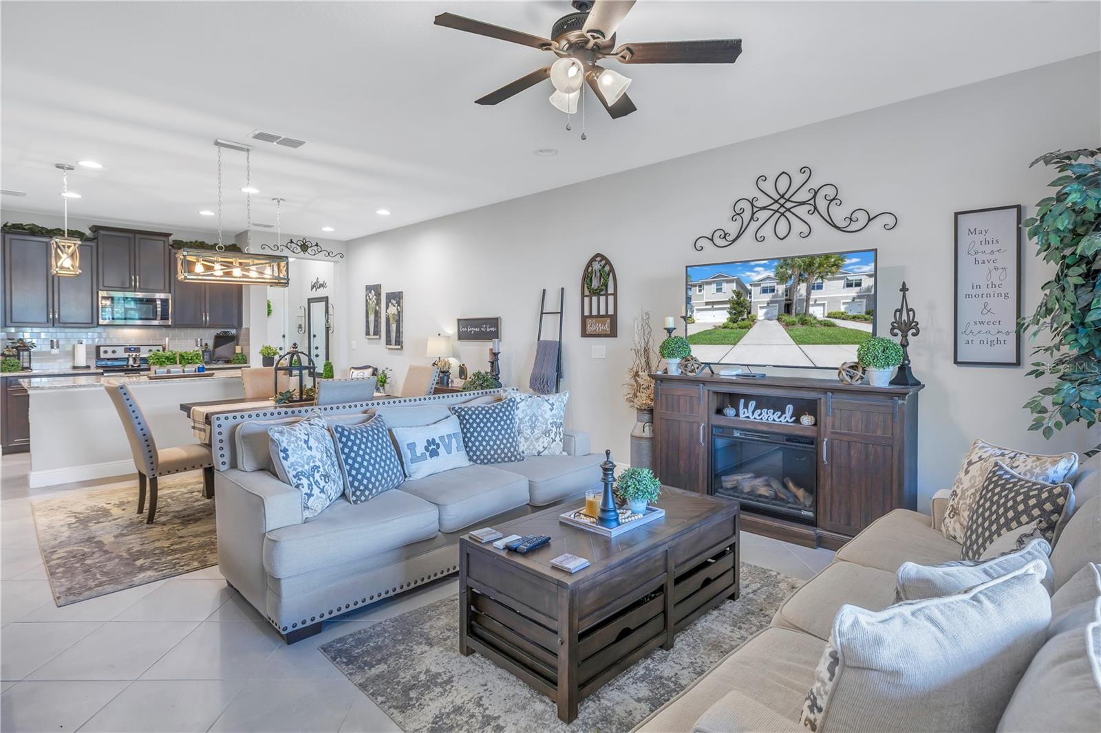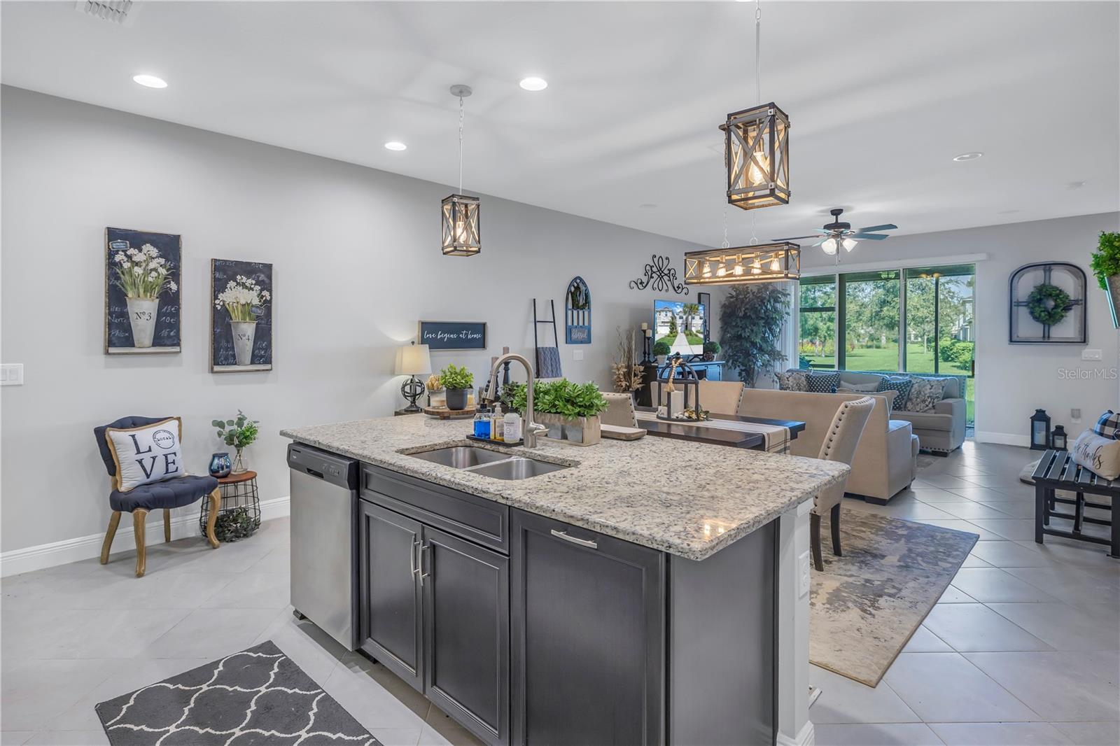 One or more photo(s) has been virtually staged. Beautiful Key West style, Waterfront Gated Community of BAYSIDE TERRACE. No water intrusion or storm damage from Hurricane Helene or Milton. Upon entering, you will experience a sense of modern elegance. The open floor plan offers 10' ceilings, upgraded diagonal tile flooring that guides you through to a chef's dream kitchen. Equipped with a walk-in pantry, top-of-the-line cabinetry, stainless steel appliances, cooking island, breakfast bar, and pristine granite countertops, it’s an ideal space for both casual meals and entertaining. The adjacent dining area and great room flow onto a private screened lanai via multi-panel sliding doors, creating a tranquil retreat with picturesque views. The sliding doors bring in plenty of natural light. The half bath is privately situated at the bottom of the stairs for plenty of privacy. Dual primary suites feature walk-in closets, en-suite bathrooms with dual-sink in the primary, long vanities and large showers, providing a luxurious and private haven. Upstairs, a flexible loft space awaits, perfect for an additional living area or home office. Practicality is key with a convenient laundry room and smart home features such as an Ecobee 4 thermostat, built-in USB chargers, and pre-wiring for ceiling fans. The sleek, slate-colored décor adds a contemporary touch throughout. (All windows have pre fitted hurricane panels.) Outside, indulge in resort-style amenities: Heated infinity pool, a dock, a kayak launch, a fitness center, fishing pier, gas fire pit and more—all designed for an active and indulgent lifestyle. Nestled minutes from Safety Harbor, downtown Dunedin, top-rated restaurants, entertainment venues, and beautiful beaches, 2604 Arch Ave is more than a home; it's a luxury lifestyle waiting for you. Schedule your viewing today and discover your slice of paradise.