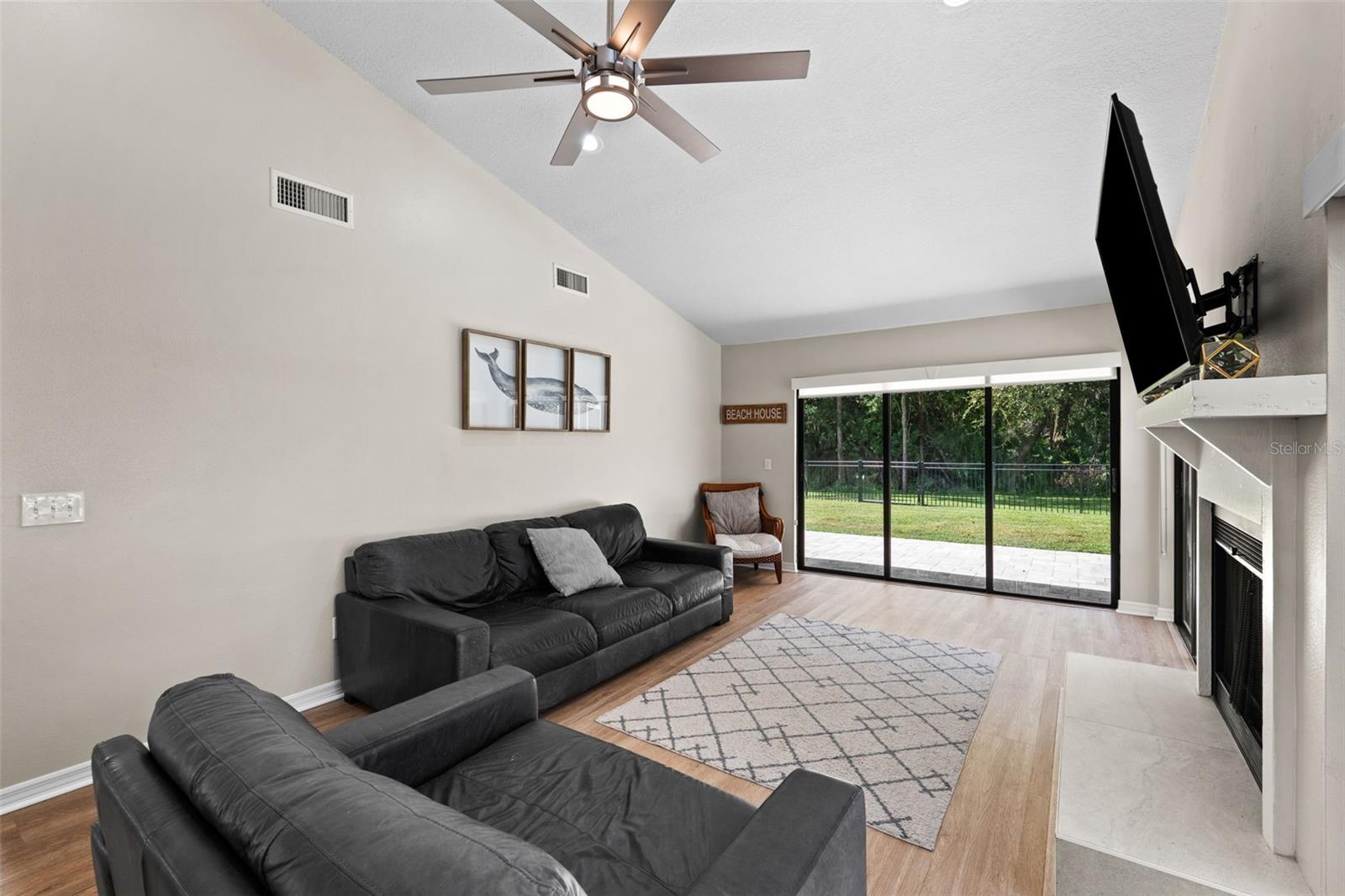 **Beautiful single story split floor plan at the end of a cul-de-sac on the green of hole #5** Experience an exceptional lifestyle in this rare .37-acre property, nestled on the 5th hole of the South Golf Course within the exclusive Gated East Lake Woodlands Estates. With 2,288 sq ft of luxurious living space, this home features 4 bedrooms, 2 baths, and a 2-car garage, complemented by a newly replaced siding, professionally painted and sealed exterior of the home, and a resurfaced pool that serves as a tranquil retreat on a quiet cul-de-sac, offering breathtaking views of the Championship Golf Course. Approaching this remarkable residence, the charming curb appeal and professional landscaping invite you inside. The welcoming glass double door entryway leads to an open concept floor plan with high vaulted ceilings and custom windows that fill the space with natural light. Inside, you'll find tasteful features like luxury waterproof vinyl flooring and modern fixtures. The updated Dream kitchen boasts newer stainless steel appliances, GRANITE countertops, custom 42” shaker cabinets, and designer tile backsplash. A breakfast bar, built-in beverage fridge, separate dining room with its own patio and skylights that create a warm ambiance. The cozy second family room features a modern wood-burning fireplace and sliding glass doors opening to the pool area, backyard patio and golf course views. The primary suite offers a private retreat with a grand double door entry, plush carpet, sliding glass door to the lanai, and a spacious walk-in closet. The spa-like en suite includes an oversized double sink Quartz vanity, marble flooring, a glass walk-in shower, and a soaking tub. The split bedroom floor plan includes three guest bedrooms, an updated bath, and a large interior laundry room. Outside, the covered patio, two other uncovered lanais, wet bar, and golf course views make it perfect for entertaining. This exceptional property also features a newer roof and is situated in East Lake Woodlands Estates, a 24/7 Guard gated community with access to the East Lake Woodlands Country Club. The newly $11M transformed Country Club now known as the Ardea Country Club allowing memberships to sister clubs as well. Enjoy two Championship 18-hole golf courses, 14 HAR-TRU tennis courts, Luxury Spa Oasis, Kids Club, and Fine Dining. The country Club membership is optional and not required with residency. Conveniently located near Tampa International Airport, top-rated schools, Clearwater Beach, Westchase, Citrus Park shopping mall and dining, this home embodies luxury and convenience. **Located outside of flood zones and free from any storm-related damages from Helene or Milton, this home offers a safe and secure environment for you and your family during future weather events. This home is located in a X500 no flood zone and is also free of storm drains eliminating the concern of flooding from excessive rain. You may have a fence installed around the perimeter of the yard if you’d like.**