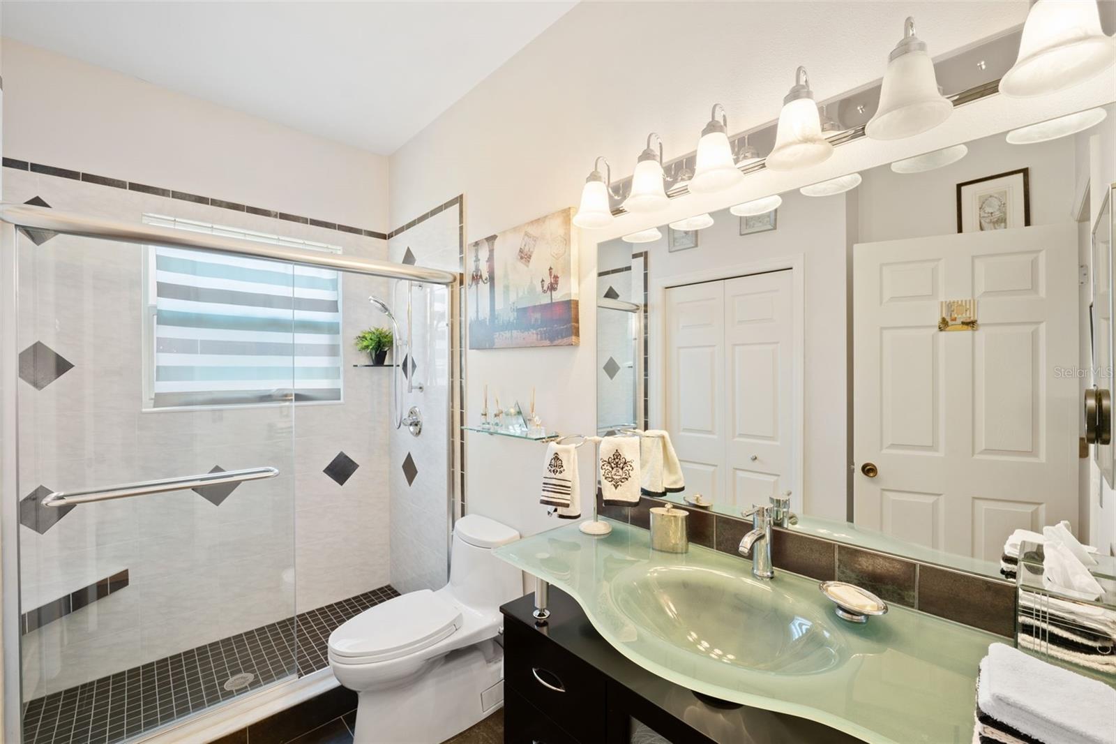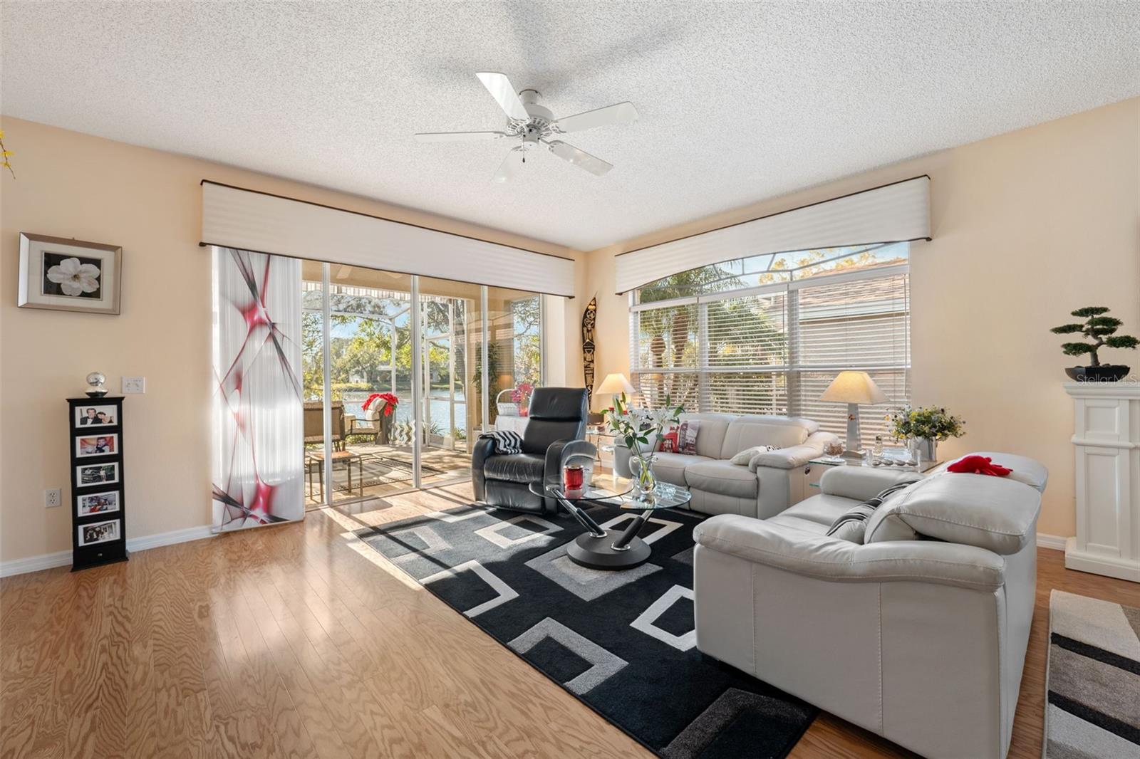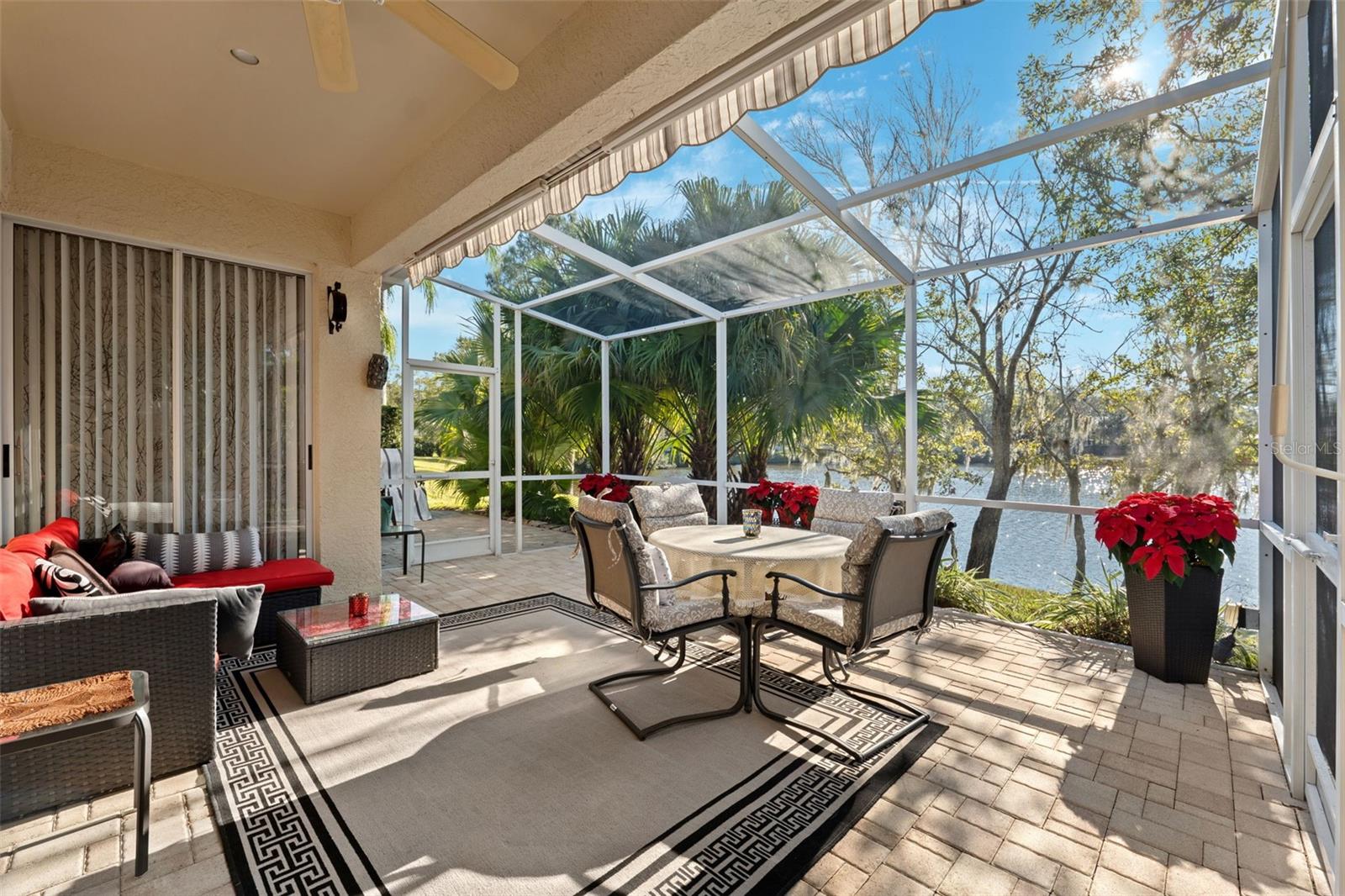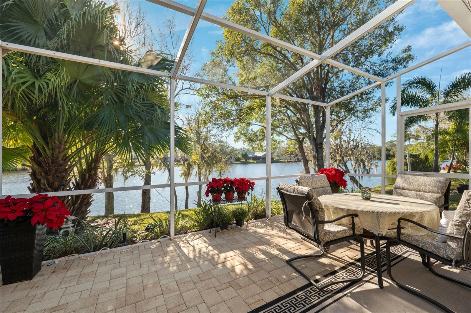 Welcome to this charming 3-bedroom, 2-bathroom WATERFRONT home in the desirable Kingsmill community of East Lake Woodlands. Enjoy a private and serene setting with no direct neighbors in front or behind, and LOW HOA dues that cover exterior landscaping! As you step inside, you're greeted by an unobstructed view through the home to the large, PICTURESQUE LAKE. The screened-in outdoor space is a nature lover’s dream, allowing natural light to filter in while keeping the area protected. For added comfort, an overhead awning can be opened to provide shade and rain protection. There’s ample space for outdoor furniture, making it the perfect spot to unwind and take in the stunning water views and frequent wildlife visits. Electrical access outside that makes hooking up a hot tub easy! Inside, the first bedroom overlooks the front yard and features upgraded window shutters. A recently remodeled bathroom is conveniently located just outside the door. The bright and airy kitchen boasts granite countertops, an island, and plenty of space for a breakfast table, ideal for entertaining while cooking. The open concept living and dining area is filled with natural light, highlighted by custom wall artwork and large sliders leading to the backyard. The second bedroom, with elegant glass French doors, currently covered with curtains for privacy, offers versatility—it can easily be transformed into a home office or flex space. The spacious primary suite features a hurricane-impact window, a sliding door with direct access to the screened-in porch, a huge walk-in closet, and an en-suite bathroom with a high-end Toto toilet and bidet function. Notable upgrades include a NEW ROOF (Nov. 2024), a NEW AC system (2017), a central vacuum system, and a whole-house water softener. Kingsmill is perfectly positioned between the 12th and the 13th hole south course. East Lake Woodlands offers top-rated schools and optional membership to Ardea Country Club, featuring two 18-hole golf courses, 12 tennis courts, a pickleball complex, a fitness center, and an on-site restaurant.