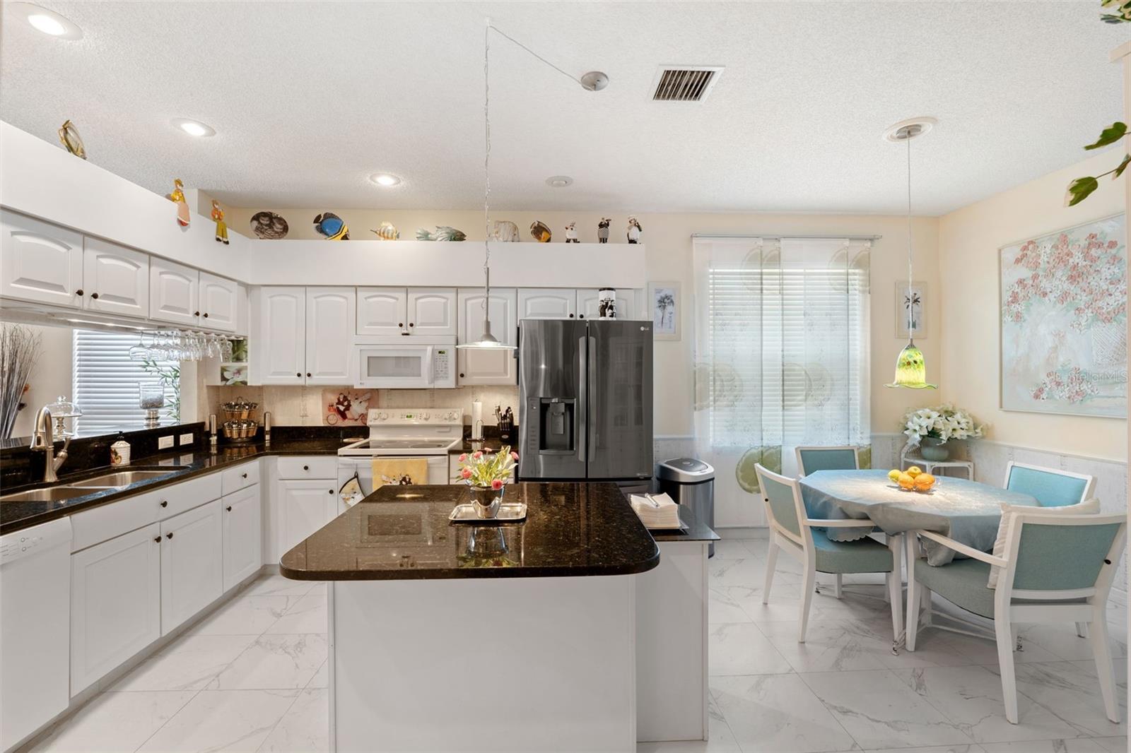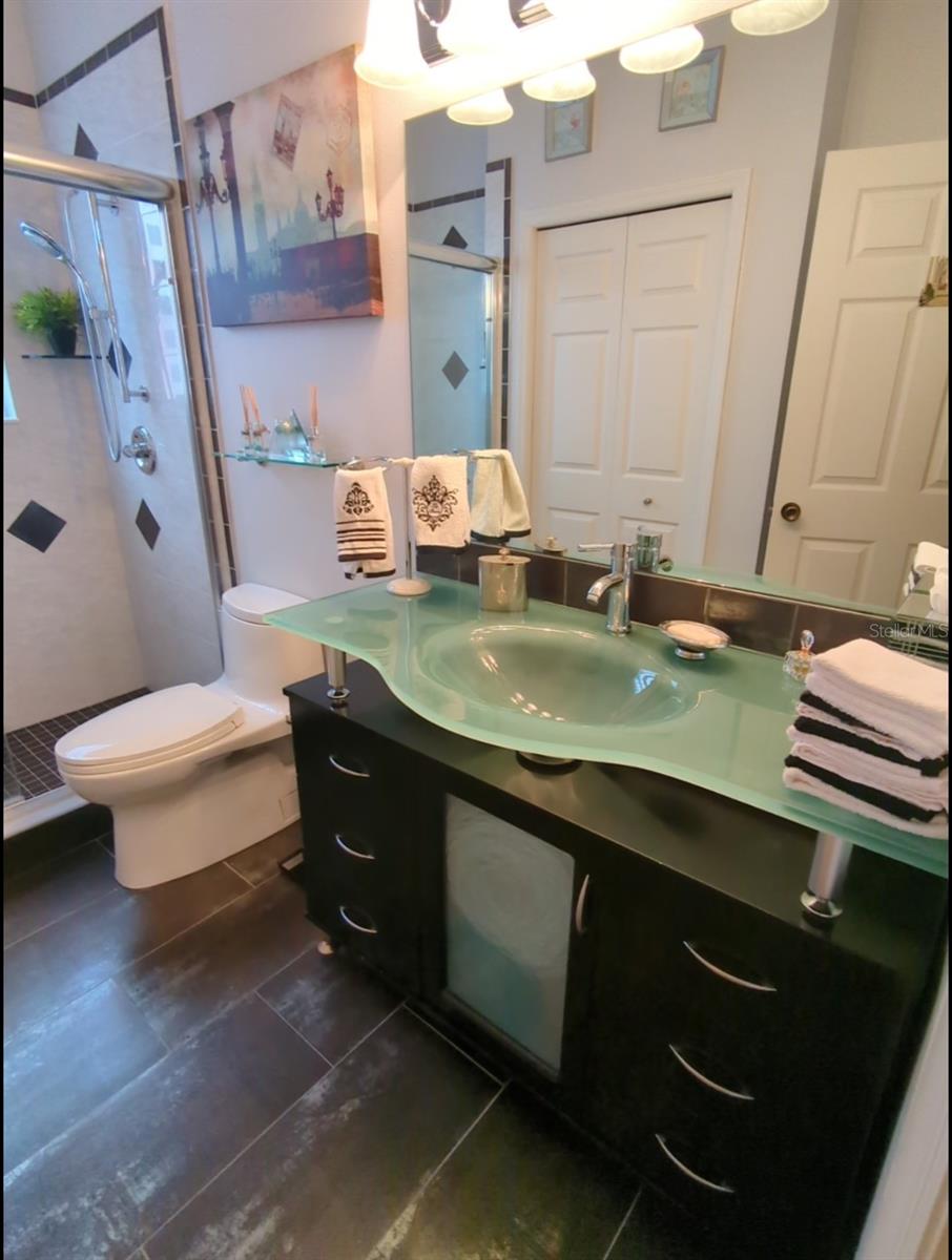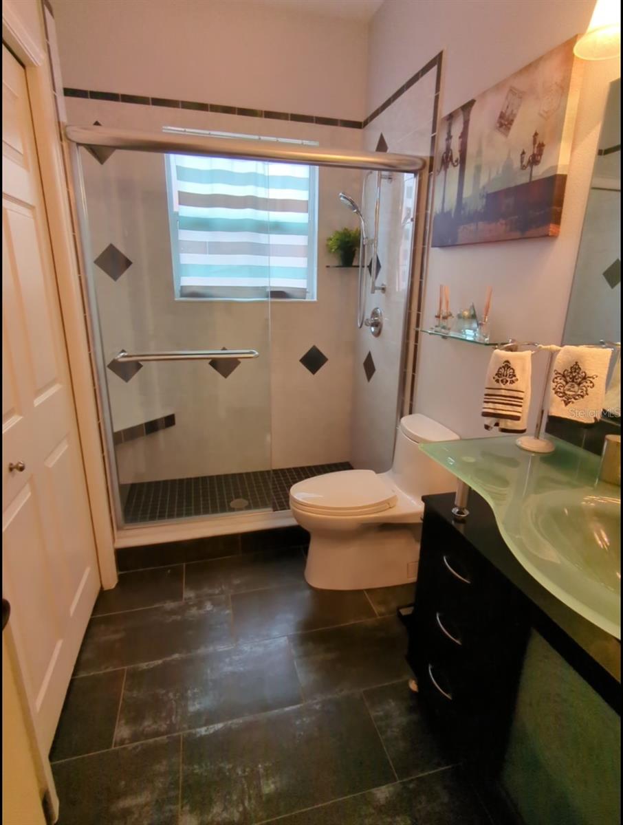 Welcome to this charming 3-bedroom, 2-bathroom WATERFRONT home in the desirable Kingsmill community of East Lake Woodlands. Enjoy a private and serene setting with no direct neighbors in front or behind, and LOW HOA dues that cover exterior landscaping! As you step inside, you're greeted by an unobstructed view through the home to the large, PICTURESQUE LAKE. The screened-in outdoor space is a nature lover’s dream, allowing natural light to filter in while keeping the area protected. For added comfort, an overhead awning can be opened to provide shade and rain protection. There’s ample space for outdoor furniture, making it the perfect spot to unwind and take in the stunning water views and frequent wildlife visits. Electrical access outside that makes hooking up a hot tub easy! Inside, the first bedroom overlooks the front yard and features upgraded window shutters. A recently remodeled bathroom is conveniently located just outside the door. The bright and airy kitchen boasts granite countertops, an island, and plenty of space for a breakfast table, ideal for entertaining while cooking. The open concept living and dining area is filled with natural light, highlighted by custom wall artwork and large sliders leading to the backyard. The second bedroom, with elegant glass French doors, currently covered with curtains for privacy, offers versatility—it can easily be transformed into a home office or flex space. The spacious primary suite features a hurricane-impact window, a sliding door with direct access to the screened-in porch, a huge walk-in closet, and an en-suite bathroom with a high-end Toto toilet and bidet function. Notable upgrades include a NEW ROOF (Nov. 2024), a NEW AC system (2017), a central vacuum system, and a whole-house water softener. Kingsmill is perfectly positioned between the 12th and the 13th hole south course. East Lake Woodlands offers top-rated schools and optional membership to Ardea Country Club, featuring two 18-hole golf courses, 12 tennis courts, a pickleball complex, a fitness center, and an on-site restaurant.