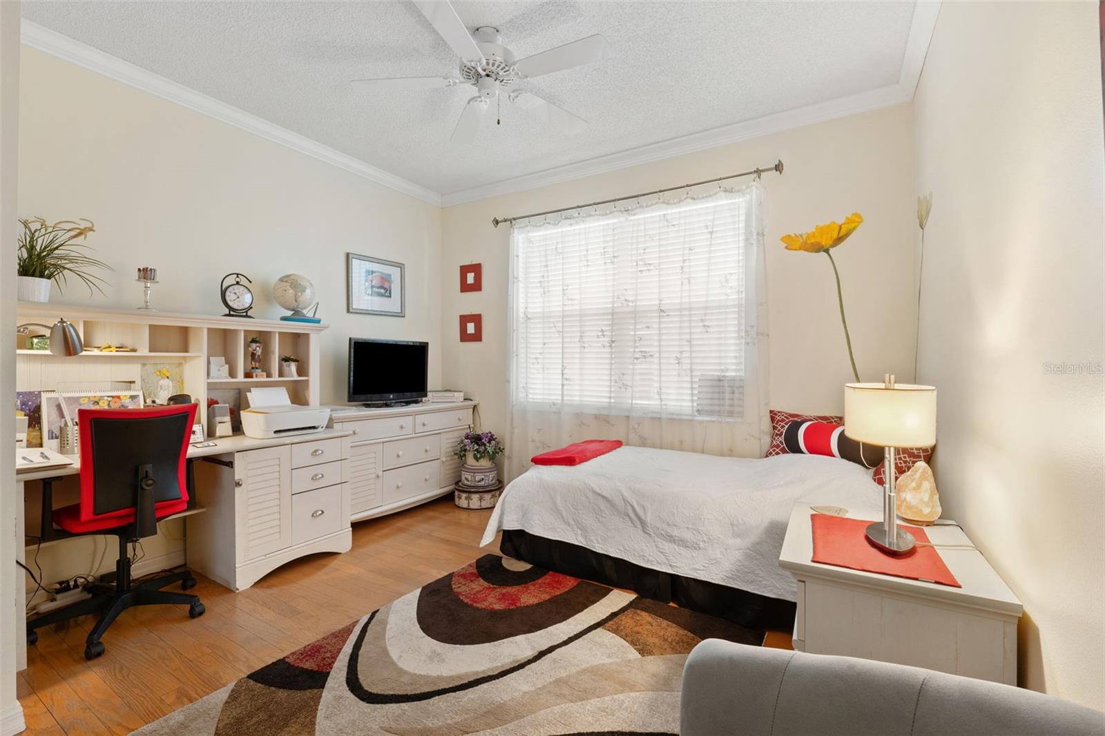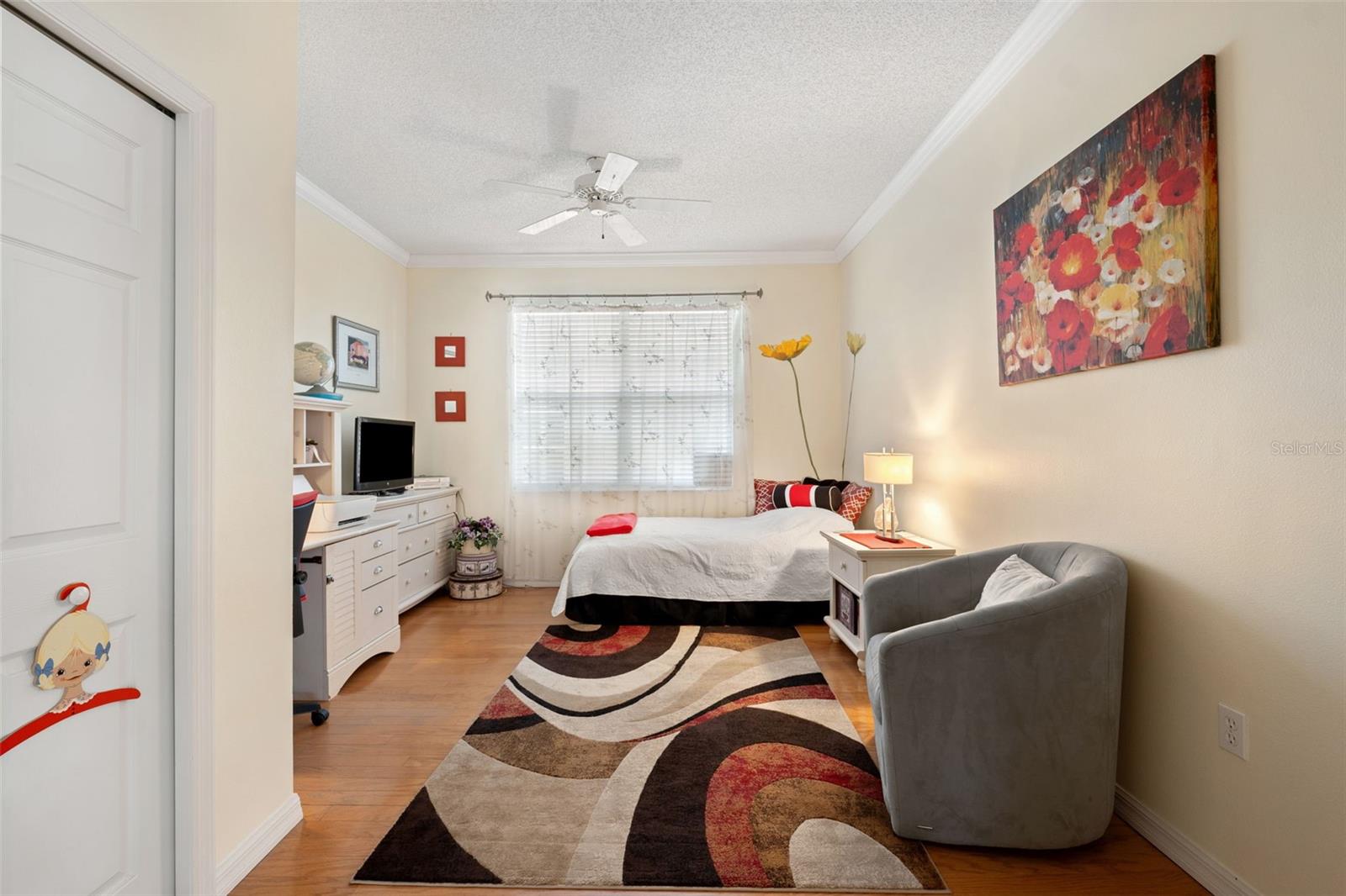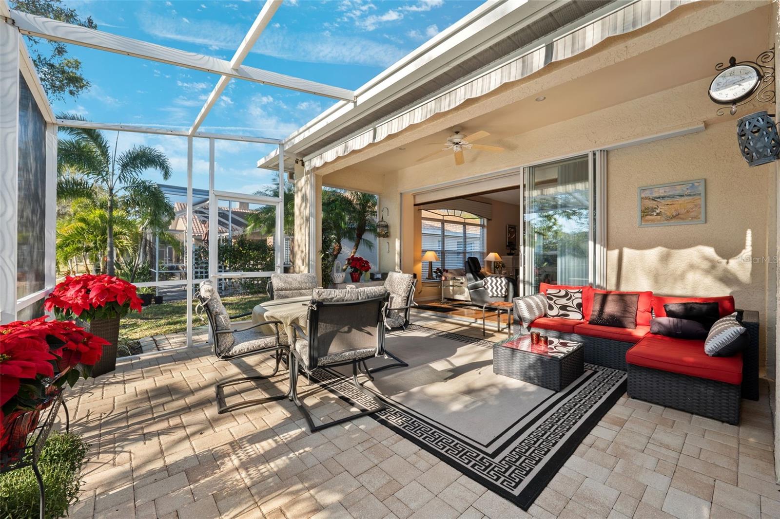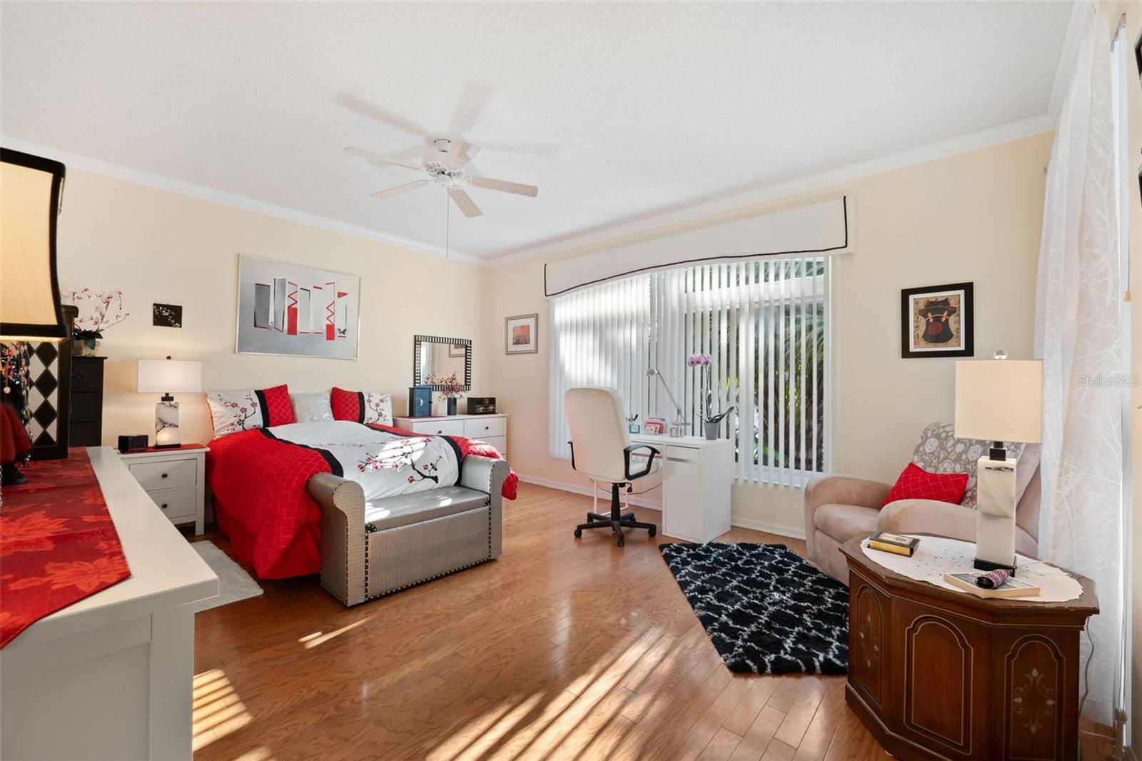 Welcome to this charming 3-bedroom, 2-bathroom WATERFRONT home in the desirable Kingsmill community of East Lake Woodlands. Enjoy a private and serene setting with no direct neighbors in front or behind, and LOW HOA dues that cover exterior landscaping! As you step inside, you're greeted by an unobstructed view through the home to the large, PICTURESQUE LAKE. The screened-in outdoor space is a nature lover’s dream, allowing natural light to filter in while keeping the area protected. For added comfort, an overhead awning can be opened to provide shade and rain protection. There’s ample space for outdoor furniture, making it the perfect spot to unwind and take in the stunning water views and frequent wildlife visits. Electrical access outside that makes hooking up a hot tub easy! Inside, the first bedroom overlooks the front yard and features upgraded window shutters. A recently remodeled bathroom is conveniently located just outside the door. The bright and airy kitchen boasts granite countertops, an island, and plenty of space for a breakfast table, ideal for entertaining while cooking. The open concept living and dining area is filled with natural light, highlighted by custom wall artwork and large sliders leading to the backyard. The second bedroom, with elegant glass French doors, currently covered with curtains for privacy, offers versatility—it can easily be transformed into a home office or flex space. The spacious primary suite features a hurricane-impact window, a sliding door with direct access to the screened-in porch, a huge walk-in closet, and an en-suite bathroom with a high-end Toto toilet and bidet function. Notable upgrades include a NEW ROOF (Nov. 2024), a NEW AC system (2017), a central vacuum system, and a whole-house water softener. Kingsmill is perfectly positioned between the 12th and the 13th hole south course. East Lake Woodlands offers top-rated schools and optional membership to Ardea Country Club, featuring two 18-hole golf courses, 12 tennis courts, a pickleball complex, a fitness center, and an on-site restaurant.