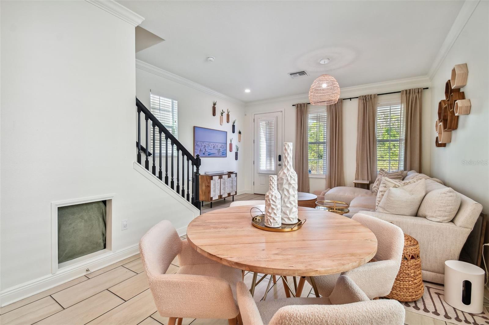 This newer and updated home (no attached neighbors on either side / no common walls) located in the heart of Oldsmar, Florida, offers easy access to all parts of Tampa Bay including airports, beaches, and downtown areas. Well laid out with a generous living area downstairs (garage - attached) and three bedrooms upstairs. Front door faces nature for your enjoyment and privacy. Upgraded features include: premium whole home water conditioner and filtration system, central vacuum, whole home crown molding with floating crown molding in primary bedroom, upgraded kitchen cabinets with quarts countertops and black splash, custom pantry with shelving, secure storage beneath the stairs, plantation shutters, and custom sentrel shower in primary bathroom. Community offers plenty of places to enjoy the outdoors while also being near all modern conveniences. Enjoy maintenance free living with the benefit of having NO shared walls!