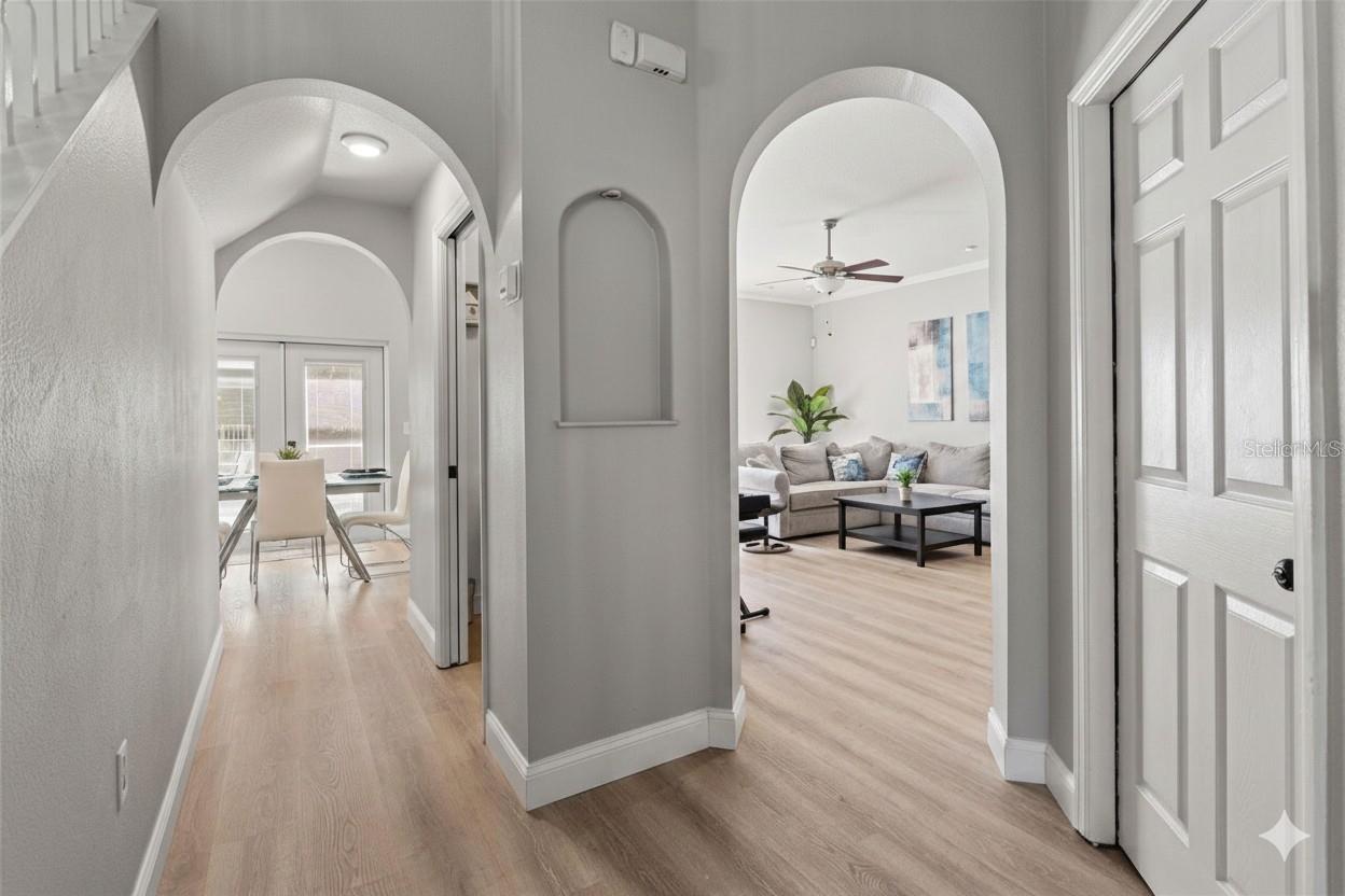 Nestled in the beautiful Eastlake Oaks neighborhood, this beautifully maintained 4-bedroom, 2.5-bath home with a 2-car garage offers 2,305 square feet of thoughtfully designed living space and the private backyard retreat Florida buyers dream about. Blending quality, comfort, and room to relax, this home welcomes you with dramatic vaulted ceilings that create an immediate sense of openness and elegance. The well-planned layout provides both defined gathering spaces and effortless flow, featuring formal at the front of the home and a warm, inviting family room and dining toward the rear—perfect for everyday living and entertaining. The kitchen is designed for both connection and functionality, complete with stainless steel appliances and easy access to the outdoor living area. The downstairs half bathroom provides convenience for family and guests. Step through beautiful new French doors to a spacious screened pool enclosure offering the ideal balance of sunshine and shade. The covered backyard bar creates a true entertaining oasis, all set within an exceptionally quiet and private setting. Upstairs, the serene primary suite features a newly renovated private bath with a relaxing soaking tub, separate shower, and enclosed water closet. Three additional bedrooms, a full bath that has been completely renovated, and a conveniently located upstairs laundry closet complete the second level. This home showcases numerous major updates for peace of mind, including a roof (2021), Dual Zone A/C (2026), water heater (2023), all new flooring (2023), pool pump (2025), and exterior paint (2021). Pool resurfaced (2017). All appliances—including the washer and dryer—convey with the home. Ideally positioned on a quiet cul de sac, just minutes from top-rated schools, shopping, dining, parks, trails, and Tampa Road conveniences, and approximately 20–30 minutes to Gulf beaches or Downtown Tampa, this location offers effortless commuting and coastal accessibility. A spacious homesite, a sparkling pool made for Florida afternoons, and a meticulously cared-for interior—all within one of Oldsmar’s most convenient and sought-after communities. This is the one you’ve been waiting for.