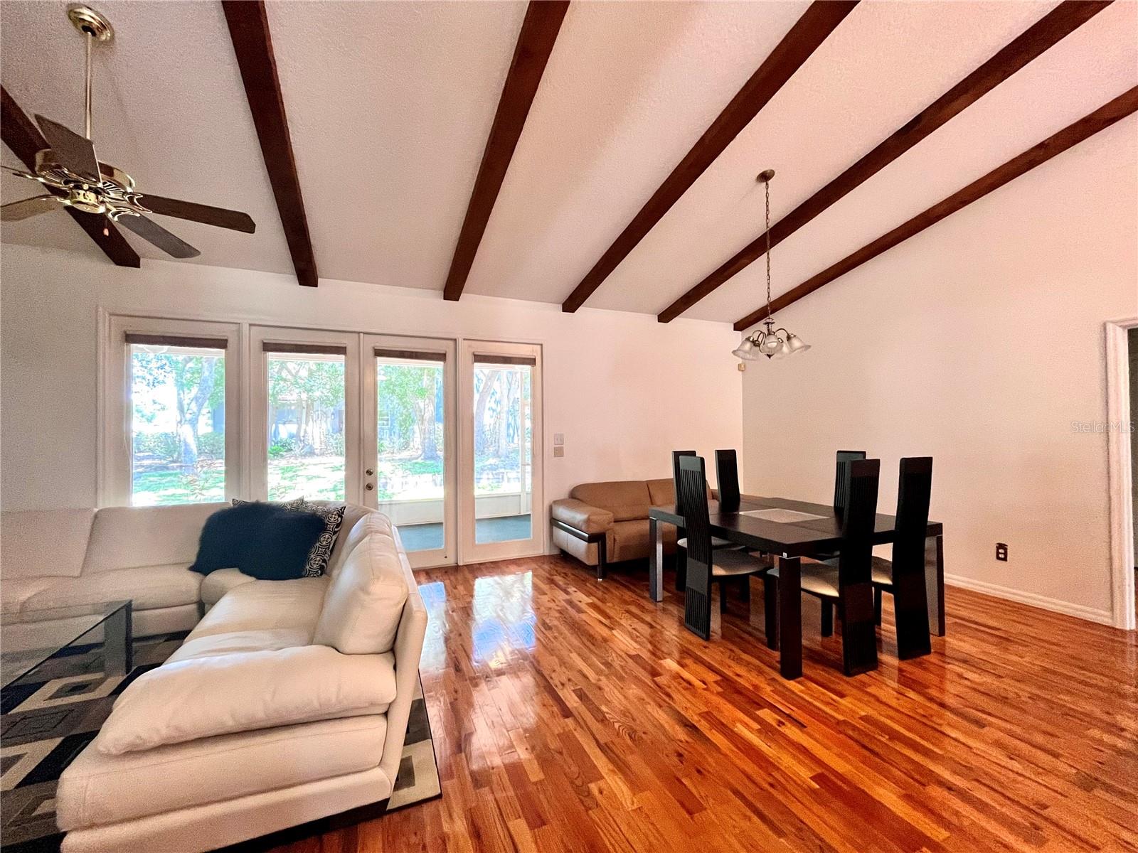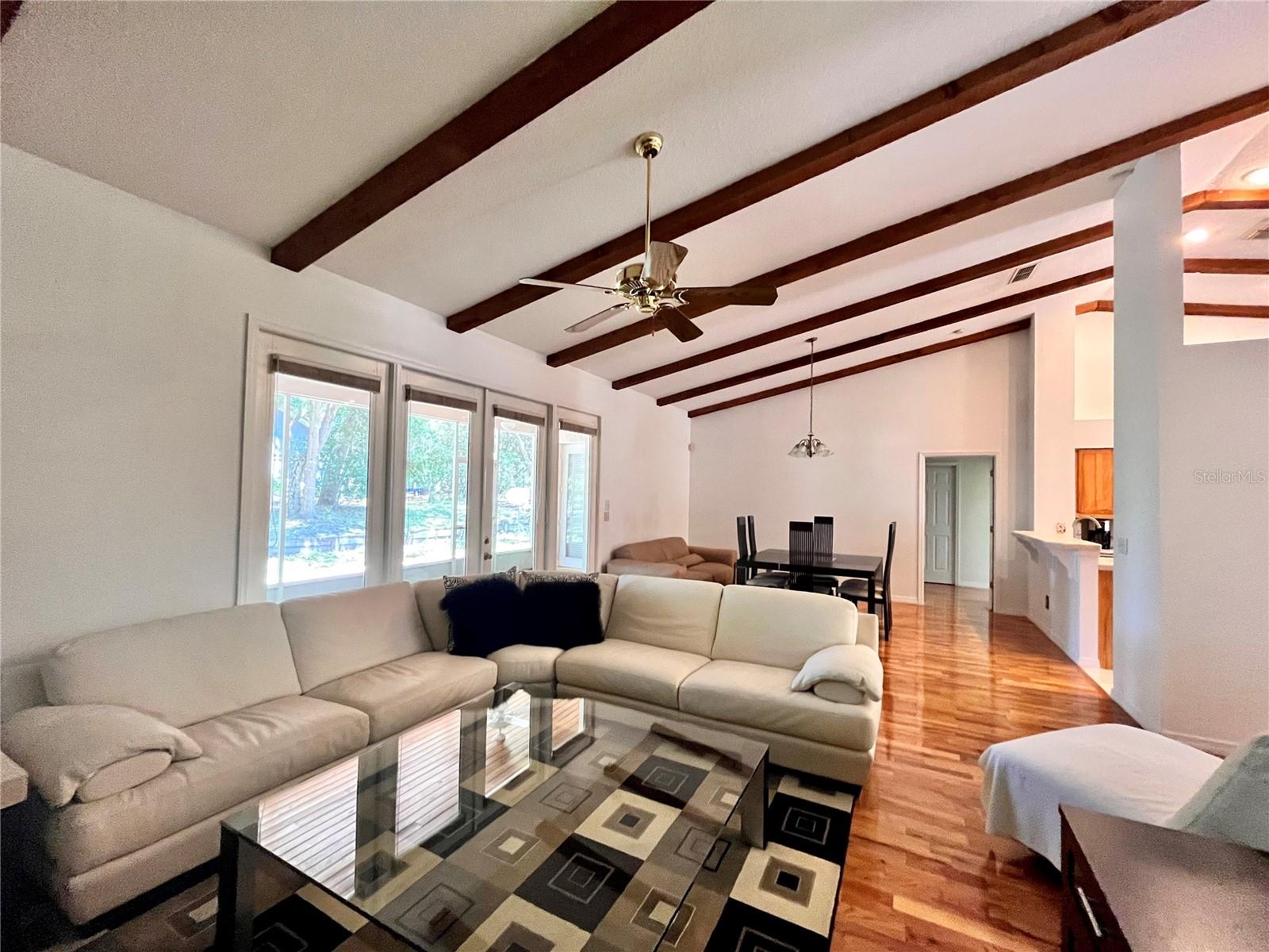 Located in the decorated community of SHERWOOD OAKS, this charming single-story brick front residence boasts a prime corner lot location. Inside, a well-appointed 3-bedroom, 2-bathroom layout reveals a thoughtfully designed split bedroom floor plan, ensuring privacy and comfort. The inviting great room features a gas burning fireplace beneath vaulted ceilings, creating a cozy atmosphere for gatherings. Throughout the home, real wood, carpet, and tile flooring exude both elegance and practicality. French doors and windows adorned with wood blinds and drapes flood the space with natural light. An attached 2-car garage with an automatic door opener offers convenience, while the spacious backyard beckons with a large screened patio, ideal for outdoor enjoyment. Situated just 2 miles from Interstate I-4, this home provides easy access to Daytona and other nearby beaches, offering a perfect blend of suburban tranquility and coastal convenience. Notable upgrades include a BRAND NEW ROOF (OCT. 2024), REFRESHED EXTERIOR PAINT(NOV. 2023), and a NEWER INTERIOR PAINT (2019).