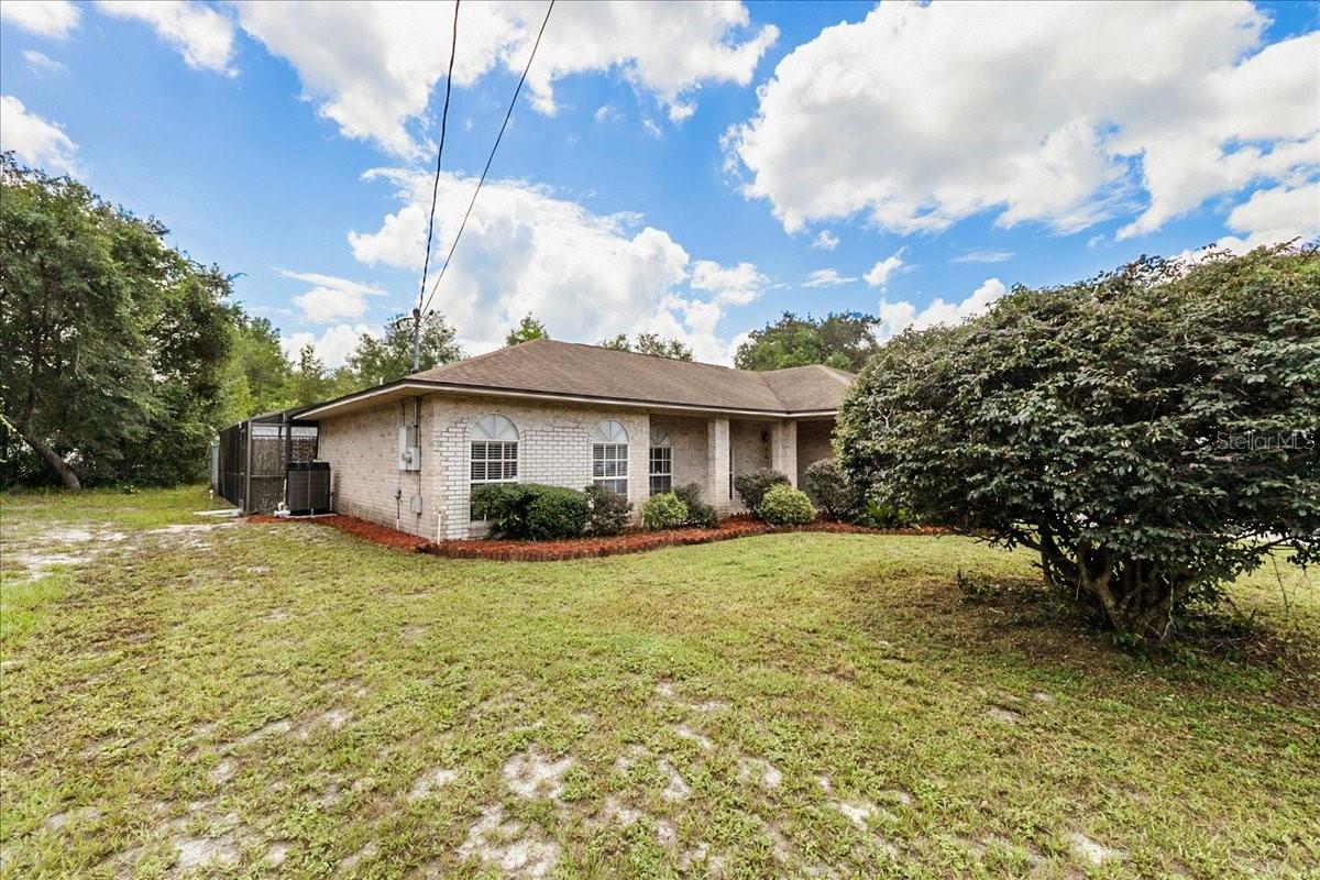 Discover comfort and convenience in this beautifully maintained 3-bedroom, 2-bath home featuring a screened-in heated pool, perfect for year-round enjoyment. The brick-facade exterior offers timeless curb appeal and low-maintenance durability, while inside, a cozy stone fireplace adds warmth and character to the living space. The kitchen is outfitted with granite countertops, blending style with functionality. Step outside to a generously sized backyard complete with a 12x24 metal shed, ideal for storage, hobbies, or a workshop. Situated on an oversized lot, this property offers plenty of room to entertain, relax, or expand. Don’t miss your opportunity to own this versatile and inviting home! 2014 roof, 2021 HVAC, 2022 Hot Water Heater No HOA. Plenty of room to park a boat, trailer ect.