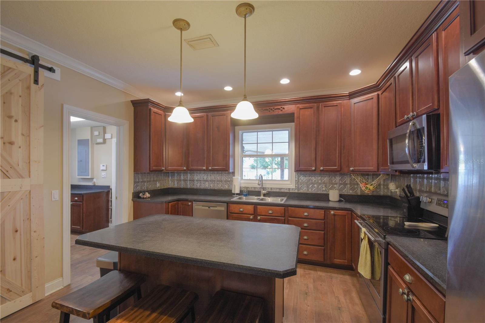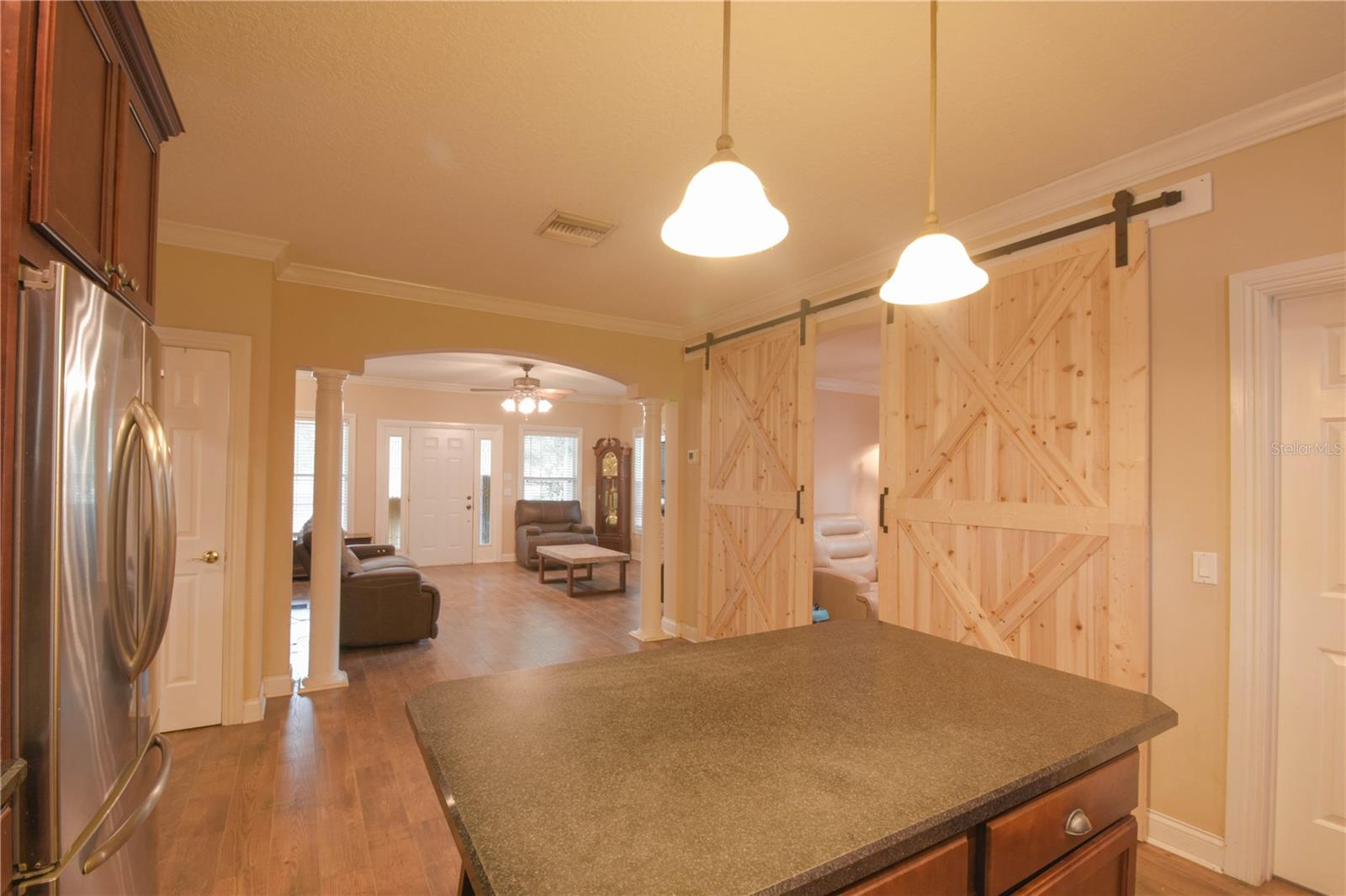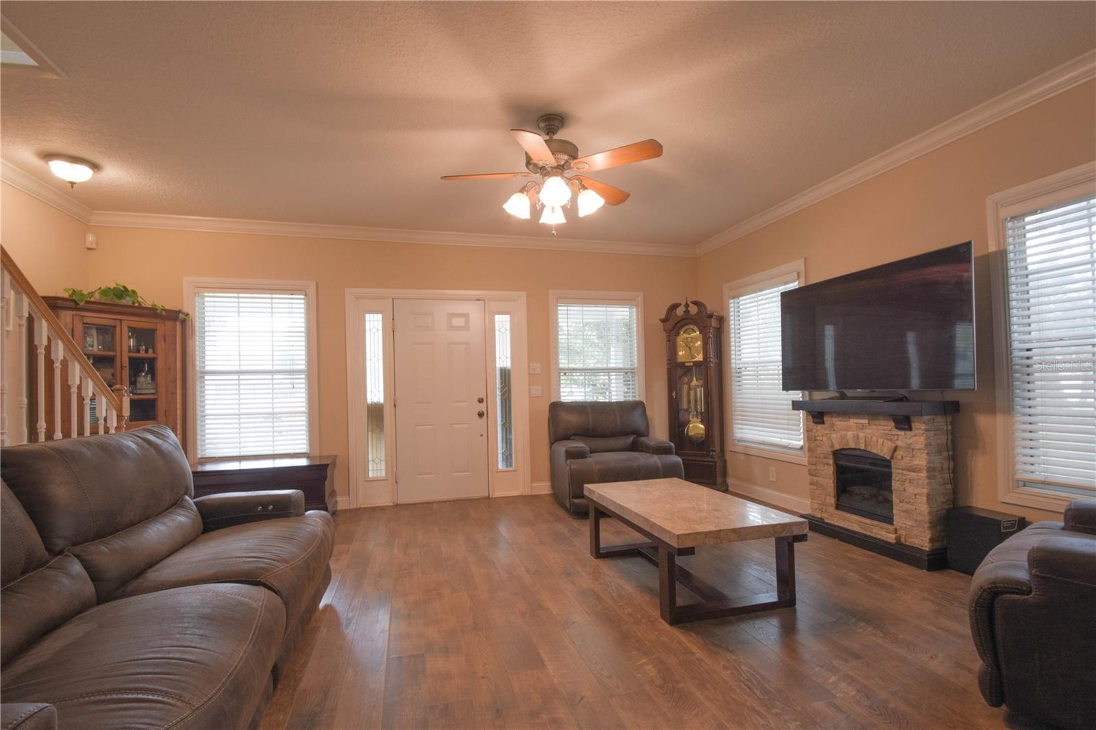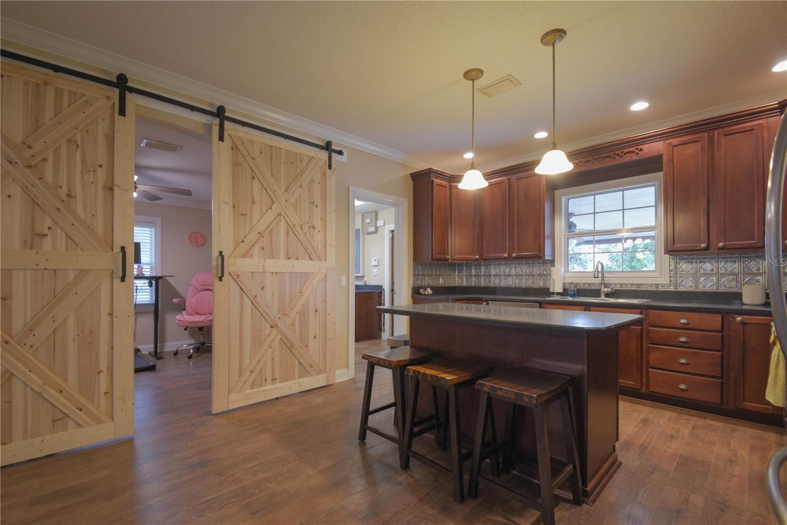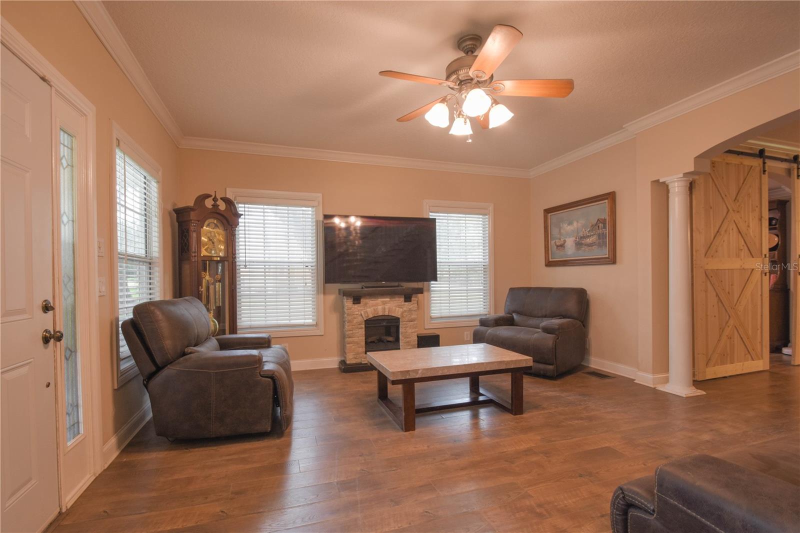 Amazing opportunity in HISTORIC ORANGE CITY! Check out this charming, Craftsman Style, two-story beauty sitting on 0.76 acres! This home features 3 bedrooms and 2 full bathrooms, an office loft, plus a bonus room! Upon entry you will be amazed at the space and layout. Downstairs features laminate wood floors, a large family room, bonus room with sliding barn doors (prior formal dining room), two secondary bedrooms, and a full bathroom. The kitchen features solid wood cabinets, a large island with breakfast bar seating, and stainless appliances. Just off the kitchen you'll find the utility room with laundry and extra storage. Upstairs is entirely dedicated to the Primary/Master Suite. At the top of the stairs landing you'll find a built in desk - perfect for a home office, a large walk-in closet, Primary/Master bathroom, and the huge Primary/Master bedroom. NEW HVAC 2025! Fully fenced back yard - vinyl fence installed 2021. WALK to Veterans Memorial Park and Mill Lake Park to enjoy amazing events sponsored by Orange City, such as Movies in the Park, Food Truck Fridays, and many holiday events! Located just 3.2 miles from Blue Springs State Park, this home is ideally located to enjoy Central Florida to the fullest!