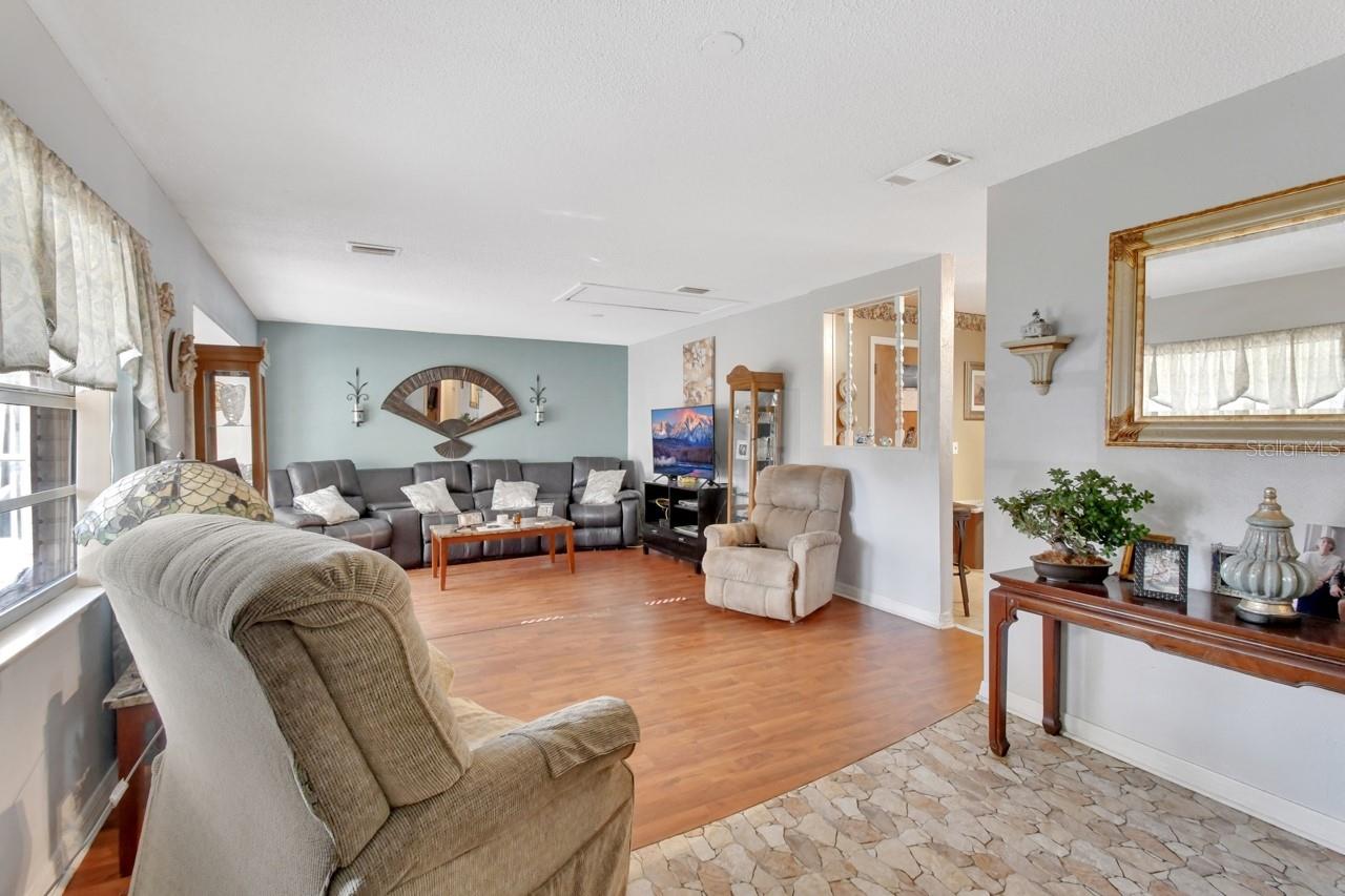 Are you searching for your first home, a retirement home, or a great investment property? This 3-bedroom, 1-bath home is nestled in a quiet neighborhood in Orange City. The garage has been converted, offering expanded living space that can also serve as a dining area. The kitchen features hardwood cabinets, stainless-steel appliances, and sliding glass doors leading to a screened in porch-perfect for relaxing or entertaining. You will love the utility laundry room, which adds valuable storage space, while the backyard includes a storage shed for lawn equipment and extra items. Recent upgrades include a new roof and AC unit installed in 2022, along with an updated hot water heater and panel box, making this home move-in ready! Conveniently located just minutes from I-4, it offers easy access for commuting to Daytona or Orlando
