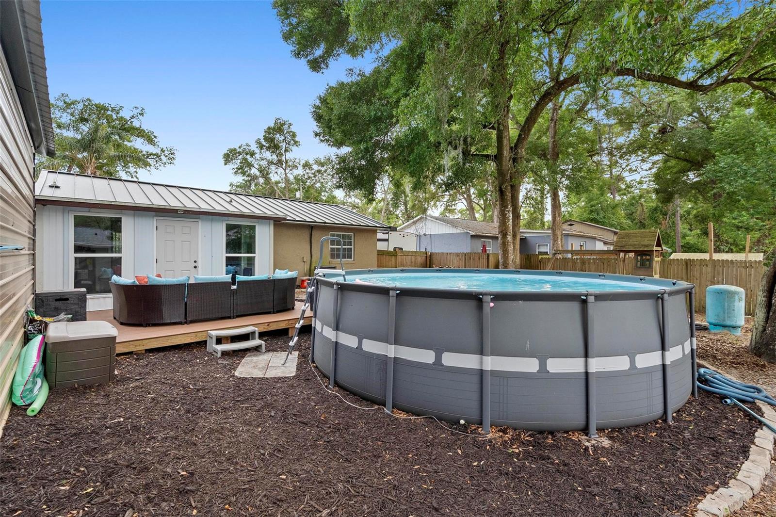 Take a look at this move-in-ready, bungalow-style home in Unincorporated Orange City, FL. Valentine Park is close by. The St. Johns River and Blue Springs State Park are less than 2 miles away for boating, swimming, gathering with family and viewing our beautiful Manatee in the winter. Take advantage of our shopping hub in Orange City! There are plenty of stores, restaurants, professional services, and a hospital all within the city limits. The home has been well-maintained and feels like home. Metal roof installed in 2015. HVAC updated 2022. Electrical and plumbing were upgraded in 2014. Interior was painted last fall. Florida Room has a window unit for A/C. 24’x20’ Carport installed in 2022. Trex Composite deck in the rear of the home provides a great sitting area and low maintenance. Above ground pool will stay. 4” Well installed 2019. Septic pumped 2024. You need to see this home to truly appreciate it.