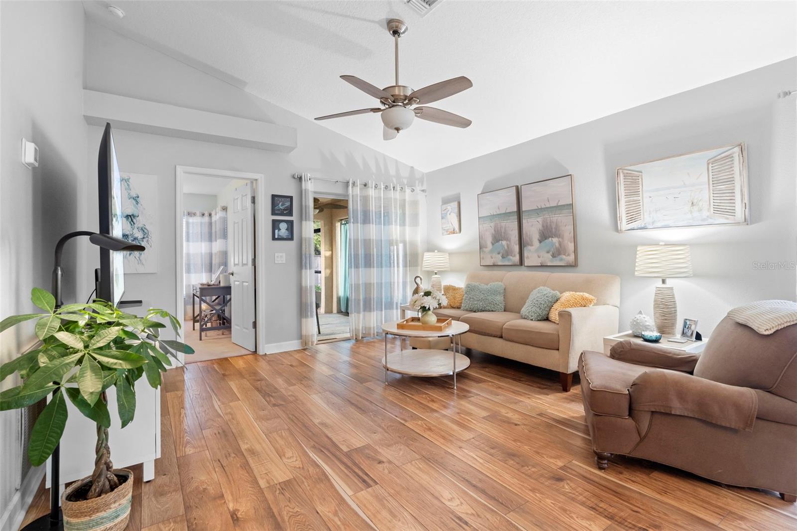 Welcome to your Dream Home in Fawn Ridge! Tucked away on a quiet cul-de-sac within the highly-desirable Fawn Ridge community of Orange City, this bright and airy home offers 3 bedrooms, 2 baths, a new HVAC system 2025, new roof in 2018, new carpet in all 3 bedrooms, new paint in the Master Bedroom, natural gas cooking and heating, an extended screened-in porch, and an easy-care saltwater pool. This home offers exceptional privacy with a wooded backyard view and privacy fence. The community offers underground utilities, sidewalks, the added safety of security cameras, and no through traffic. Step inside to a warm welcoming layout featuring luxury vinyl plank (LVP) flooring in the living and dining areas. Large windows fill the home with natural light, creating an airy, uplifting ambiance and seamless connection to the outdoors. This lovely home is in a fabulous location with friendly neighbors, low HOA, and well-maintained grounds. You'll love the close proximity to major shopping, nature parks, and authentic restaurants, as well as the convenience of getting to the I-4 interstate in minutes. Don't miss this opportunity to own in this great location! Don't let this one get away!