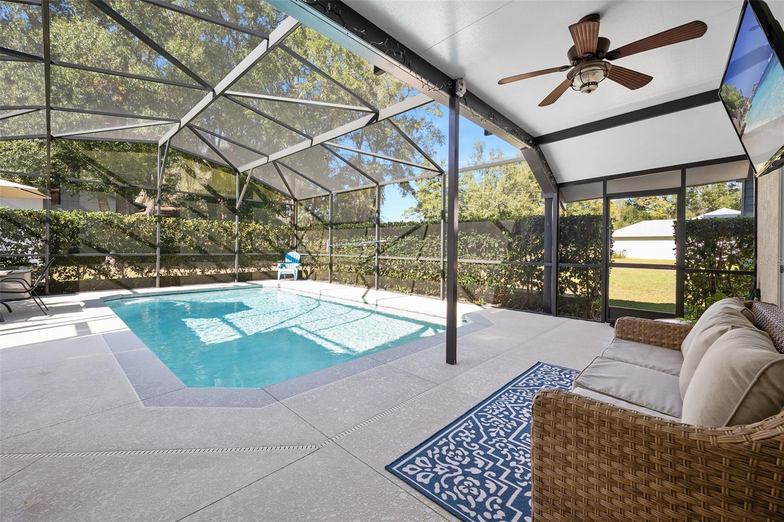 Welcome home to this well-maintained, turn-key 3 bedroom, 2 bath block home in the heart of Orange City, Florida. Bring the boat and RV — this property sits on an oversized corner lot with no HOA, offering plenty of space and freedom. Outdoor enthusiasts will love being just minutes from Blue Spring State Park, the St. Johns River, and the Coast-to-Coast Trail for endless recreation and adventure. Built in 2005, this nearly 1,800 sq ft custom home features modern comforts throughout, including high ceilings, a split bedroom floor plan, indoor laundry, a 2-car garage, an RV/boat carport, and large windows that fill the home with natural light. Major upgrade already complete with a NEW 2025 roof. Settle in before spring and enjoy your private backyard oasis, complete with a screen-enclosed, in-ground saltwater pool installed in 2018 — perfect for relaxing, entertaining, and soaking up the best of Florida living!
