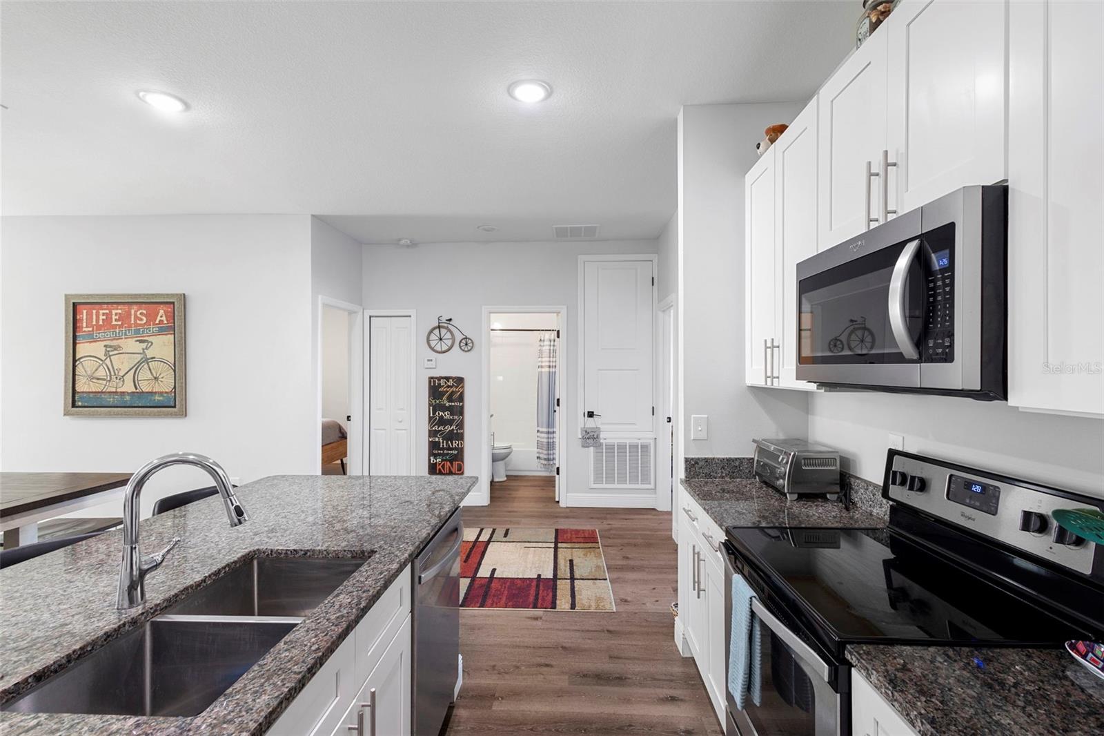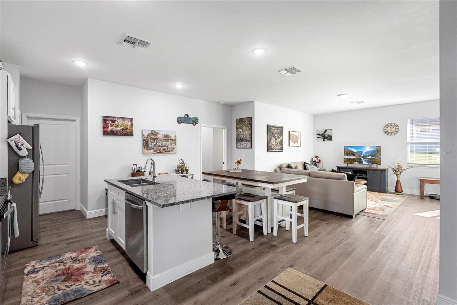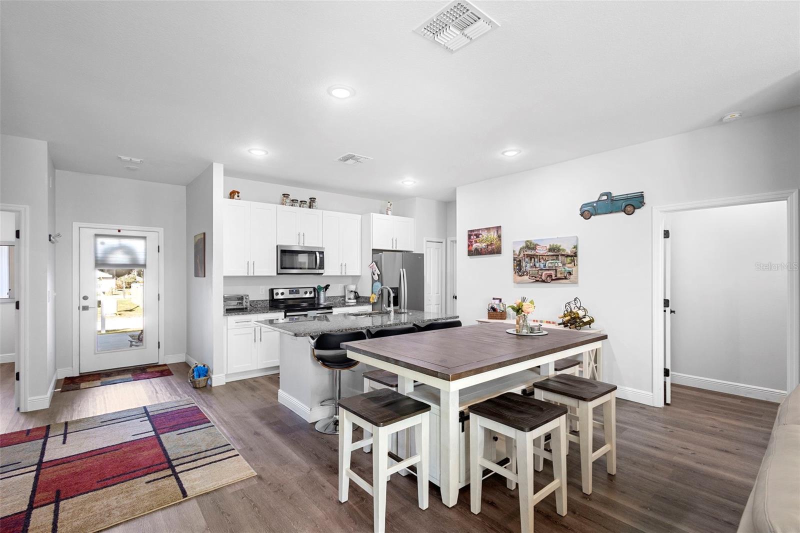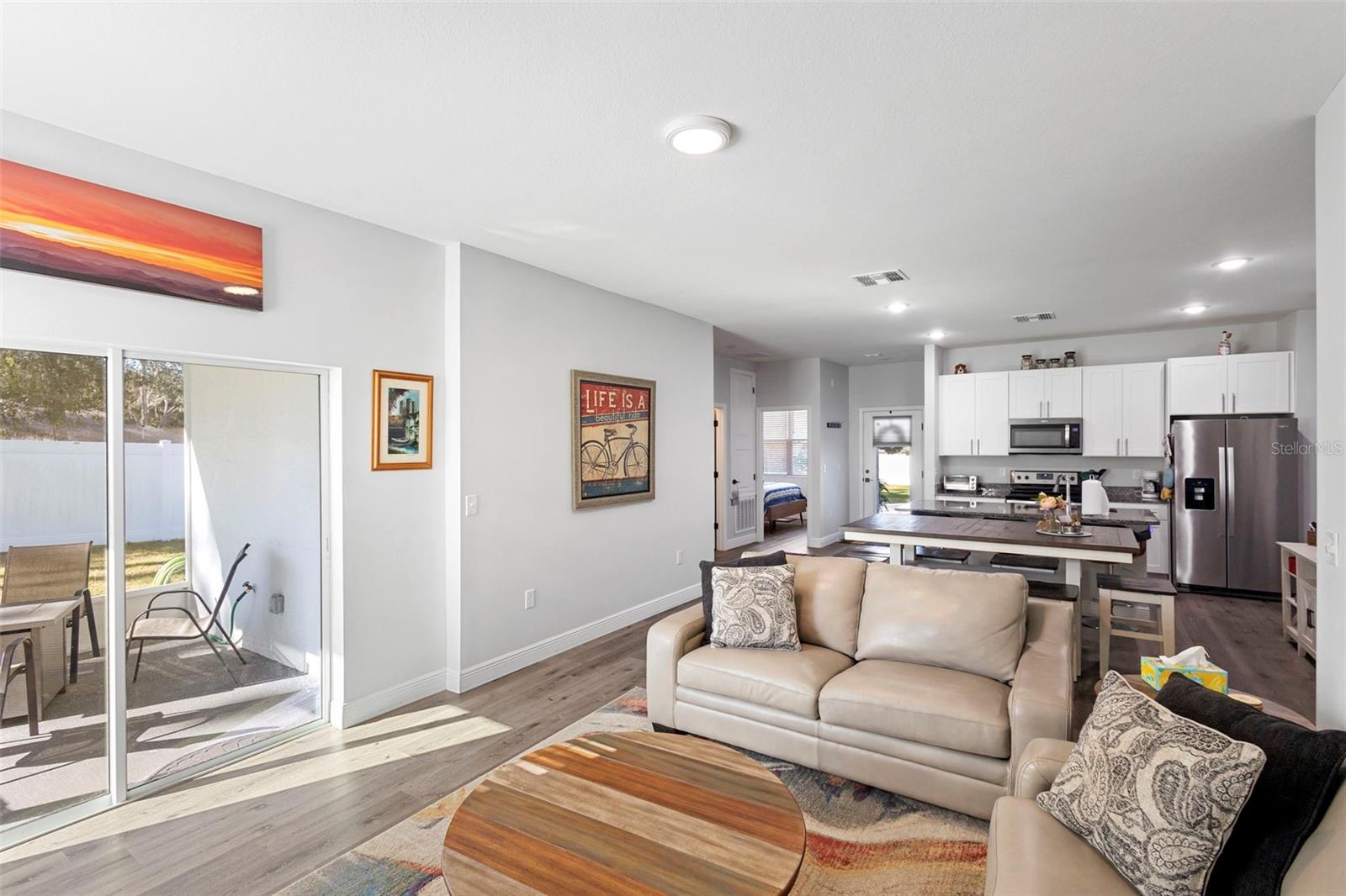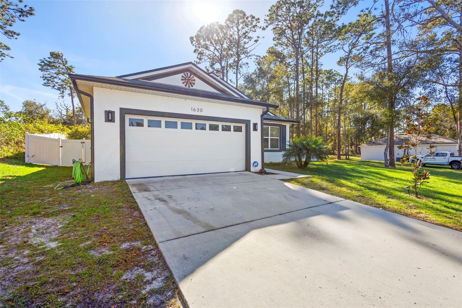 Why wait to build when you can own this stunning 2021 home loaded with upgrades you won’t get in new construction? This beautifully maintained property features a new vinyl fence, new screened lanai, and luxury vinyl plank flooring throughout—NO carpet! Enjoy a bright and open split floor plan with high ceilings, granite countertops, shaker cabinetry, stainless steel appliances, and a convenient breakfast bar. The spacious 20x21 oversized garage, inside laundry room with washer & dryer included, and gutter system offer comfort and functionality. The primary suite includes double sinks and a modern layout. Additional upgrades include a water softener system, leased solar panels with a low monthly payment of approx. $130, outdoor lighting, and quality stucco/block finishing. Situated on a large backyard lot, this home has no HOA and has been used as a short-term rental, offering flexibility for future owners. Just minutes to I-4, Orlando, Daytona, shopping, medical facilities, and the beaches—you’ll love the location and convenience. Seller is open to concessions or a rate buy-down with acceptable terms. Can close quickly. Furnishing are negotiable. Call today before this home says "Sold"