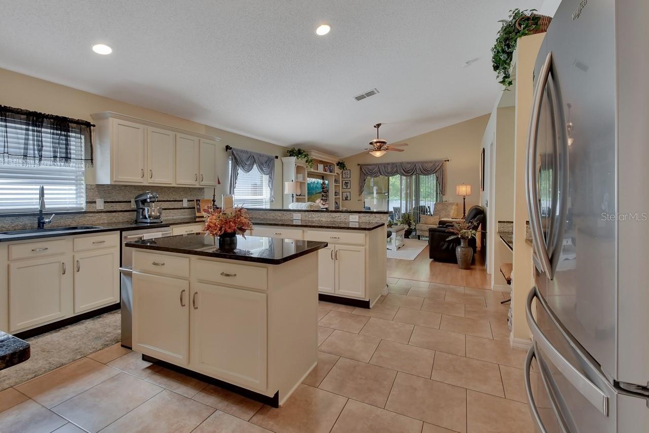 Welcome home to the desirable Blue Springs Villas subdivision in the heart of Orange City! This stunning contemporary single-family residence offers 3 bedrooms, 2 bathrooms, plus a study/den that can easily be used as a 4th bedroom, all within a spacious 1,882 square foot open layout. Built in 2005, this home is truly move-in ready. Step inside to discover an updated 17x16 chef’s kitchen featuring nearly new custom cabinetry, a cooking island, built-in desk, coffee bar, breakfast bar, decorative stone backsplash, granite countertops, and newer stainless steel appliances. The open and split floor plan is enhanced by volume ceilings, plant shelving, and 16x16 diagonal ceramic tile flooring, creating a bright and airy feel throughout. Inside utility room with added convenience. A formal dining area provides additional space for entertaining. Relax year-round in the cozy 16x10 all-seasons Florida room with vinyl windows, perfect for enjoying peaceful views. The primary suite is a true retreat, showcasing a beautifully updated en-suite bath with a garden tub, dual vanities, and stylish glass bowl sinks. Outside, enjoy a private fenced backyard with no rear neighbors, surrounded by majestic oak trees—ideal for outdoor living and entertaining. Additional features include a 2-car garage with freshly painted floor and a brand-new roof. This tight-knit community offers sidewalks, a playground, and convenient access to shopping, dining, medical facilities, and I-4. Located just 30 minutes from Orlando, the beaches, Blue Springs State Park, and the St. Johns River, this home offers the perfect blend of comfort, convenience, and lifestyle. Turnkey, light, and bright—schedule your private showing today!