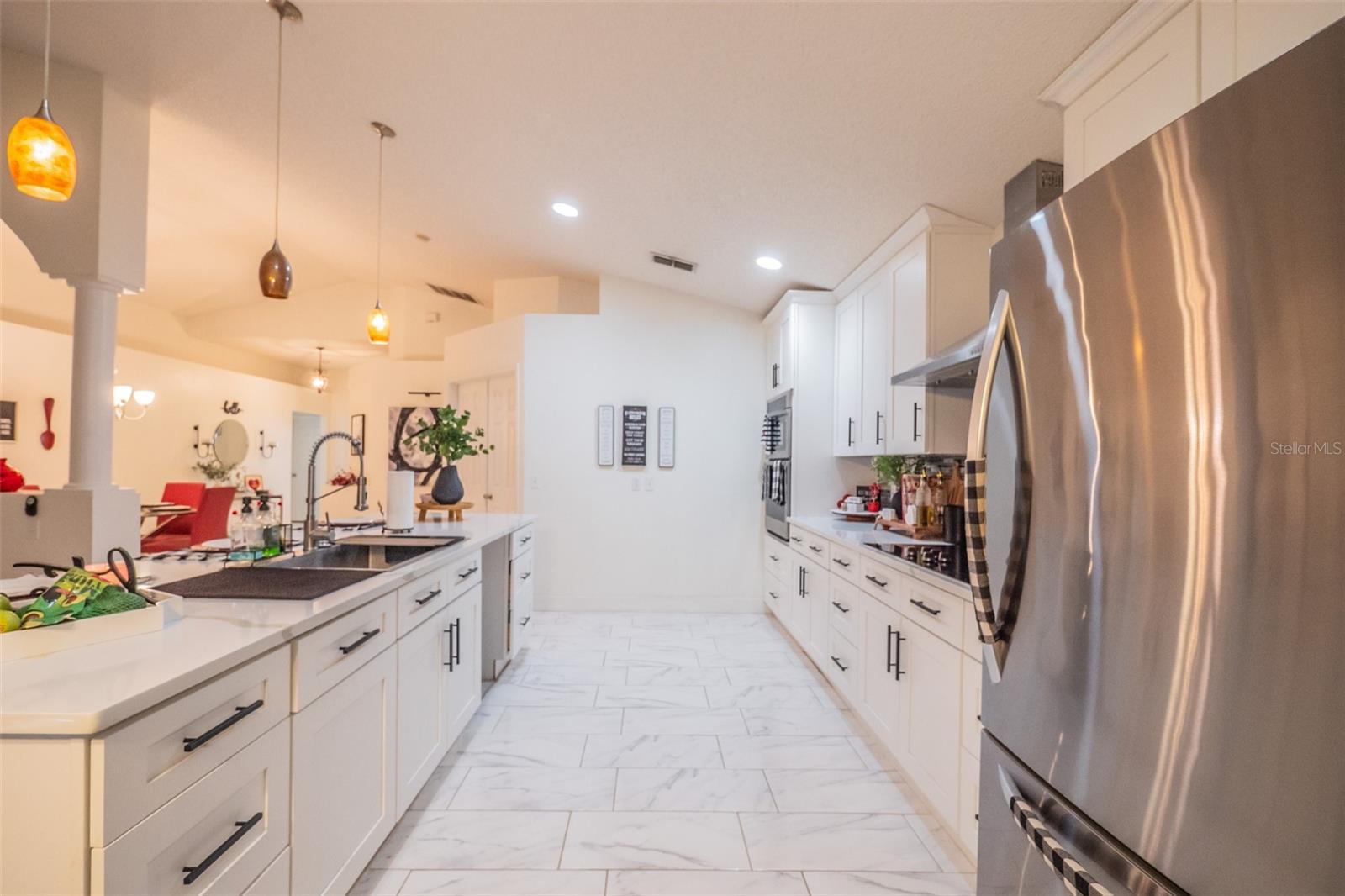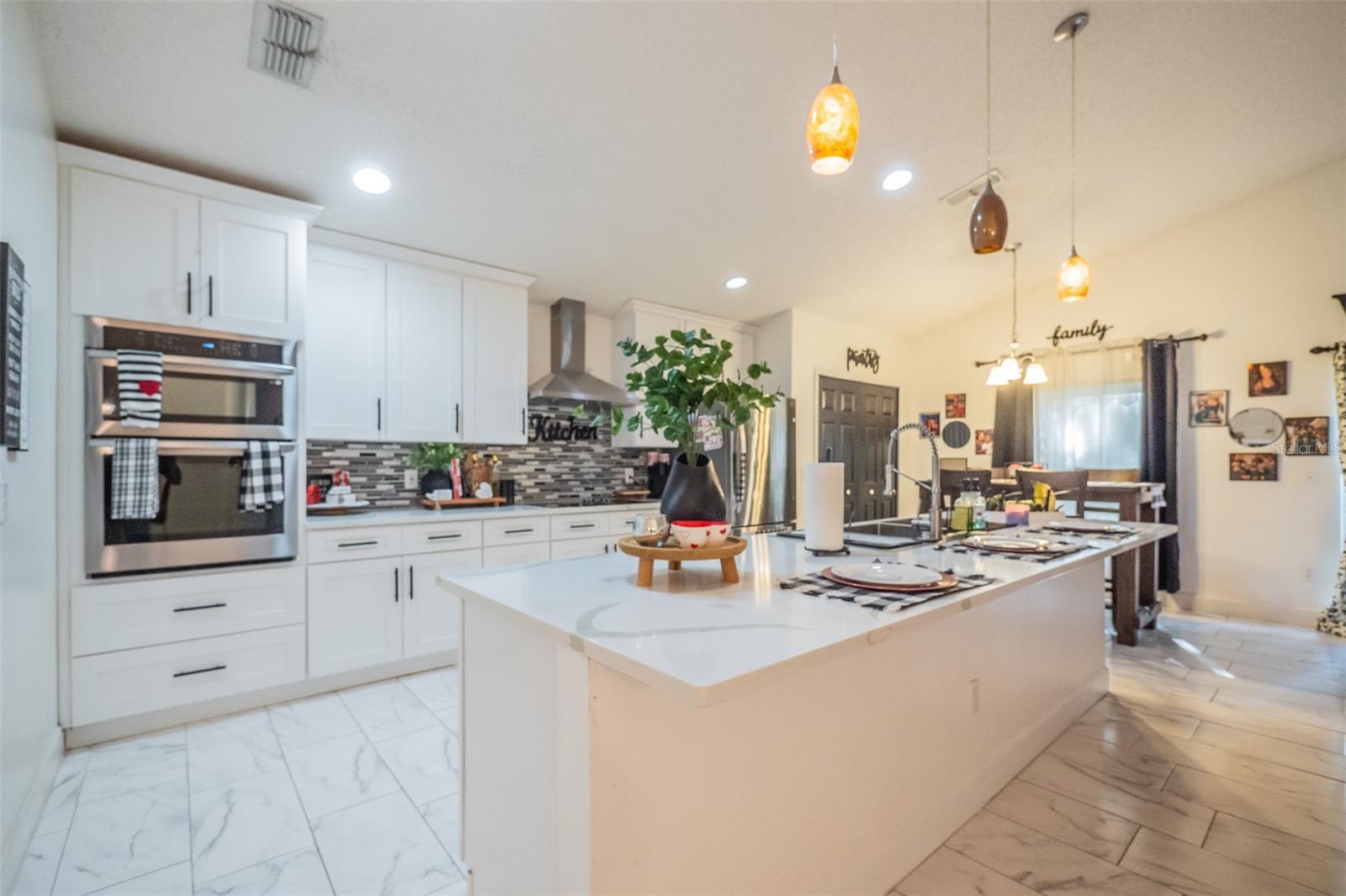 LOOK NO FURTHER...Your Slice of paradise is RIGHT HERE! This happy home is solid BLOCK construction and immaculately maintained! Nestled in a quiet neighborhood, discover this hidden gem tucked away in the community of Blue Springs Villas. Just out of the way of the daily hustle and bustle but only mere minutes away from shopping, hospitals, schools, beaches, golf courses and more! Allow your imagination to see you and yours thriving here. LOW $79/mth HOA keeps up the park located in the center of the community which includes beautiful oak trees, park benches, picnic tables and a play ground. Picture your family and friends enjoying this spacious home with 3 bedrooms 2 baths and a BONUS ROOM that could be used as an office or 4th bedroom. This home offers both extensive space and functionality for any occasion. The split floor plan gives privacy whether you have a big family or are entertaining guests. Primary bedroom is approximately 15x13 and has an open bright feeling. Eat In Kitchen is 15x9' and boasts ample marble countertops and ceramic tile throughout the home. Kitchen overlooks a great family room with lots of natural light. This home boasts maximized space for minimized clutter containing tons of excellent storage including both shelf and closet space throughout. The backyard is 3/4 fenced and is perfect for your fire pit or grilling out. Two car garage fits all your tools as well as your vehicles. ROOF and hot water heater were new in May 2025. Kitchen was completely remodeled and appliances were also replaced in 2023. This home has great bones and has been through all recent hurricanes with no flooding or major damage. This home is ENERGY EFFICIENT with the Solar Panels that can be transferred to the new owners! Book a showing of this MUST SEE home and start your new life today!