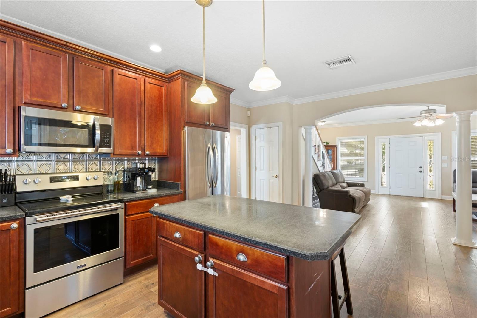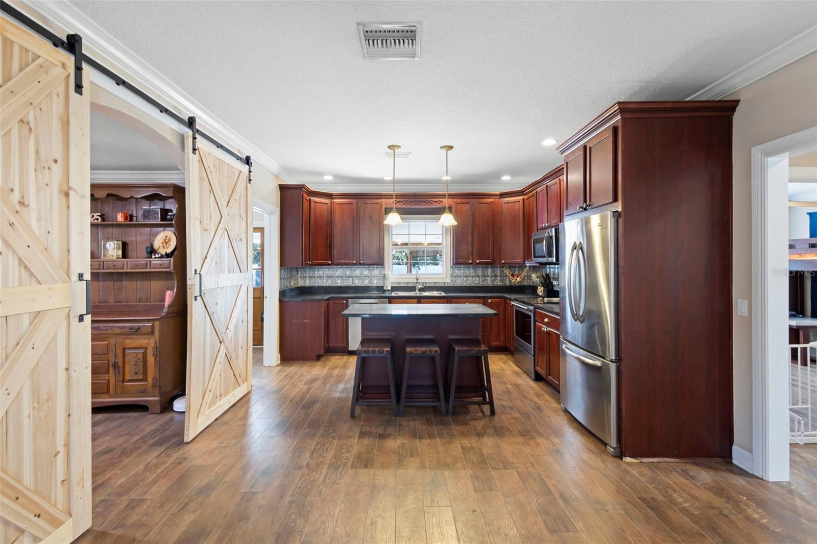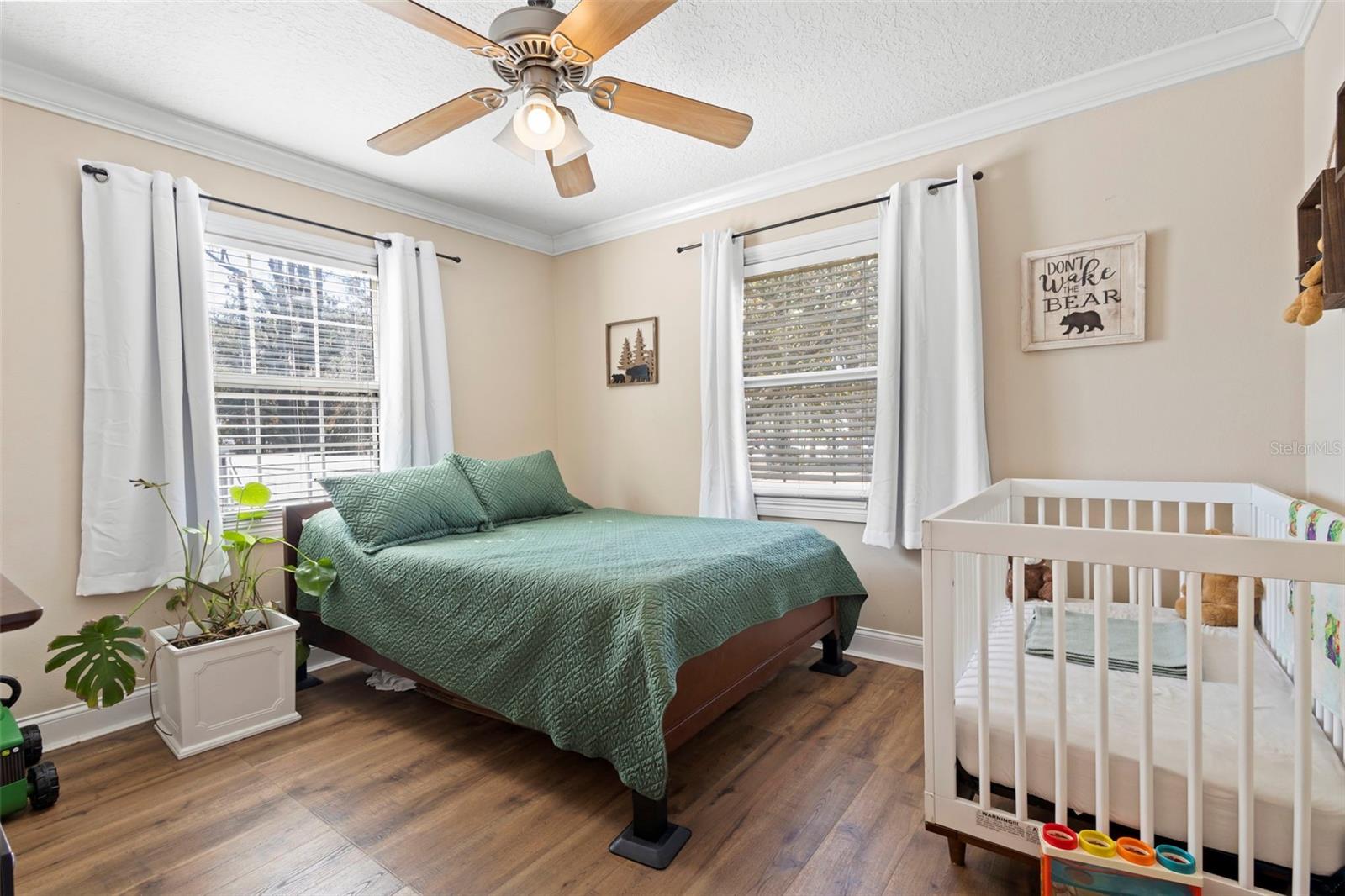**.76 ACRES- FENCED** Step into timeless charm blended beautifully with modern upgrades in this gorgeous 1940s historic home! Thoughtfully updated while preserving its character, this home offers peace of mind with 2 brand-new AC units, brand-new water heater, updated electrical panel, upgraded plumbing, upgraded double-pane windows, a freshly painted exterior, and durable metal roof. The home also features a new composite deck front porch, complemented by a stunning patio paver walkway leading to the entrance and a vinyl privacy fence installed in 2021. Inside, the charming interior features laminate flooring, knock down ceilings, crown molding, oversized baseboards, ceiling fans, and an inviting open layout perfect for everyday living and entertaining. The spacious kitchen is a true centerpiece, boasting a center island with breakfast bar seating, hardwood cabinetry, and stainless steel appliances including a brand-new glass-top range, microwave, dishwasher, and closet pantry as well as a French door refrigerator. The versatile dining room showcases beautiful sliding barn doors and is currently being used as a private office space. With its privacy, this room could easily function as a potential fourth bedroom (no closet). Retreat to the expansive owner’s suite featuring an elegant tray ceiling, abundant natural light, and a unique loft area with a built-in office space. The oversized walk-in closet offers a custom California-style organization system, while the private ensuite bath provides comfort and convenience. The guest bathroom has been tastefully updated with a tiled shower/tub combination. Situated on over ¾ of a fully fenced acre, this property is surrounded by stunning mature oak trees, offering privacy and plenty of space to enjoy outdoor living. Relax on the welcoming front porch to watch the sunrise or unwind on the back porch with breathtaking sunsets overlooking the expansive backyard. Bring your chickens and enjoy true country-style living while still benefiting from city conveniences! Ideally located just a short walk from multiple parks offering playgrounds, scenic walking trails, lake views, skate park access, and community events including outdoor movie nights, this home provides the perfect balance of recreation and relaxation. (Veterans Memorial Park, Mill Lake Park, Coleman Park, & Dickerson Park) This one-of-a-kind property combines historic character, extensive modern updates, and an unbeatable location — truly a rare find!
