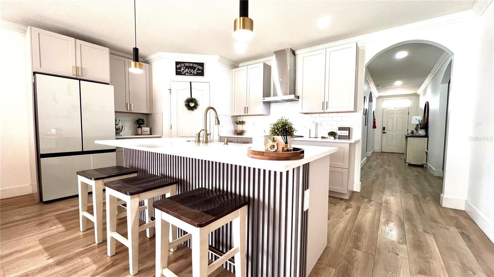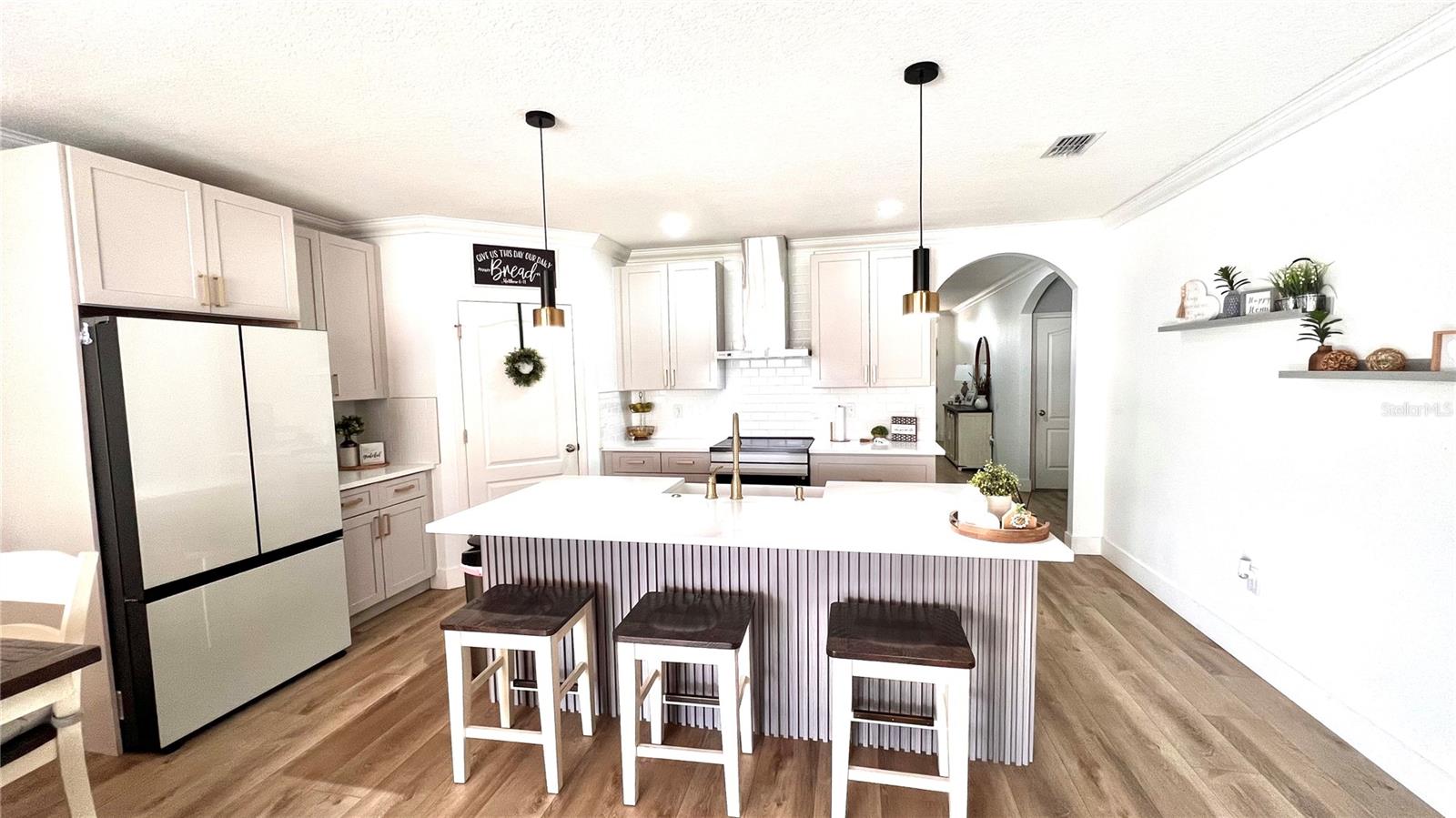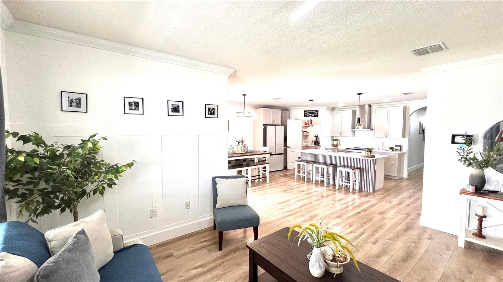 Beautifully upgraded home located in the heart of Orange City offering comfort, flexibility, and impressive outdoor living space. This well-maintained property features an open and bright layout with new luxury vinyl flooring throughout, elegant crown molding, and a fully renovated kitchen with brand-new cabinetry, modern finishes, and high-end appliances included. A standout feature of the property is the separate apartment located in the garage area, which includes 1 bedroom, 1 bathroom, and a kitchenette, providing a versatile space that can be used for guests, private workspace, or additional living area. Step outside to enjoy the extended lanai designed for gatherings and outdoor living, featuring an outdoor kitchen with grill, half bathroom, and plenty of space for entertaining. The backyard includes artificial turf and a recreation area, creating an attractive and low-maintenance outdoor environment. The property is equipped with solar panels that help reduce energy costs. The solar system is currently financed and may be transferred to the new buyer or paid off at closing through negotiation. Conveniently located near shopping, dining, parks, and with easy access to I-4, Blue Spring State Park, Lake Mary, and Orlando. Schedule your private showing today.