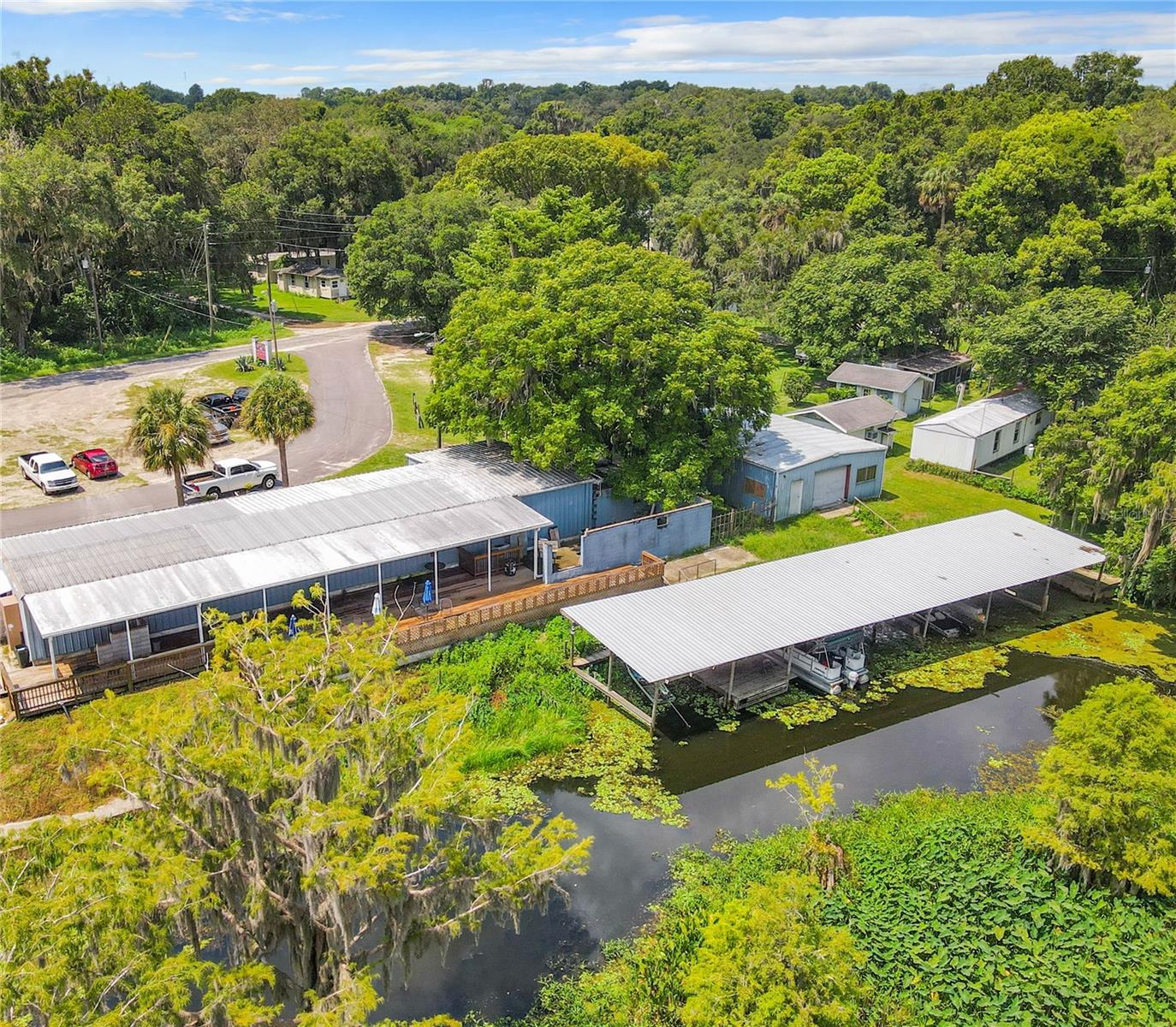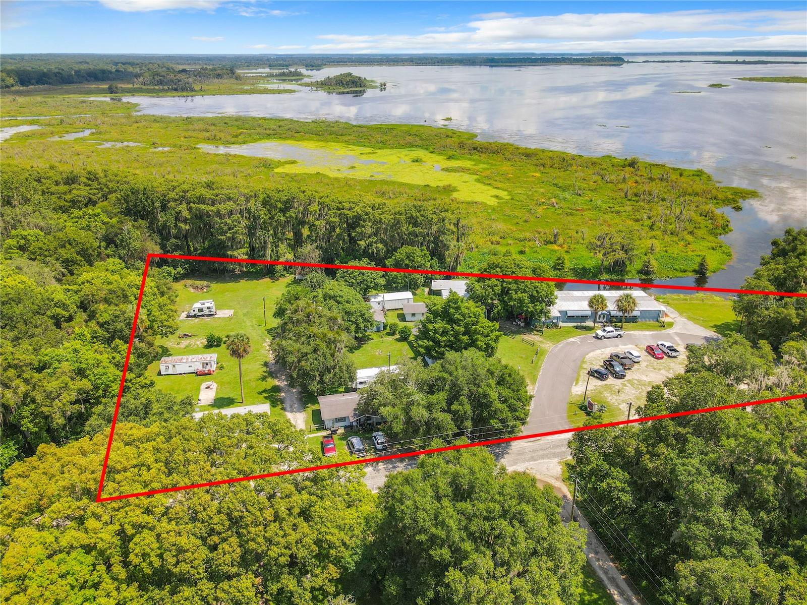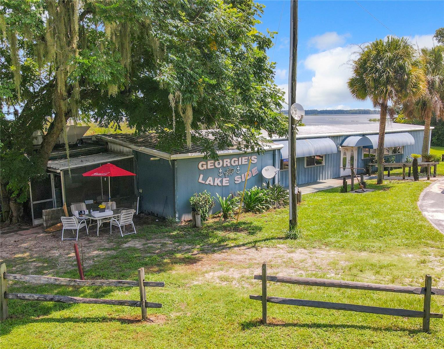 Located less than 10 minutes from I-75 and 30 minutes from Gainesville or Ocala, Georgie's Lakeside is a rare opportunity to purchase a lakeside restaurant, bar, and vacation property in North Central Florida. This property has a remarkably authentic, local, old-town Florida classic charm. It is the perfect escape from urban centers and a potentially enjoyable project for the seasoned investor looking to live Florida’s kicked-back lifestyle while earning an income from its already-established amenities and reputation. Georgie’s Lakeside is located on Orange Lake, which spans between Marion and Alachua Counties, covers over 12,000 acres, ranges in depth from around 5' to 12', and is one of North Central FL's largest lakes. Established in 1993, with B2 Zoning, the 2.75-acre parcel has 582 ft of waterfront, with an approx. 2,888 Sq Ft Restaurant & Bar (built in 1993), five 720 Sq Ft 1bd/1ba duplex efficiencies (built in 1962, roof replaced in 2018), 10 RV/MH pads, a 1,200 Sq Ft bait shop, and six boat slips. Georgie's bar holds a 4COP Liquor license; they have two pool tables, a dance floor and a stage, and a majestic view towards Orange Lake. The ten cabin units currently have full-time residents with month-to-month rent. Five of the RV/MH pads are presently in use, 3 with mobile homes on them, two with RVs on them, and the other five spaces are vacant. The old Bait, Ice & Tackle shop has been closed for several years, but revive it to its previous glory, add kayak or local boat rentals, and you’ve got another great income opportunity from this property. Well-established, with 313 reviews on Google, Georgie’s already has a good reputation with locals and visitors, who love the laid-back, casual atmosphere, music, and fun time at Georgie's. The kitchen and bar come fully stocked and ready for the new owner's personal touch! Another huge plus for investment property, the Heagy-Burry Park, located directly between Georgie's Lakeside and the Sun Retreats Grand Lake RV Resort, is up for a $2M renovation mid 2024! Marion County has recognized Orange Lake as a great source of income revenue for its excellent Bass Fishing, air boating, duck hunting, bird watching, and other aquatic-oriented recreation. With the upscale RV resort directly to the south, this new renovation next door, and its convenient location between the sprawling growth of Ocala, and the protected natural resources of Orange Lake, Georgie’s has a unique opportunity for economic growth while preserving its wild mystique and authentic charm. Call today to tour this remarkable property!