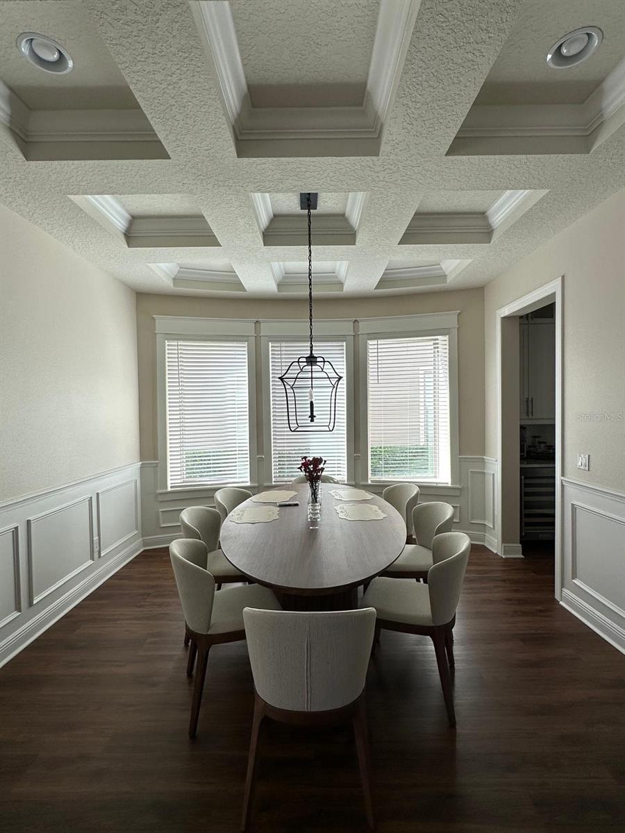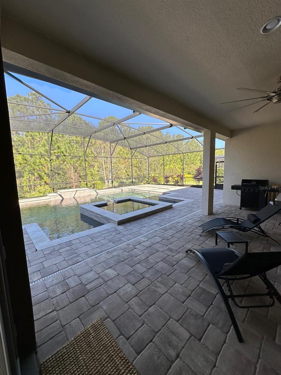 The 8556 Adalina Pl is a stunning, luxurious 4,831 SF living area of a 6,536 SF Total building area 'Portside' model home from builder Pulte Homes, five-bedroom, three full and two half baths, two-story, located on conservation grounds and with a large wooded area behind the house. This house is in Enclave at Village Walk, a gated community in Lake Nona, with an oversized master bedroom suite, a formal dining room, a home office, as well as an open kitchen/gathering room on the first floor. The gourmet kitchen features a massive center island, high-end stainless-steel appliances such as the double wall oven and natural gas cooktop, a KitchenAid oversized stainless steel French door refrigerator, a butler’s pantry, a walk-in storage pantry, an island, and café seating. The home’s gathering room features a wall of glass sliders that completely open the home to the outdoor living space with panoramic views of the large lanai covered and custom-built heated saltwater pool, spa fountain, and private conservation area. Upstairs are four guest bedrooms, two full baths – perfect for modern family living and entertaining relatives and friends. The enclave residents through the HOA enjoy free amenities such as a gated community, complete lawn care, internet, cable, security, and a sprinkler system. In addition, the Village Walk Community offers the Enclave residents a beautiful Lap Pool, Resort Style Pool, 24-hour State of the Art Fitness Center, lighted trails, scenic bridges and canals, salon, Tennis Pavilion, several lighted tennis courts, basketball courts, lakeside gazebo, gas station, coffee shop and deli market, post office, game room, and multipurpose room big enough for family gatherings, with a 24-hour guard. Residents are a short drive away from Medical City, educational institutions, Orlando International Airport, KPMG Lake House, Disney, Universal, SeaWorld, USTA's state-of-the-art 100-court tennis facilities, and new Orlando City Soccer training facilities. This house is zoned for ‘A’ rated schools such as Village Park Elementary, Lake Nona Middle & High School, and is convenient. If the new owner desires the present tenant to continue with the present $5,900/month rent through the current lease ending on March 20, 2026, or otherwise vacates when the sale occurs. Even if the new owner desires to keep the tenant beyond the present lease expiry in March 2026, then the tenant wishes to continue, the new owner and the tenant can discuss. The Brown painting (garage doors, windows, and trim) warranty is transferable to the new owner, and the company number will be provided to answer any questions. The nice, long Living Room and Eat-In Kitchen drapes/curtains were preserved by the tenant in the garage, and those will be available to the new owner at no cost, if desired. Along with the appliances Washer and Dryer also convey.