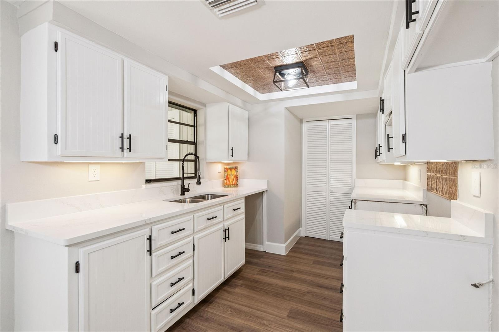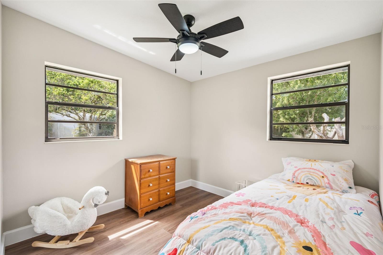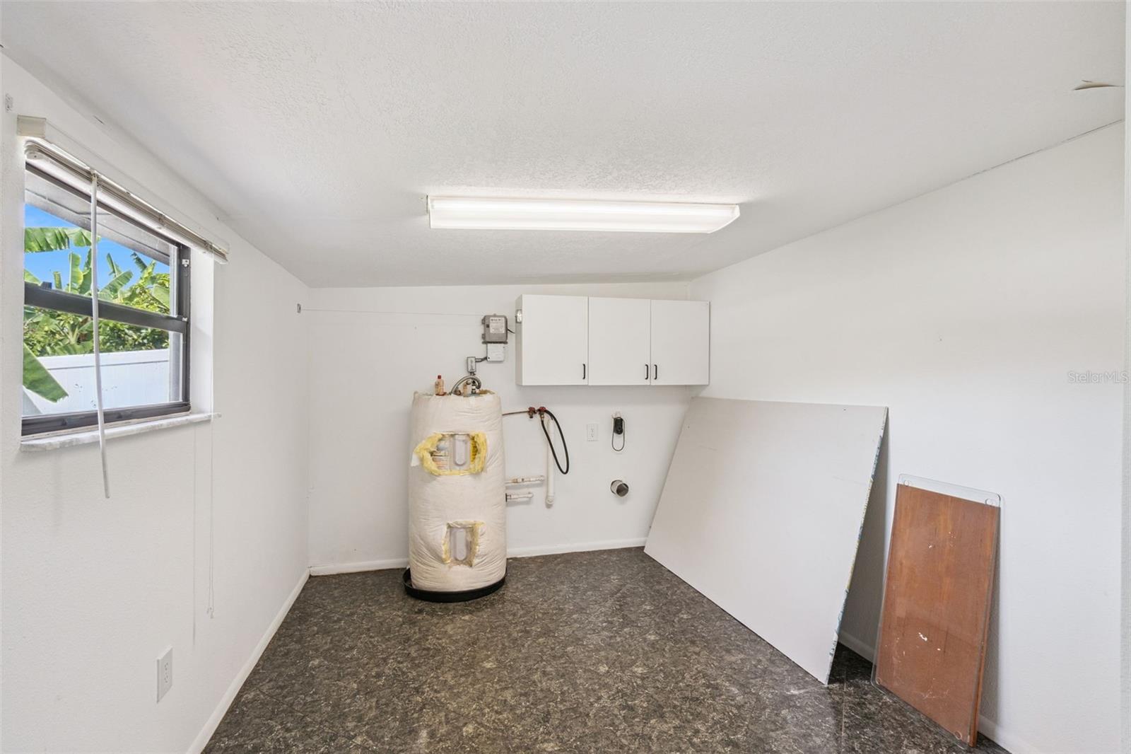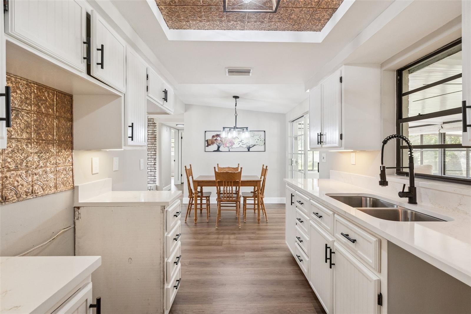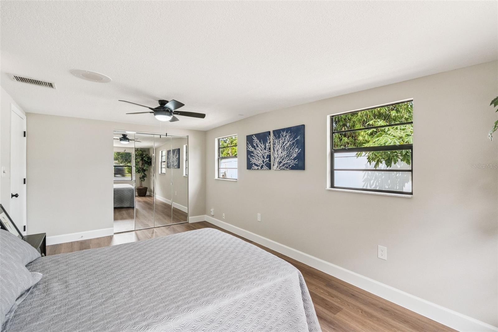 One or more photo(s) has been virtually staged. Embrace the charm of this Mid-Century Modern home that features 3 bedrooms and 1 and a half bathrooms. With a new roof installed in 2025 and numerous updates, this inviting space welcomes you. Step into the living room, where a striking floor-to-ceiling fireplace and decorative ceiling beams create a warm atmosphere. The kitchen shines with new solid surface countertops and brand new stainless steel appliances (to be delivered soon), set to elevate your culinary experiences. The spacious primary bedroom offers a peaceful retreat, while the split floor plan ensures privacy throughout the home. At the back, the bright Florida room invites you to unwind or entertain in comfort. The generously sized laundry room provides versatility for an office or craft space, catering to your creativity. Nestled on an oversized lot in a cul-de-sac, this property provides abundant outdoor space and two storage sheds for your needs. This home is a remarkable opportunity—schedule a showing today!
