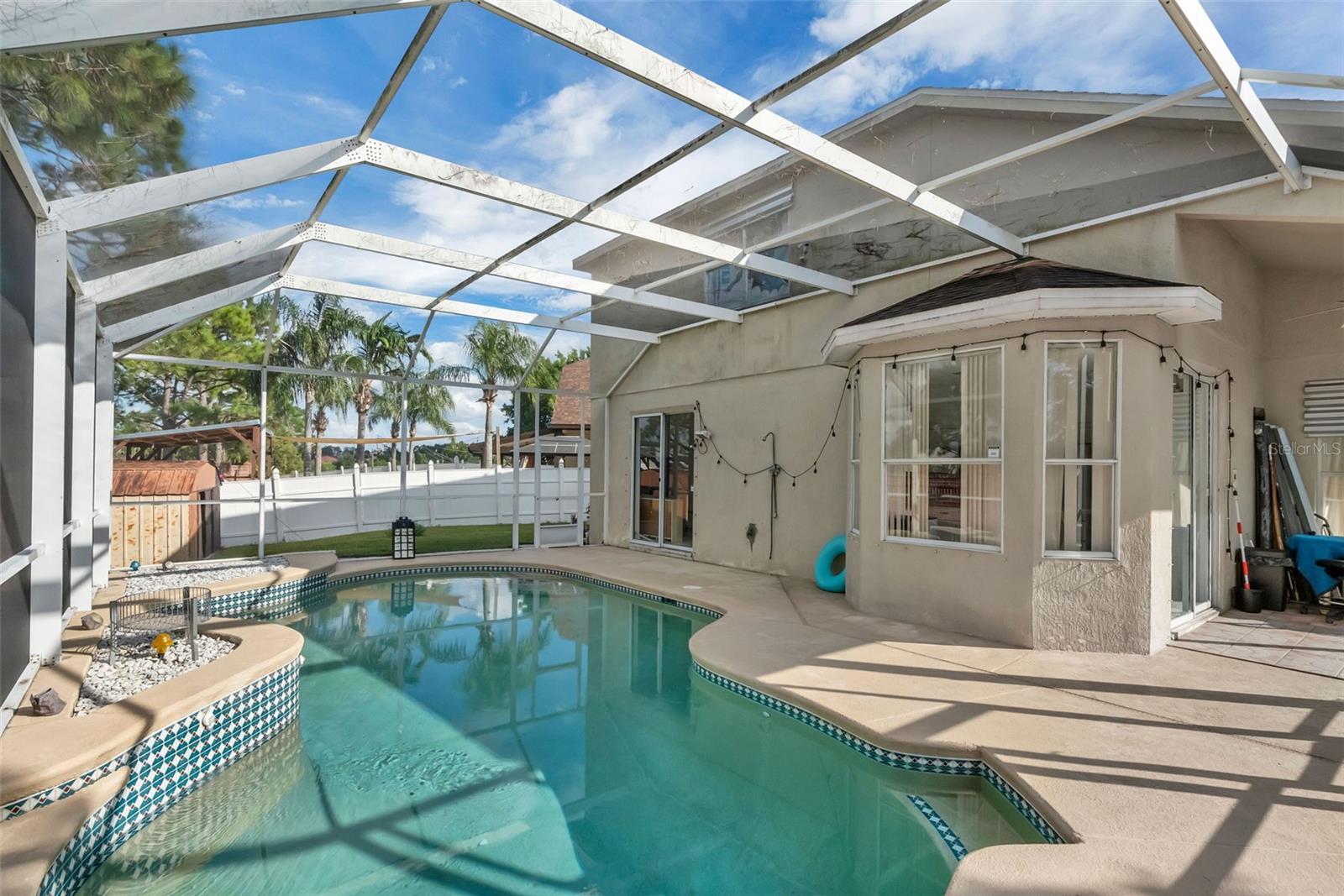 Beautiful pool home tucked away on a quiet cul-de-sac in the desirable Southchase area! Featuring 4 bedrooms and 3 full baths, this home offers a smart split floor plan with a guest bedroom and full bath downstairs. Upstairs, the spacious primary suite boasts a remodeled master bathroom and generous closet space, plus two additional bedrooms with a shared full bath. Enjoy your private screen-enclosed pool, fully fenced backyard, and extra-long driveway that fits up to 5 cars — perfect for family and guests. Conveniently located near great schools, major highways, and surrounded by plenty of grocery stores, restaurants, retail, and everyday conveniences. Just 10 minutes from Orlando International Airport (MCO) and 20–25 minutes to Disney, Universal, and SeaWorld! All in a beautiful community with a super low HOA!