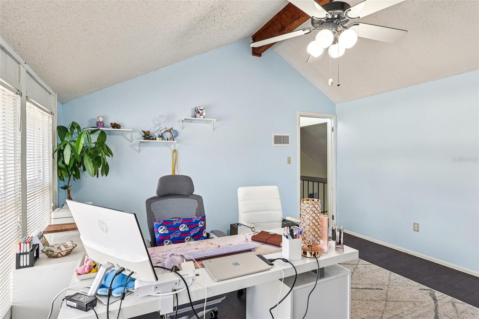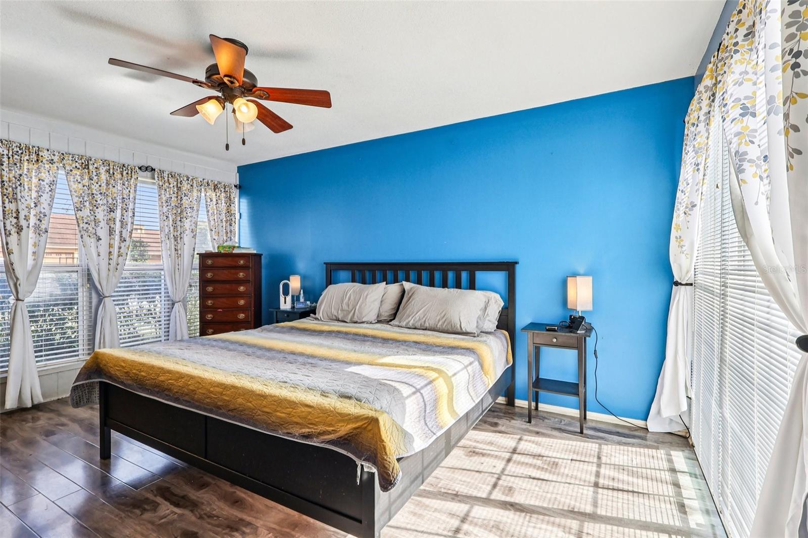 Well-maintained 4BR/3BA pool home in a highly desirable East Orlando location! This inviting residence features a first-floor primary suite, open floor plan, vaulted ceilings, and abundant natural light throughout. The formal dining room opens to a sunken living room with a wood-burning fireplace and sliding glass doors leading to the screened pool and patio—ideal for indoor/outdoor living and entertaining. The spacious kitchen offers Corian countertops and plenty of cabinetry with views of the pool area. The spacious primary suite is located on the main level and includes a walk-in closet, en-suite bath with walk-in shower, and private pool access. Upstairs are two additional bedrooms, a shared bath, and an open balcony overlooking the living area. Enjoy Florida living in the screen-enclosed patio with sparkling pool and a fully fenced in yard with gates, the vinyl privacy fence was partially replaced in 2024. Recent updates include a new HVAC (Nov 2024), updated electrical panel (2024), pool rescreen (2021), pool pump (2018), and exterior paint (2018). Prior improvements include roof (2017), septic & drainfield, and pool resurfacing. Prime location just minutes to UCF, Lockheed Martin, shopping, dining, and entertainment, with easy access to SR-417 and SR-408 for a convenient Central Florida commute or to explore all Orlando has to offer.