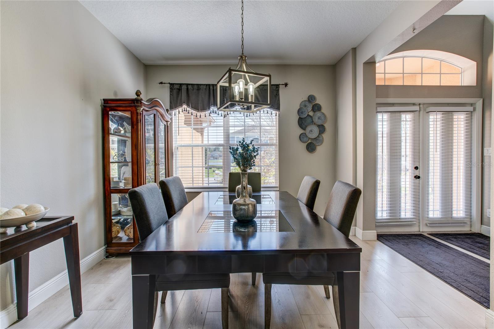 Welcome to 1551 Amaryllis Circle—an exceptional residence offering nearly 3,000 square feet of thoughtfully designed living space, where privacy, comfort, and convenience converge. Nestled on a quiet street within a peaceful community, this 5-bedroom, 3-bathroom home delivers the space and versatility today’s buyers’ demand. The open-concept floor plan with double sliding doors seamlessly connects the great room, spacious kitchen with counter space galore, a bar top and dining—perfectly suited for both everyday living and entertaining. A flexible first-floor front room provides the ideal setting for a home office, study, or additional living space. Everything is perfectly situated, creating a warm, connected atmosphere. Upstairs, there are three additional bedrooms and the generously sized primary bedroom retreat featuring — dual walk-in closets, a soaking tub, separate shower, and dual vanities. Flex room / Bedroom #5 is located on the first floor and features an adjacent full bath just off the great room and enclosed lanai. Step outside to an extended enclosed lanai, providing year-round enjoyment and additional living space. The backyard opens to a rare and desirable view featuring no rear neighbors—offering expansive green space and a peaceful tree-lined backdrop. Just minutes from Orlando’s premier shopping, dining, conveniences, and major freeways, this home presents a rare opportunity to enjoy both privacy and accessibility. Schedule your private showing today and experience the difference for yourself.