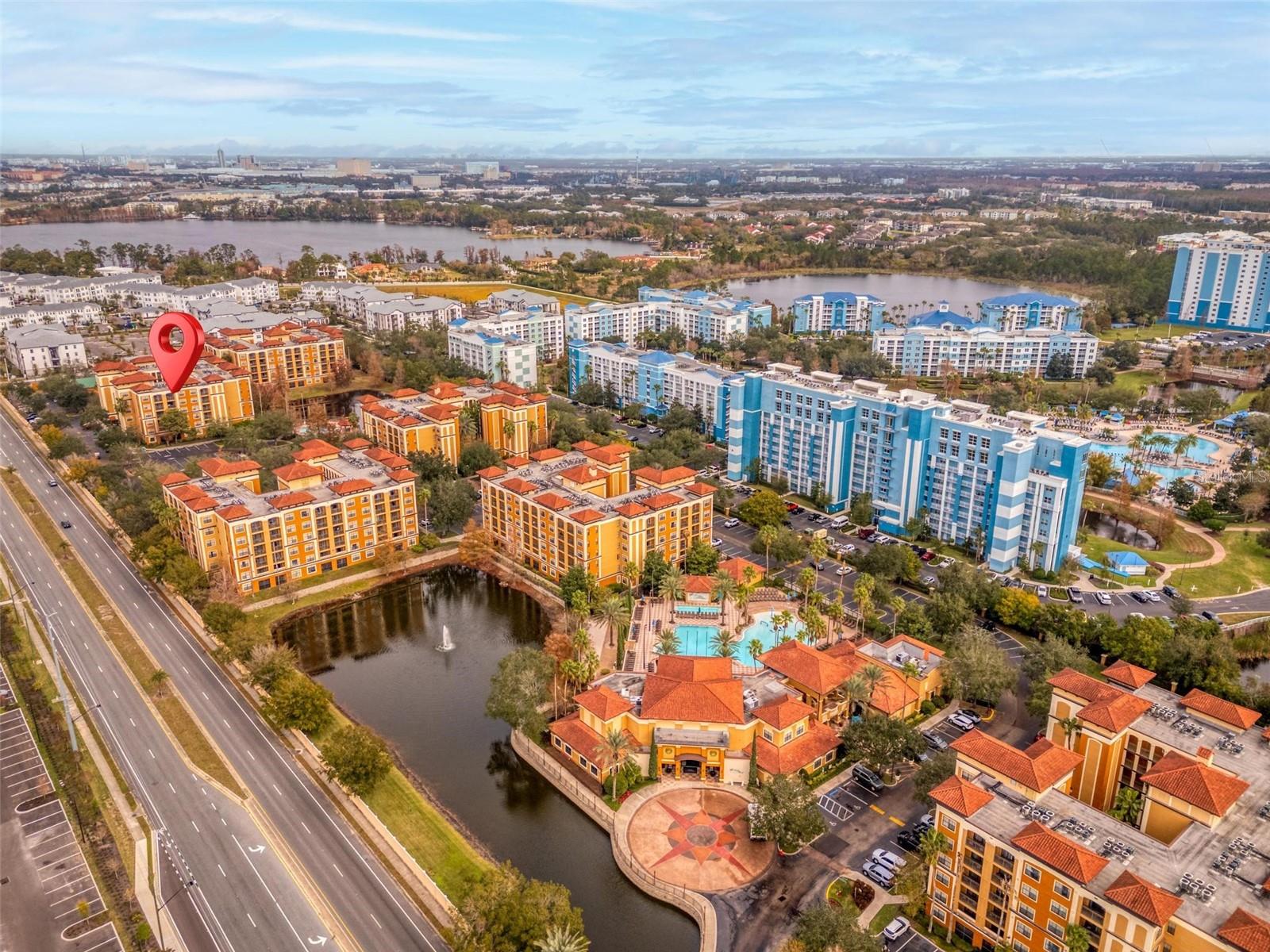 Wonderful opportunity to own a family vacation unit or a short-term income producing property, located in the heart of Orlando. There is on site management, or owners can choose third party management, or manage the property on their own. This is a well-equipped, charming 2bed/2bath condo on the 6th floor, which can comfortably accommodate up to 6 guests. It includes a full kitchen, a large master bedroom featuring the bathroom with jacuzzi tub and walk-in shower. All guests have access to the facilities, including concierge services, pools, bar and grill, water playground, fitness center, free wi-fi at public areas, game room, regular shuttle service to nearby areas, on-site dining options. Only a few minutes drive to theme parks, shopping, diverse dining, access to main highways and a short drive to the airport. HOA fees include all utilities! Enjoy the 20 acres of the beautiful tropical landscaped grounds and all great amenities this property is offering.