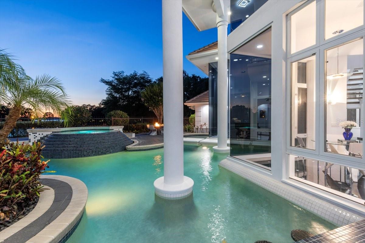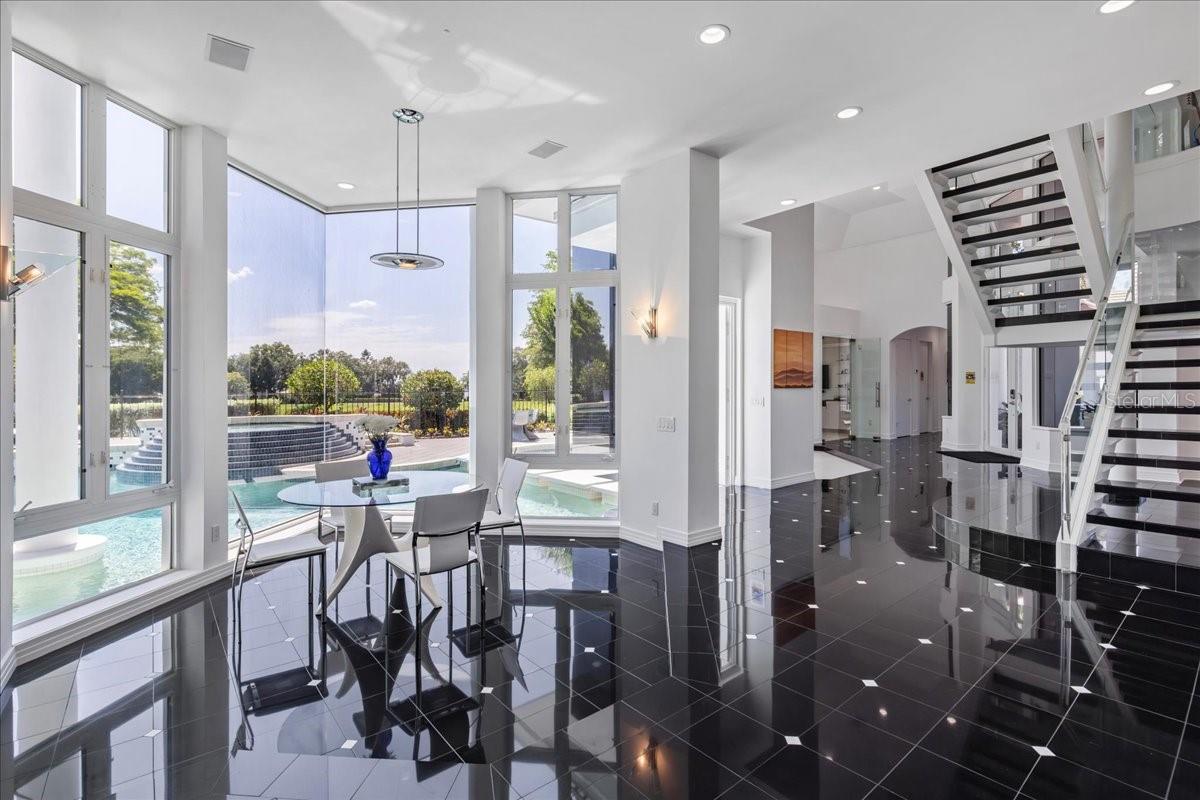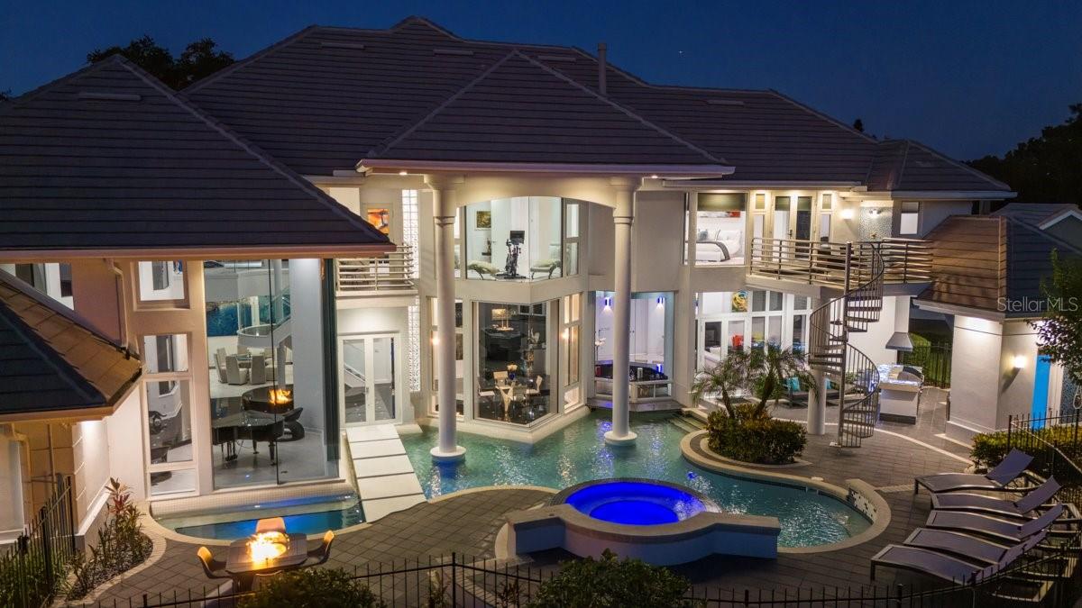 Welcome to a masterpiece of architectural excellence crafted by renowned builder Ray Coudriet and architect Tom Price, where quality construction meets luxurious living, and every detail has been meticulously crafted to elevate your living experience . Nestled within the sought after guard-gated community of Cypress Point, and bathed in natural light streaming through the multitude of picture windows, this home offers a serene sanctuary amidst panoramic views of the tranquil pond and breathtaking sunsets. Step inside and be greeted by the seamless fusion of modern design and timeless elegance. The grand foyer welcomes you with gleaming granite and hardwood floors, illuminated by LED cove lighting, leading you into the heart of the home. Unwind in the home theatre or stay productive in the home office, featuring dual glass door entry for privacy. With an entertainment-focused layout and modern amenities throughout, this home is designed for luxurious living at its finest. Ascend the modern open-air staircase and discover the master suite, a true haven of relaxation. Enjoy morning workouts in the exercise area overlooking the peaceful pond before retreating to your private balcony to savor a cup of coffee. The gourmet kitchen is a culinary masterpiece, featuring modern European cabinets and top-of-the-line stainless steel appliances. A large home office offers a tranquil workspace, while the spacious laundry room boasts a utility shower for added convenience. Entertain in style with floor-to-ceiling glass windows that showcase breathtaking views of the tranquil pond and the Butler Chain of Lakes. Indulge in the ultimate relaxation with a built-in wine cellar, perfect for storing your favorite vintages, and a resort-style pool with a swim up bar seamlessly integrated into the home's design. Enjoy outdoor entertaining in the summer kitchen, complete with a backlit Aqua Blue Agate surface and automated pool controls. Car enthusiasts will delight in the car lover's dream garage, with space for up to five cars (when using lifts), featuring two hydraulic car lifts, glass garage doors, and air conditioning for comfort. With its thoughtful design and unparalleled amenities, this home embodies the epitome of luxurious living. Don't miss the opportunity to make this exquisite residence your own and experience the ultimate in comfort and sophistication. Arrange your private showing today!