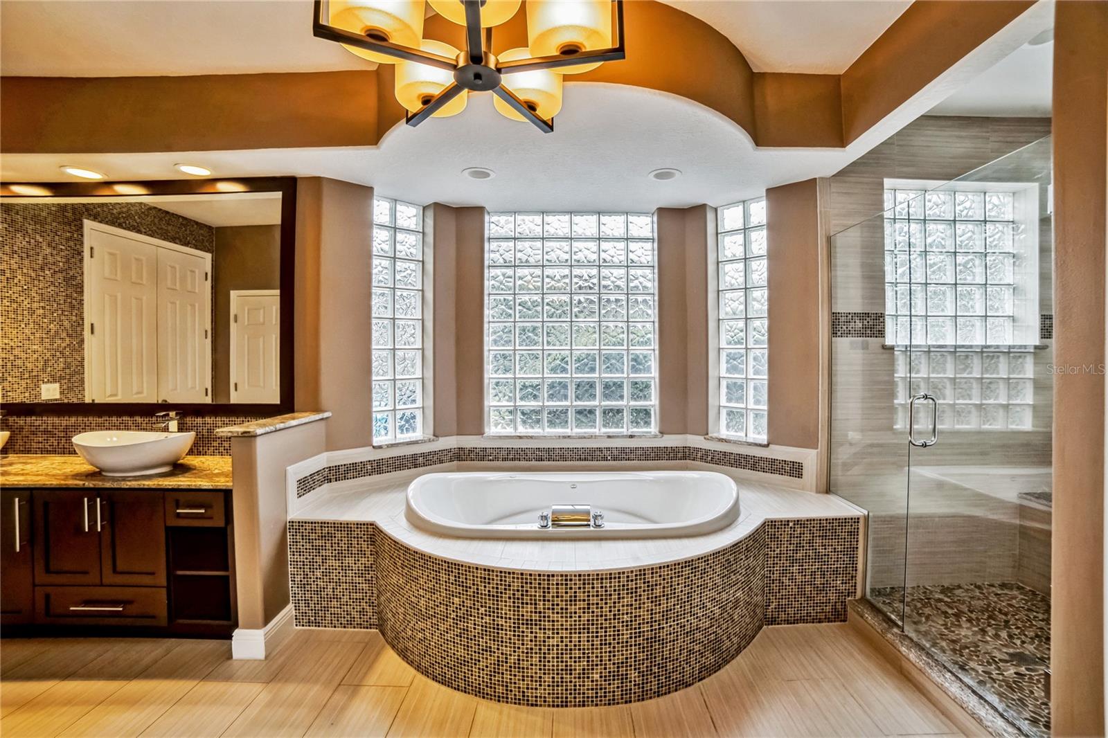 Motivated Seller! Nestled in the highly sought-after, exclusive gated golf community of Palma Vista, this meticulously maintained 4-bedroom, 3.5-bathroom home offers 3,356 sq. ft. of luxurious, carpet-free living space. Featuring soaring ceilings and elegant plantation shutters throughout, the open-concept design creates a seamless flow between the living, dining, and kitchen areas—making it the perfect setting for both everyday living and entertaining. The spacious master suite serves as a serene retreat, offering ample space to unwind. The upgraded master bathroom boasts a dual vanity with modern sinks, a deep soaking tub, and a separate glass-enclosed shower, providing the perfect combination of relaxation and function. A generous walk-in closet offers abundant storage, keeping your personal items organized and easily accessible. Conveniently located on the main floor, the downstairs suite ensures privacy and comfort, making it ideal for guests or in-laws. The adjacent upgraded bathroom features stylish finishes and contemporary fixtures. On the second floor, a versatile loft area awaits, perfect for a cozy sitting space, playroom, or home office—offering additional room for leisure or productivity. Nearby, two spacious bedrooms share a beautifully appointed Jack and Jill bathroom. Step outside to discover a custom-built pool and spa, complemented by a screened enclosure for year-round enjoyment. The expansive garden area is perfect for family gatherings or can easily be transformed into a fun-filled playground, offering endless opportunities for relaxation and outdoor entertainment. Conveniently located just minutes away from shopping, dining, and major highways.