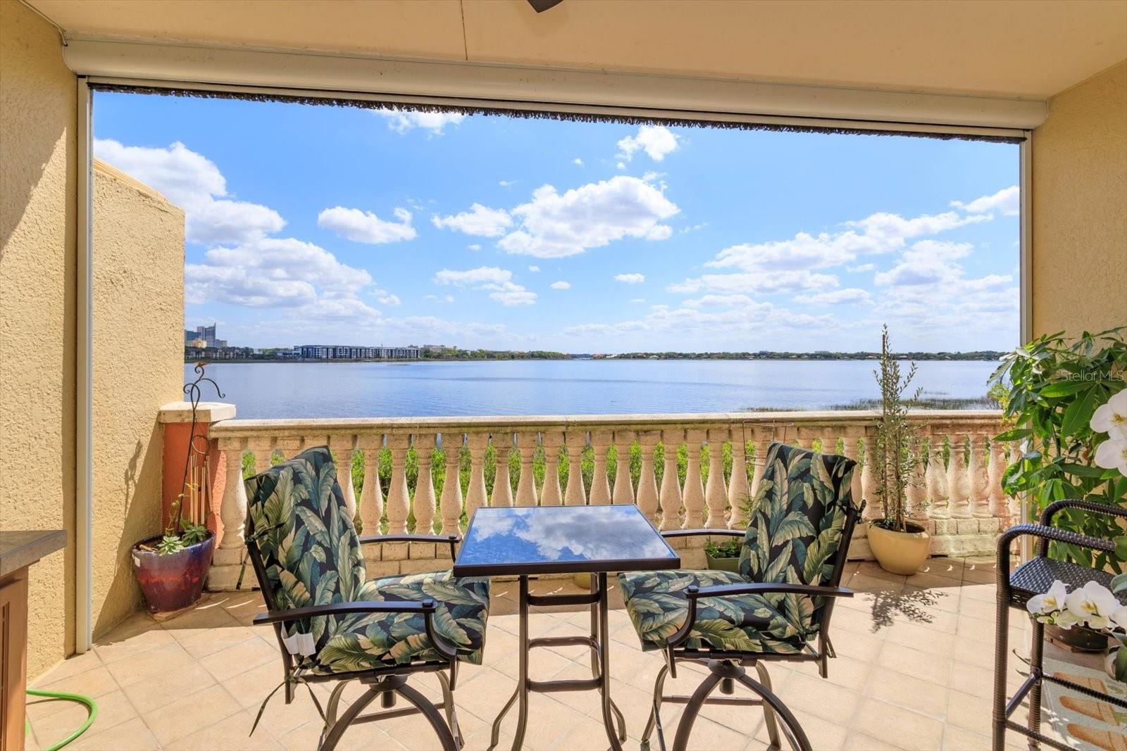 Stunning views of Big Sand Lake from this luxury Oversized 2 bedroom condo in the heart of Dr. Phillips! This meticulously maintained condo is located behind the 24 hour manned gates of Vizcaya putting you just minutes from every restaurant, shopping, the attractions and more. The Carly model is the largest two bedroom option offering you spectacular views and nightly fireworks. Large format diamond pattern Travertine floors throughout the whole condo. Brand New Energy Efficient Sliding Glass Doors in family room AND master bedroom. Deluxe remote control electrical shades throughout. This unique first floor unit offers you the carefree convenience of condo living without having to ever wait for an elevator. Vizcaya condos feature amazing high ceilings throughout along with crown molding and tray ceilings. In addition ONLY the first floor units enjoy an extended size patio with decorative Mediterranean stone balustrades overlooking the water. Patio has electric retractable screen to enjoy the outdoors year-round. Reserved parking space in the underground garage along with a personal climate controlled storage unit. Come see!