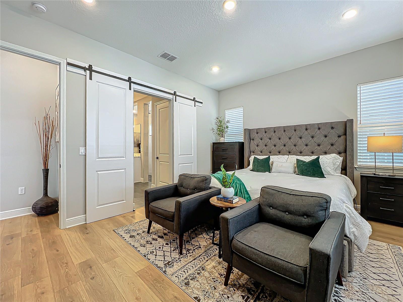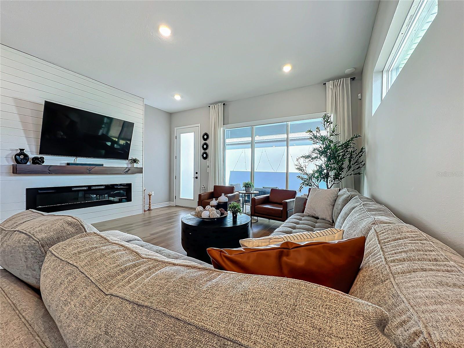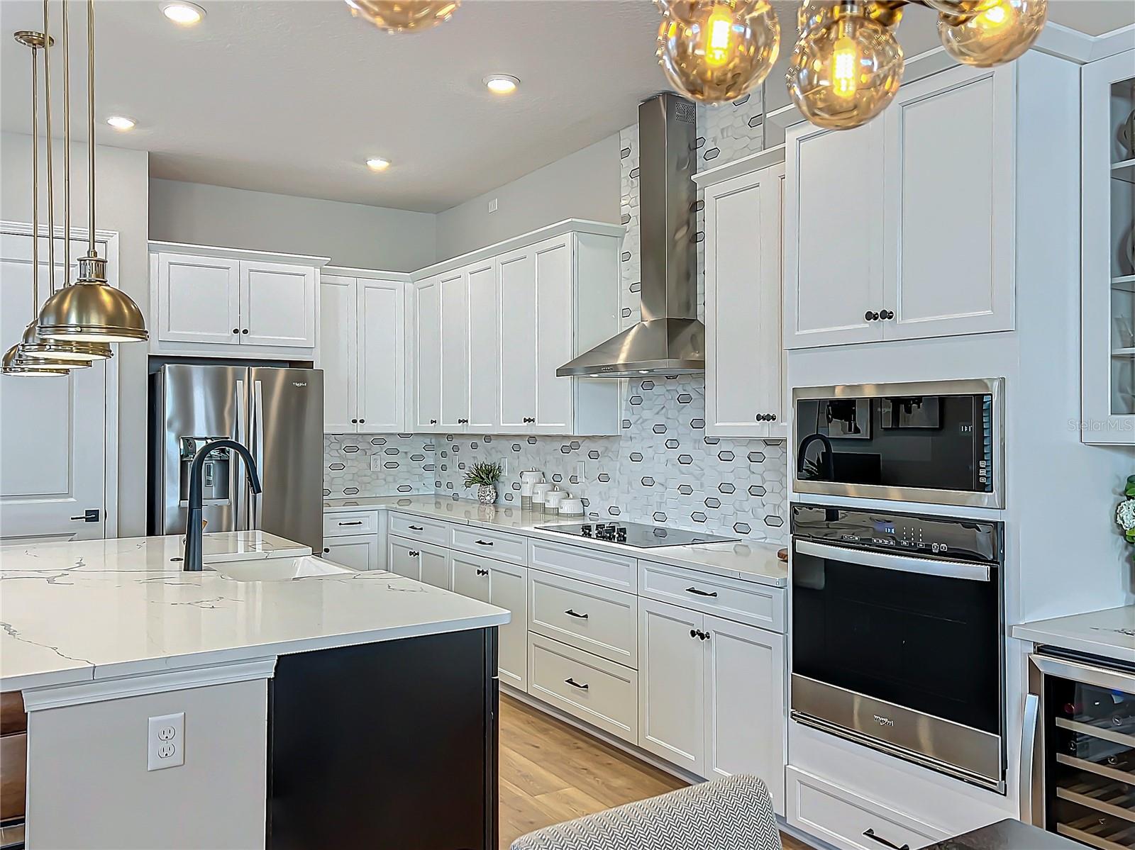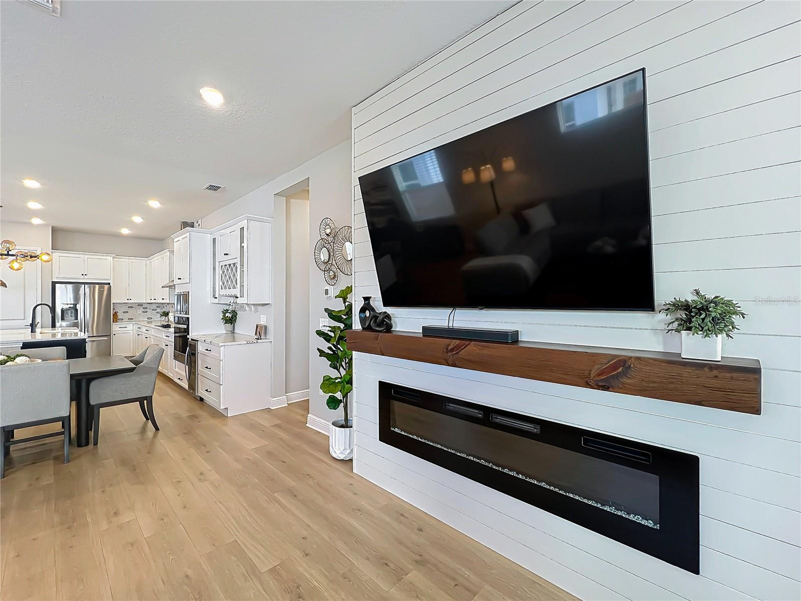 Back on the market! Step into this beautifully upgraded Tanner model by Craft Homes, a truly one-of-a-kind design that combines modern elegance with functionality. The open-concept layout, with laminate flooring throughout, offers an uninterrupted view of the stunning gourmet kitchen. Featuring sleek cabinetry, a porcelain farm sink, stainless steel appliances—including a built-in microwave and oven—quartz countertops, a spacious island, and a dry bar with a wine fridge, this kitchen is a chef's dream. The expansive living area boasts a custom electric fireplace, framed by a stylish mantel. It is bathed in natural light, with a patio door that opens up to a massive paved lanai, perfect for entertaining. The luxurious primary bedroom is designed with rustic charm, featuring barn doors leading to a meticulously designed en-suite bathroom. Here, you'll find an oversized shower and two master closets that conveniently lead to the laundry room. On the opposite side of the home, two generously sized secondary bedrooms and a beautifully appointed bathroom await. Additional features include a premium lot, 12 12-foot ceilings, Energy Star certification, pre-wiring for surround sound, and ample storage throughout. This home is located in the highly sought-after Laureate Park community in Lake Nona (Medical City). The community offers over 44 miles of walking, jogging, and biking trails. Residents can enjoy top-notch amenities, including the Aquatic Center, Fitness Center, and nearby restaurants—just a short walk from their front door!