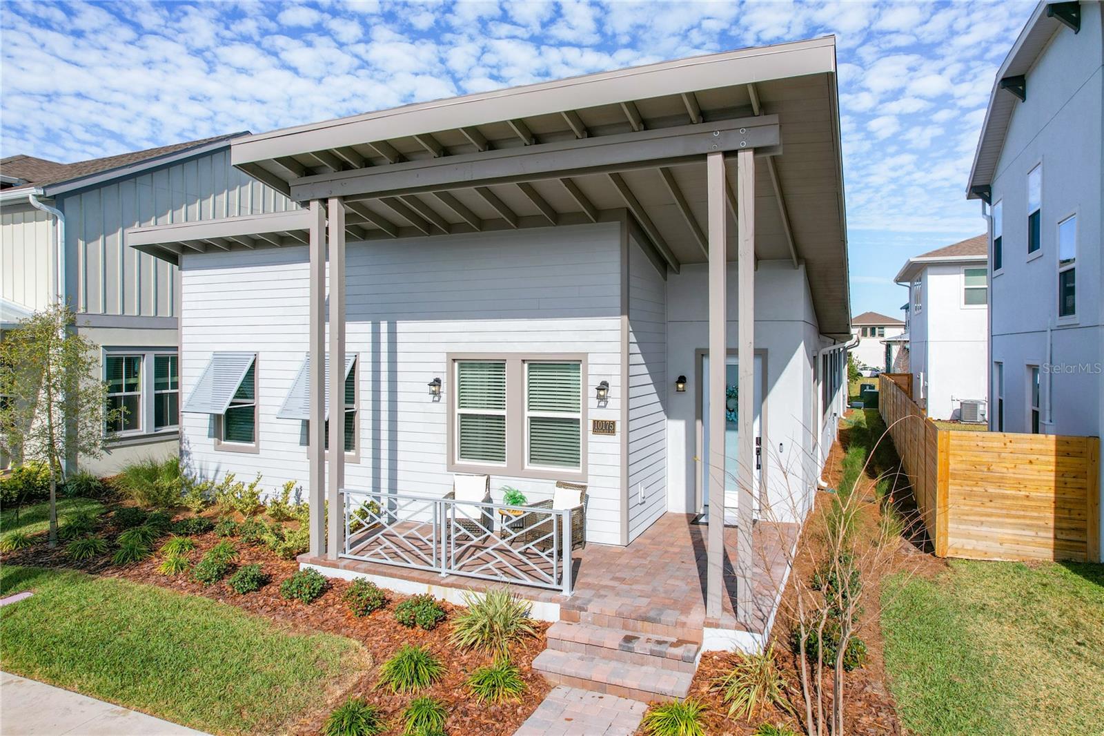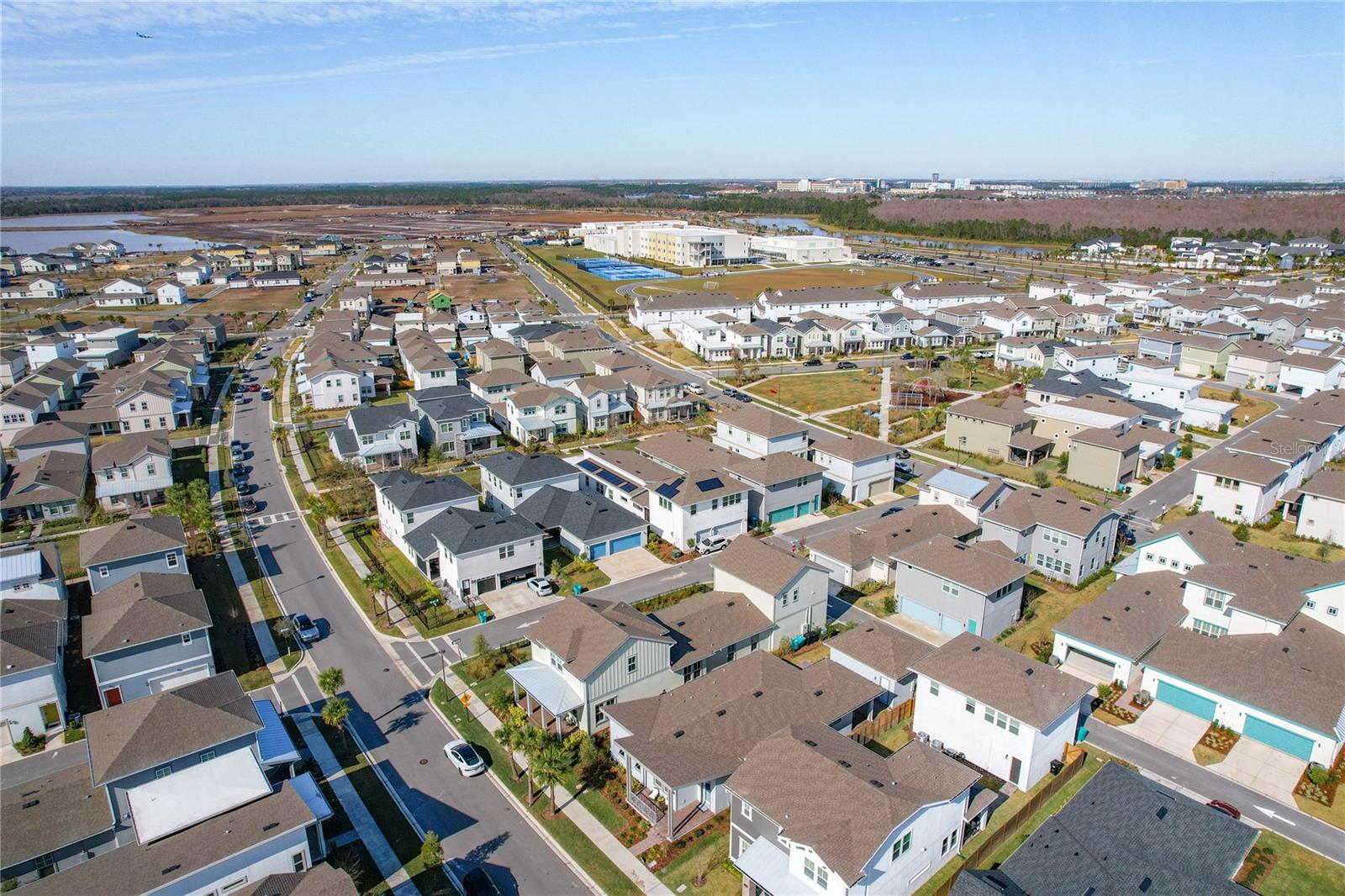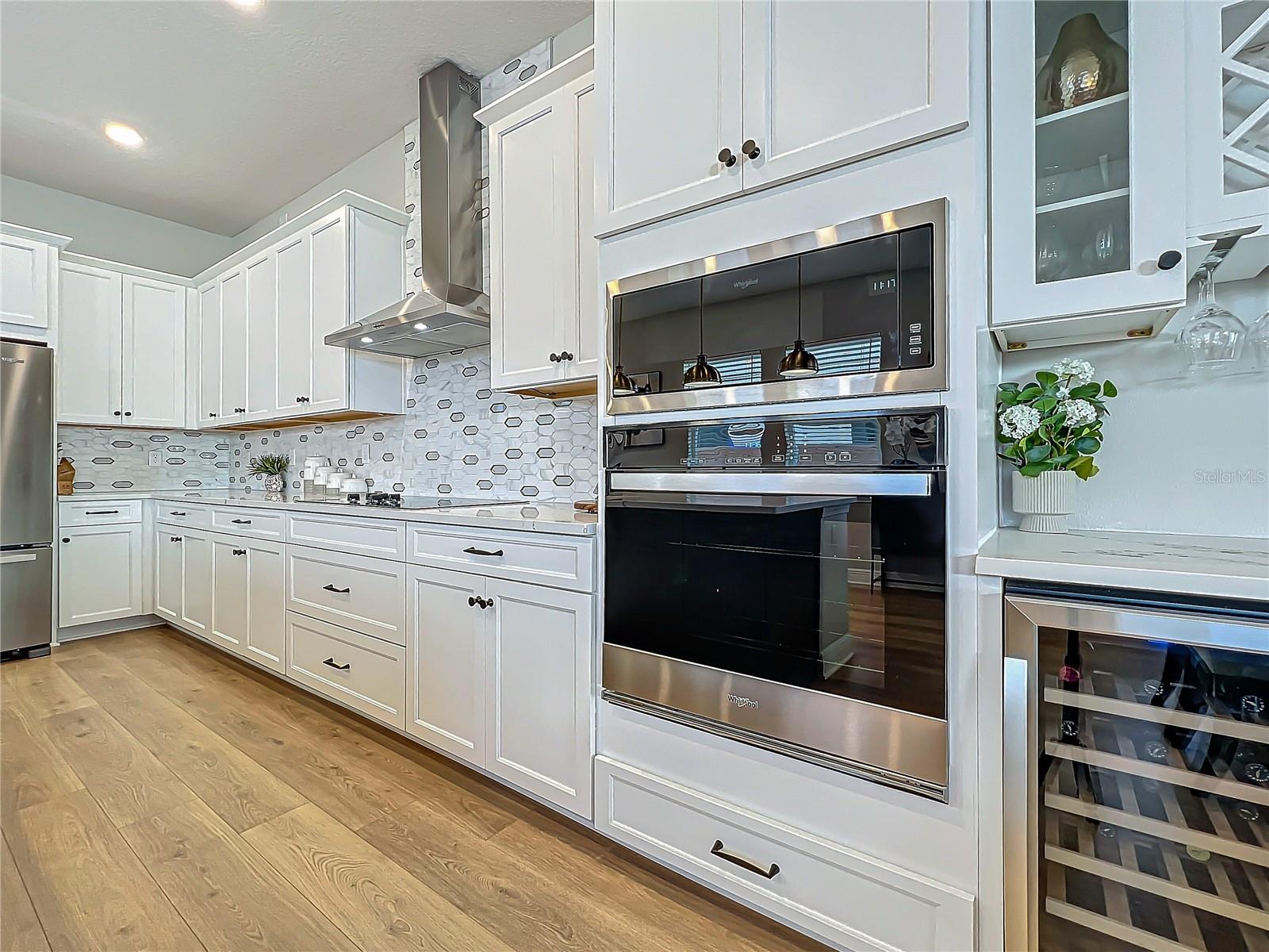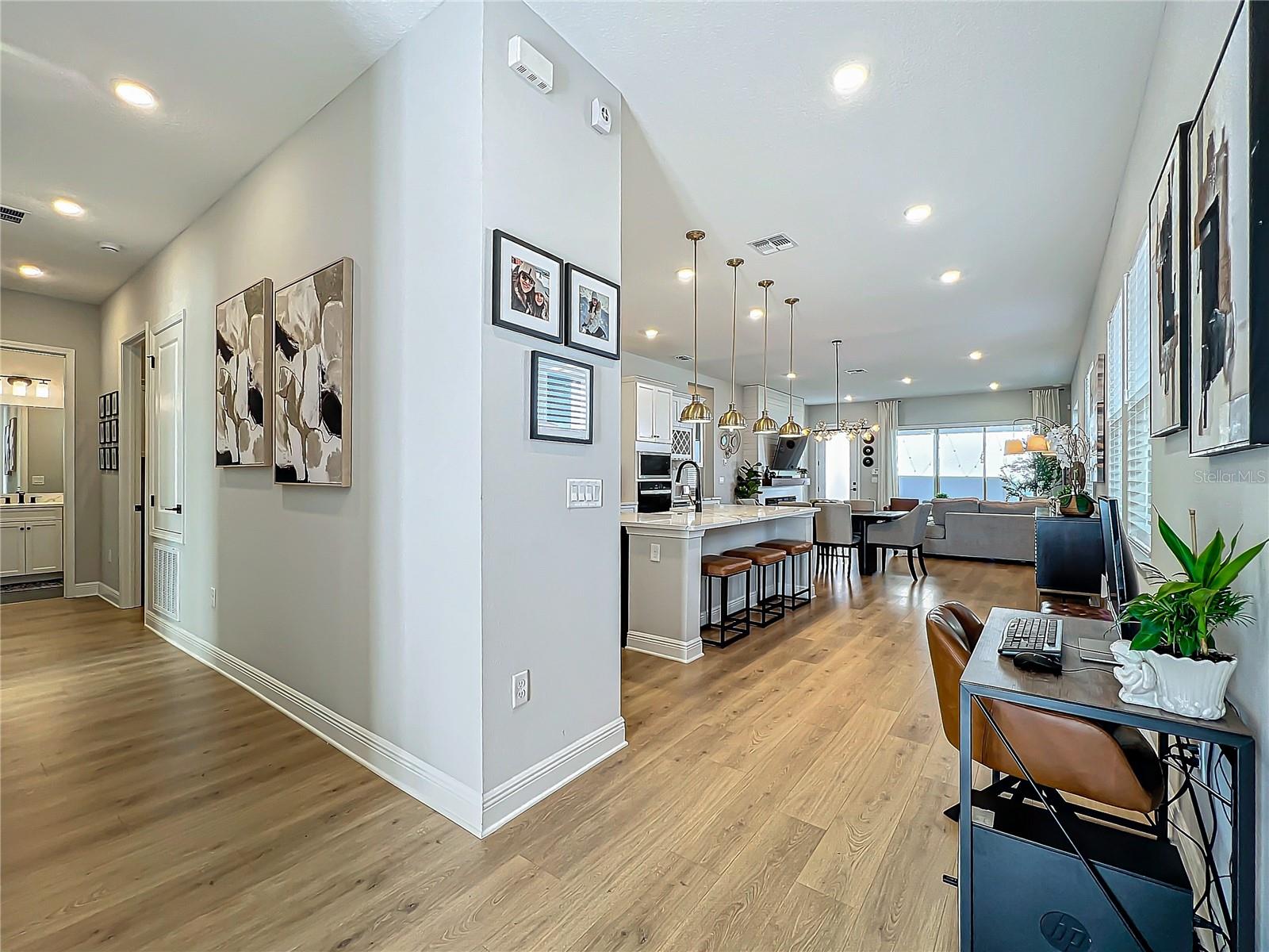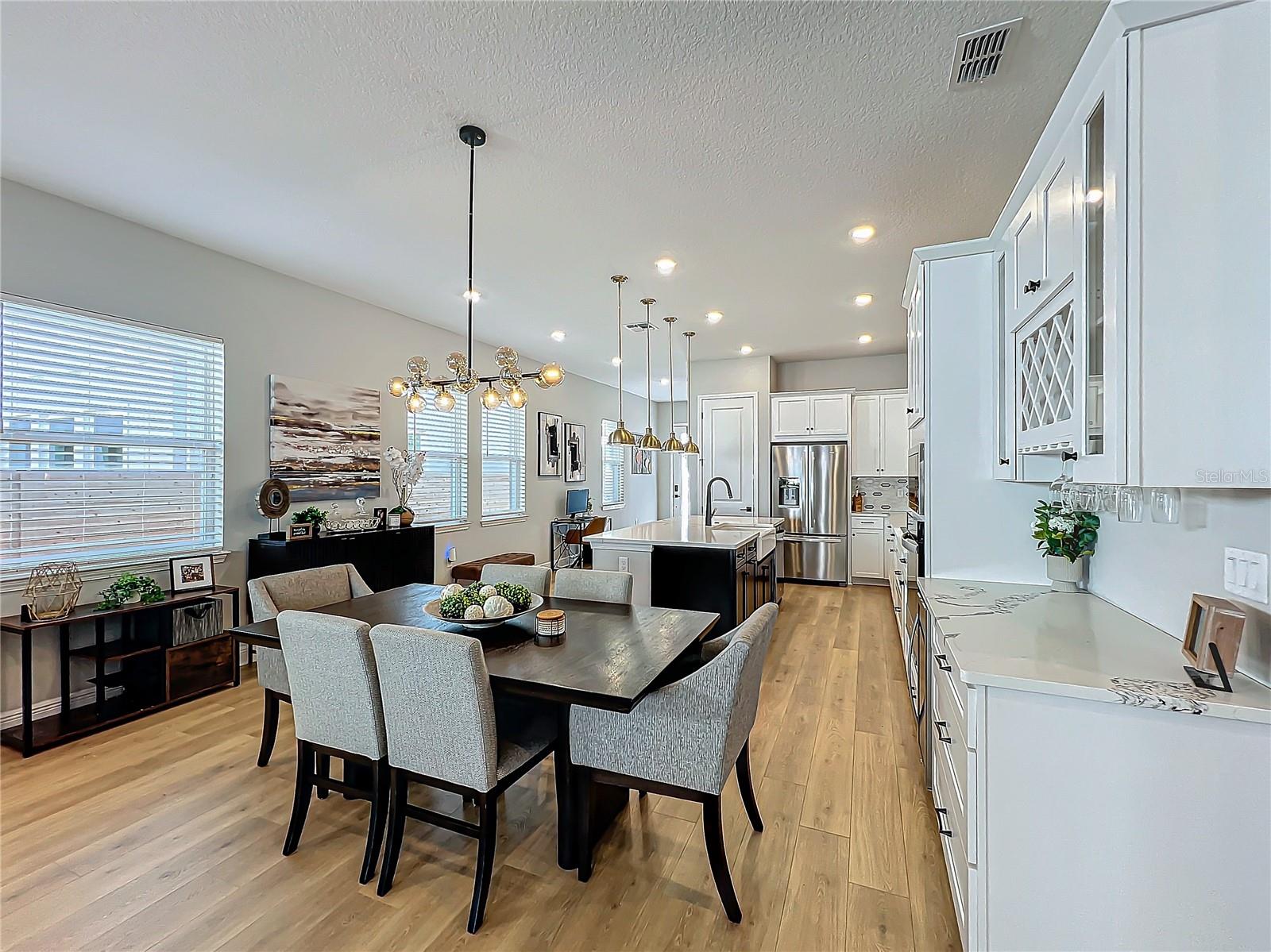 Back on the market! Step into this beautifully upgraded Tanner model by Craft Homes, a truly one-of-a-kind design that combines modern elegance with functionality. The open-concept layout, with laminate flooring throughout, offers an uninterrupted view of the stunning gourmet kitchen. Featuring sleek cabinetry, a porcelain farm sink, stainless steel appliances—including a built-in microwave and oven—quartz countertops, a spacious island, and a dry bar with a wine fridge, this kitchen is a chef's dream. The expansive living area boasts a custom electric fireplace, framed by a stylish mantel. It is bathed in natural light, with a patio door that opens up to a massive paved lanai, perfect for entertaining. The luxurious primary bedroom is designed with rustic charm, featuring barn doors leading to a meticulously designed en-suite bathroom. Here, you'll find an oversized shower and two master closets that conveniently lead to the laundry room. On the opposite side of the home, two generously sized secondary bedrooms and a beautifully appointed bathroom await. Additional features include a premium lot, 12 12-foot ceilings, Energy Star certification, pre-wiring for surround sound, and ample storage throughout. This home is located in the highly sought-after Laureate Park community in Lake Nona (Medical City). The community offers over 44 miles of walking, jogging, and biking trails. Residents can enjoy top-notch amenities, including the Aquatic Center, Fitness Center, and nearby restaurants—just a short walk from their front door!
