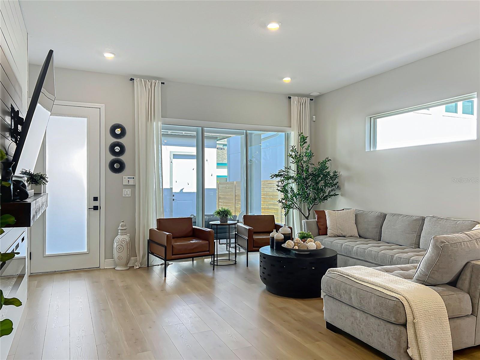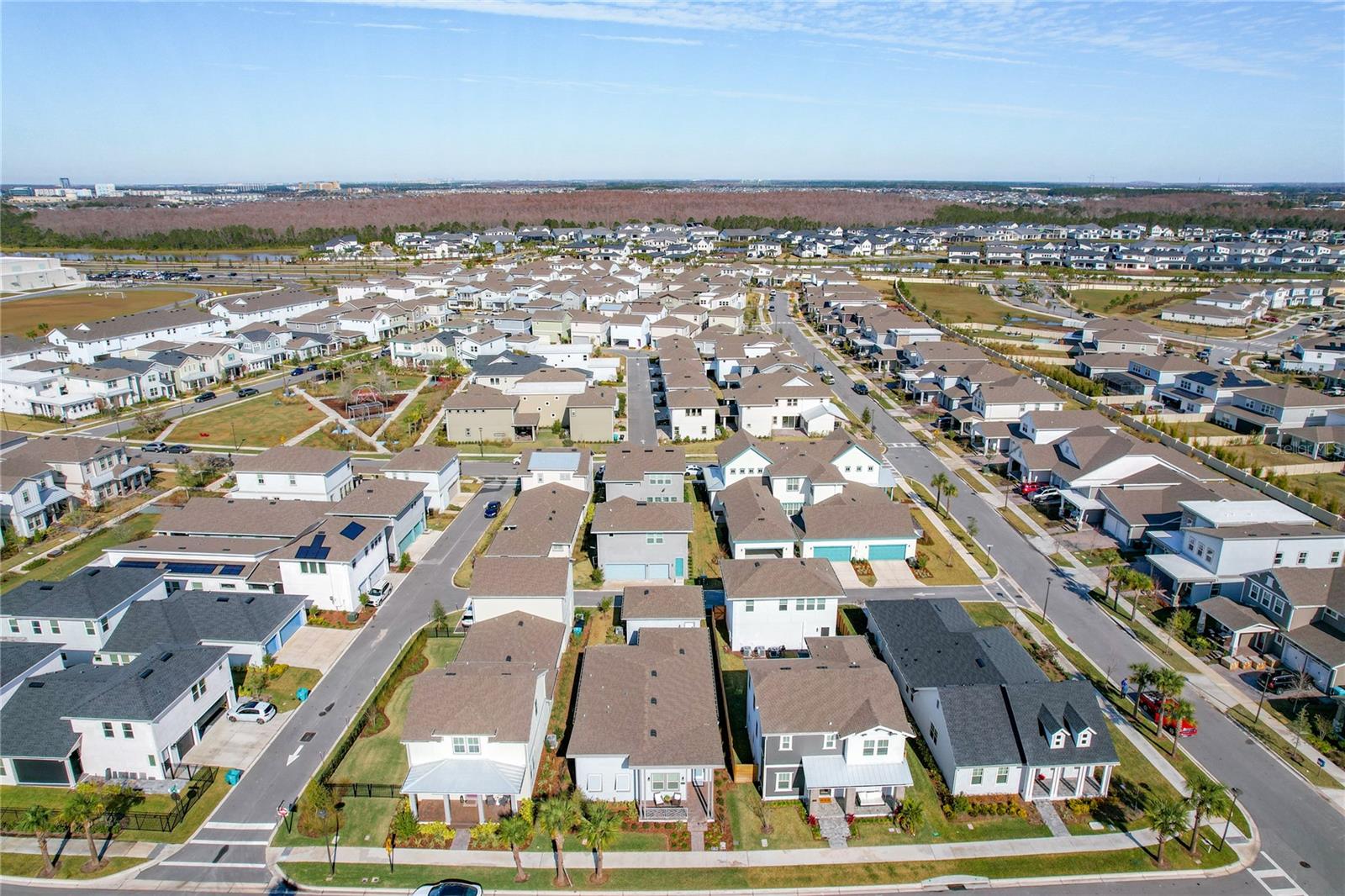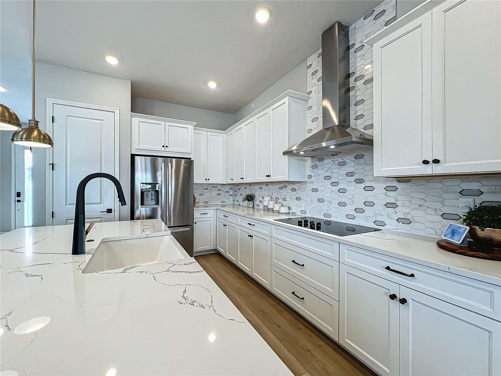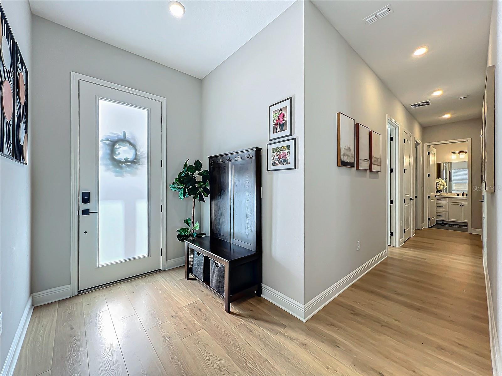 Back on the market! Step into this beautifully upgraded Tanner model by Craft Homes, a truly one-of-a-kind design that combines modern elegance with functionality. The open-concept layout, with laminate flooring throughout, offers an uninterrupted view of the stunning gourmet kitchen. Featuring sleek cabinetry, a porcelain farm sink, stainless steel appliances—including a built-in microwave and oven—quartz countertops, a spacious island, and a dry bar with a wine fridge, this kitchen is a chef's dream. The expansive living area boasts a custom electric fireplace, framed by a stylish mantel. It is bathed in natural light, with a patio door that opens up to a massive paved lanai, perfect for entertaining. The luxurious primary bedroom is designed with rustic charm, featuring barn doors leading to a meticulously designed en-suite bathroom. Here, you'll find an oversized shower and two master closets that conveniently lead to the laundry room. On the opposite side of the home, two generously sized secondary bedrooms and a beautifully appointed bathroom await. Additional features include a premium lot, 12 12-foot ceilings, Energy Star certification, pre-wiring for surround sound, and ample storage throughout. This home is located in the highly sought-after Laureate Park community in Lake Nona (Medical City). The community offers over 44 miles of walking, jogging, and biking trails. Residents can enjoy top-notch amenities, including the Aquatic Center, Fitness Center, and nearby restaurants—just a short walk from their front door!