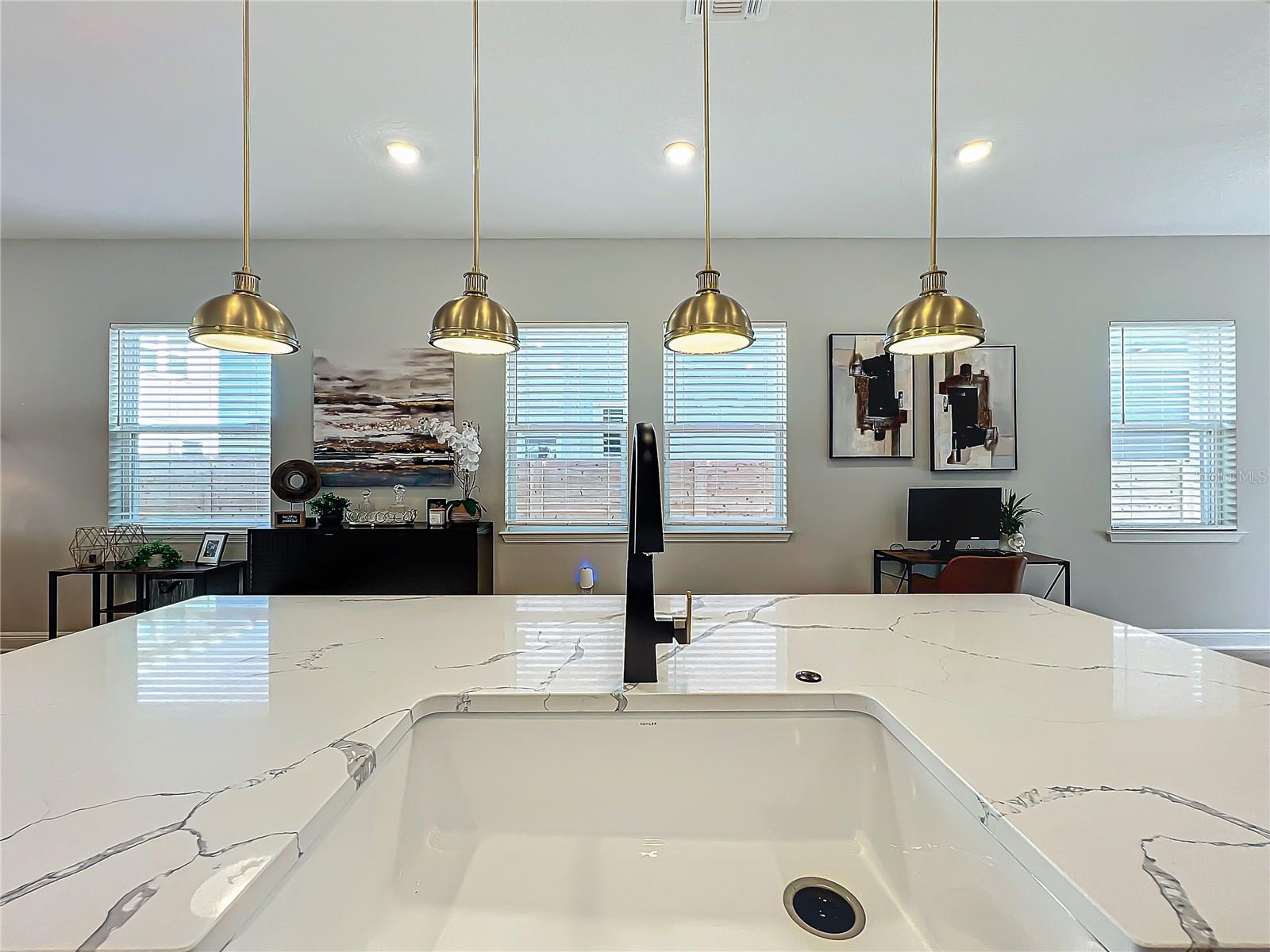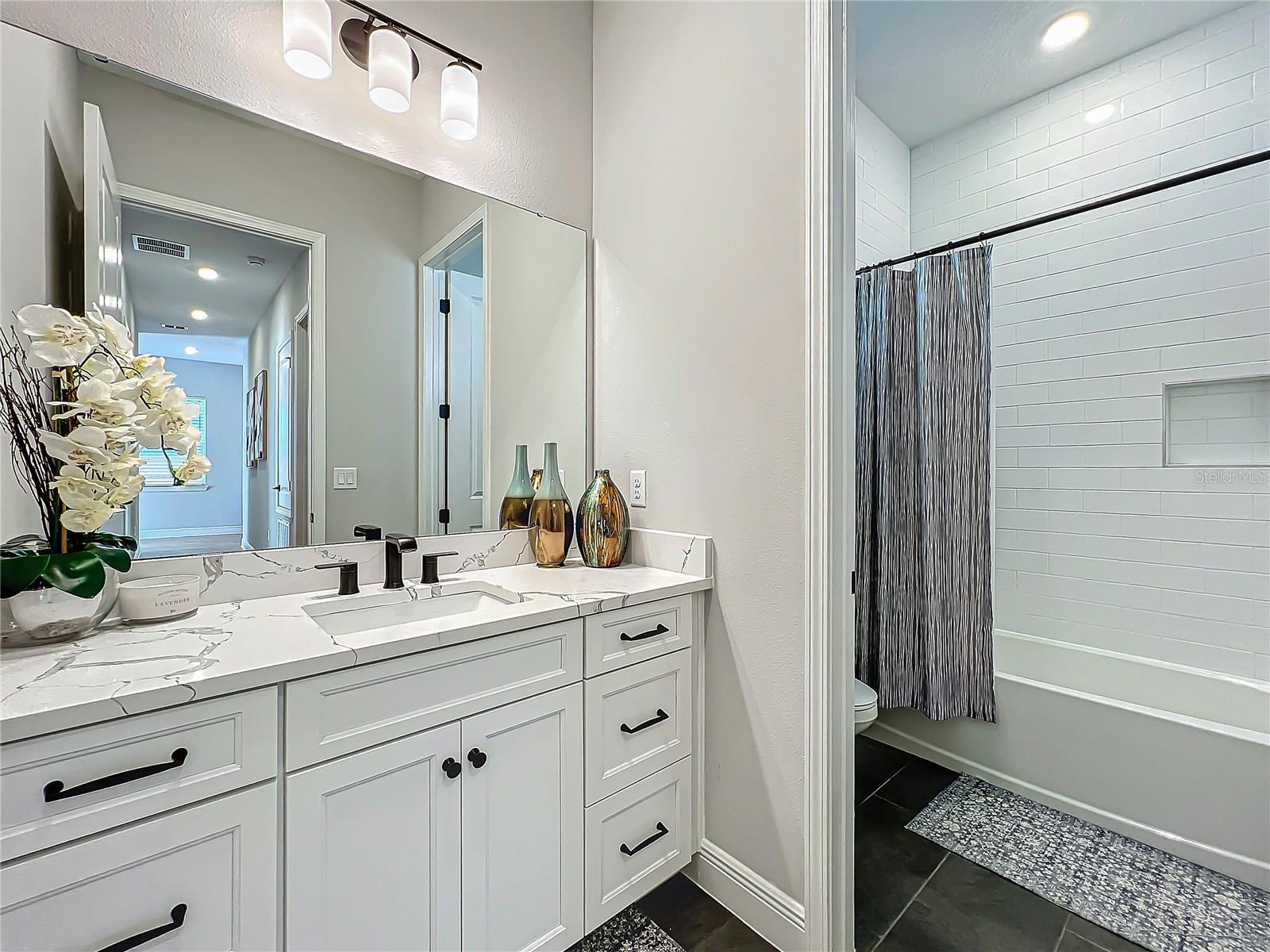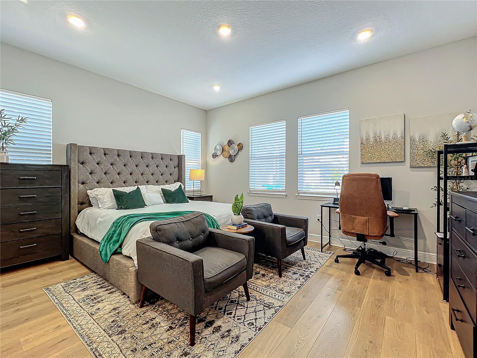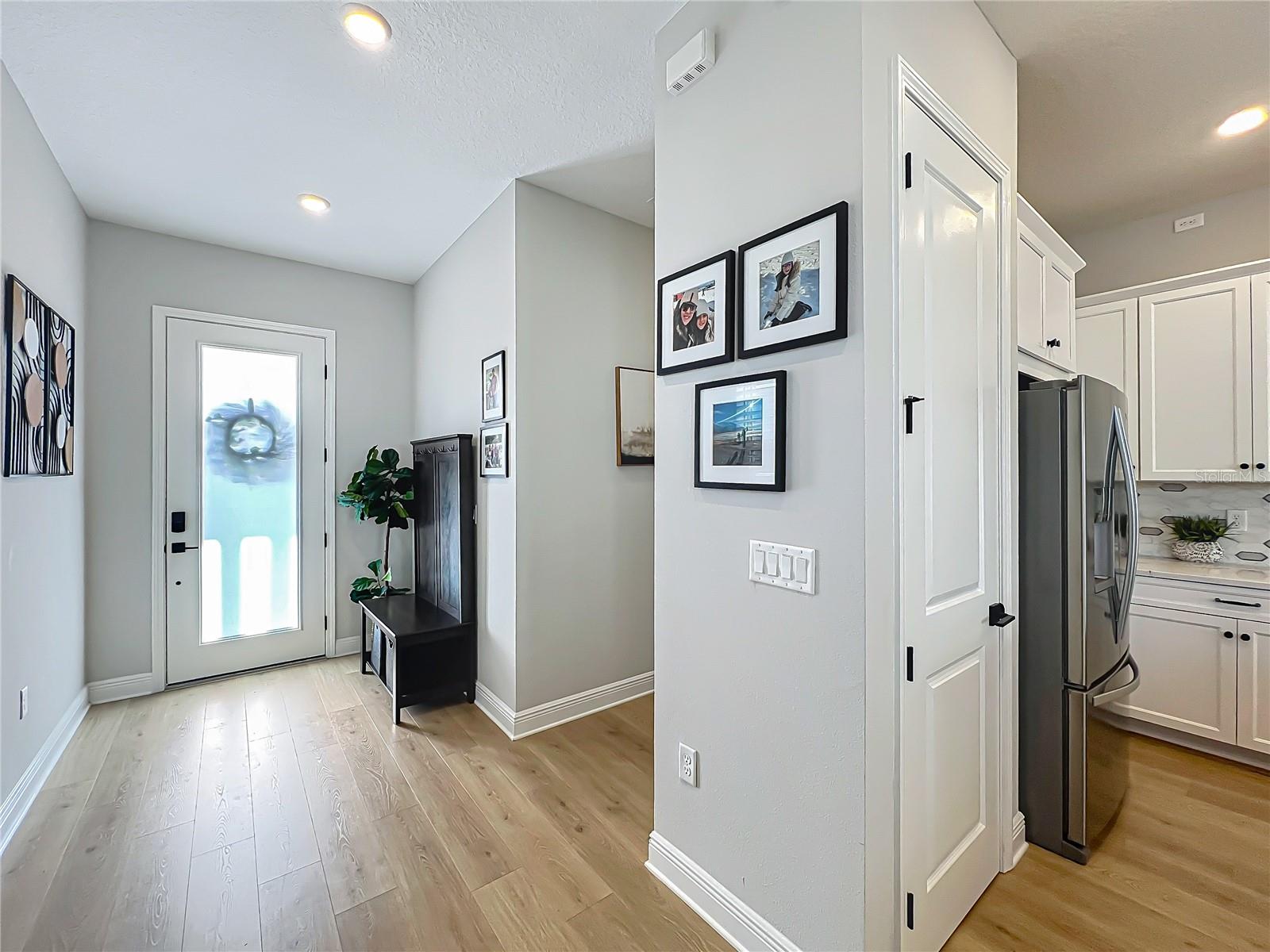 Back on the market! Step into this beautifully upgraded Tanner model by Craft Homes, a truly one-of-a-kind design that combines modern elegance with functionality. The open-concept layout, with laminate flooring throughout, offers an uninterrupted view of the stunning gourmet kitchen. Featuring sleek cabinetry, a porcelain farm sink, stainless steel appliances—including a built-in microwave and oven—quartz countertops, a spacious island, and a dry bar with a wine fridge, this kitchen is a chef's dream. The expansive living area boasts a custom electric fireplace, framed by a stylish mantel. It is bathed in natural light, with a patio door that opens up to a massive paved lanai, perfect for entertaining. The luxurious primary bedroom is designed with rustic charm, featuring barn doors leading to a meticulously designed en-suite bathroom. Here, you'll find an oversized shower and two master closets that conveniently lead to the laundry room. On the opposite side of the home, two generously sized secondary bedrooms and a beautifully appointed bathroom await. Additional features include a premium lot, 12 12-foot ceilings, Energy Star certification, pre-wiring for surround sound, and ample storage throughout. This home is located in the highly sought-after Laureate Park community in Lake Nona (Medical City). The community offers over 44 miles of walking, jogging, and biking trails. Residents can enjoy top-notch amenities, including the Aquatic Center, Fitness Center, and nearby restaurants—just a short walk from their front door!