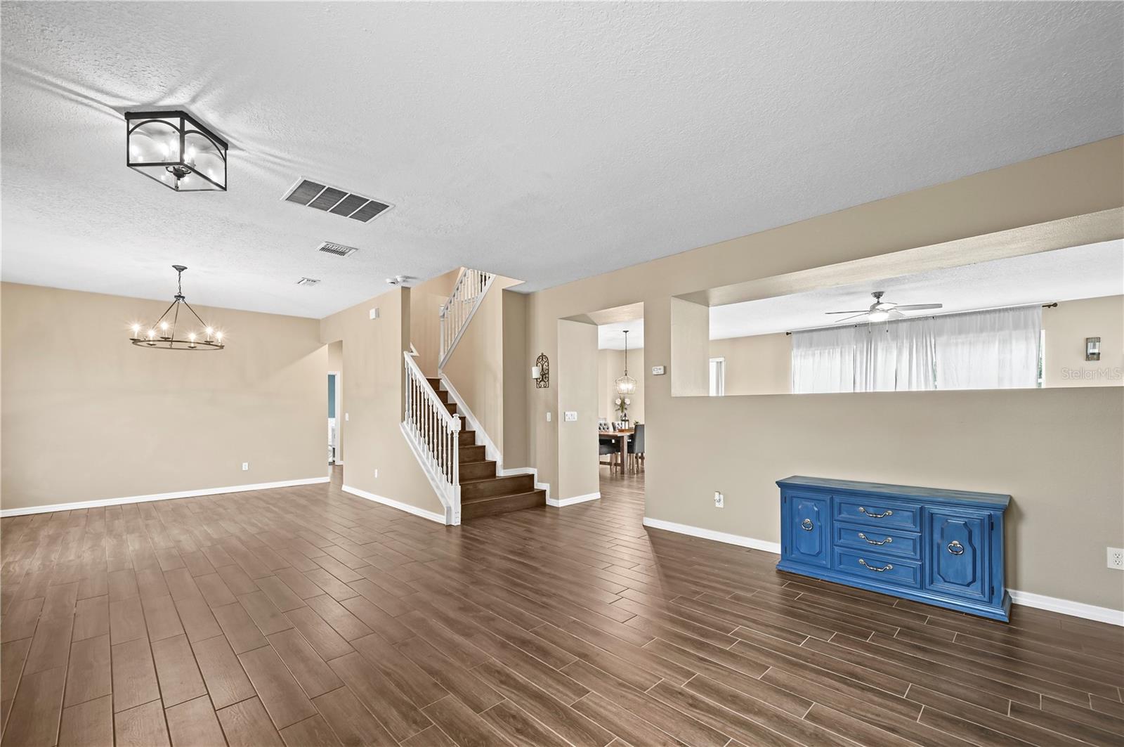 This stunning home is nestled in the highly sought-after Avalon Park community. Offering convenient access to a variety of amenities such as multiple swimming pools, playgrounds, scenic trails, and a dog park. As you step inside the spacious five-bedroom two-and-a-half-bathroom home, you are greeted with high ceilings and an open floor plan that seamlessly connects the living, dining, and kitchen areas, creating a perfect flow for everyday living. The heart of the home is the oversized kitchen, complete with a large island overlooking the living room. With abundant cabinetry and natural light, this kitchen is both functional and inviting. The spacious laundry room, conveniently located just off the kitchen, offers plenty of storage and convenient access to the two-car garage. Additionally, the first floor includes a well-placed half bathroom and a guest bedroom, perfect for visitors or flexible use. Upstairs, you'll find an additional large family room, the primary bedroom and three generously sized bedrooms. The large primary bedroom includes French doors, a tray ceiling, and a large master suite with an en-suite bath and walk in closet, offering a private retreat to relax and unwind. Don't miss the opportunity to make this beauty your own!