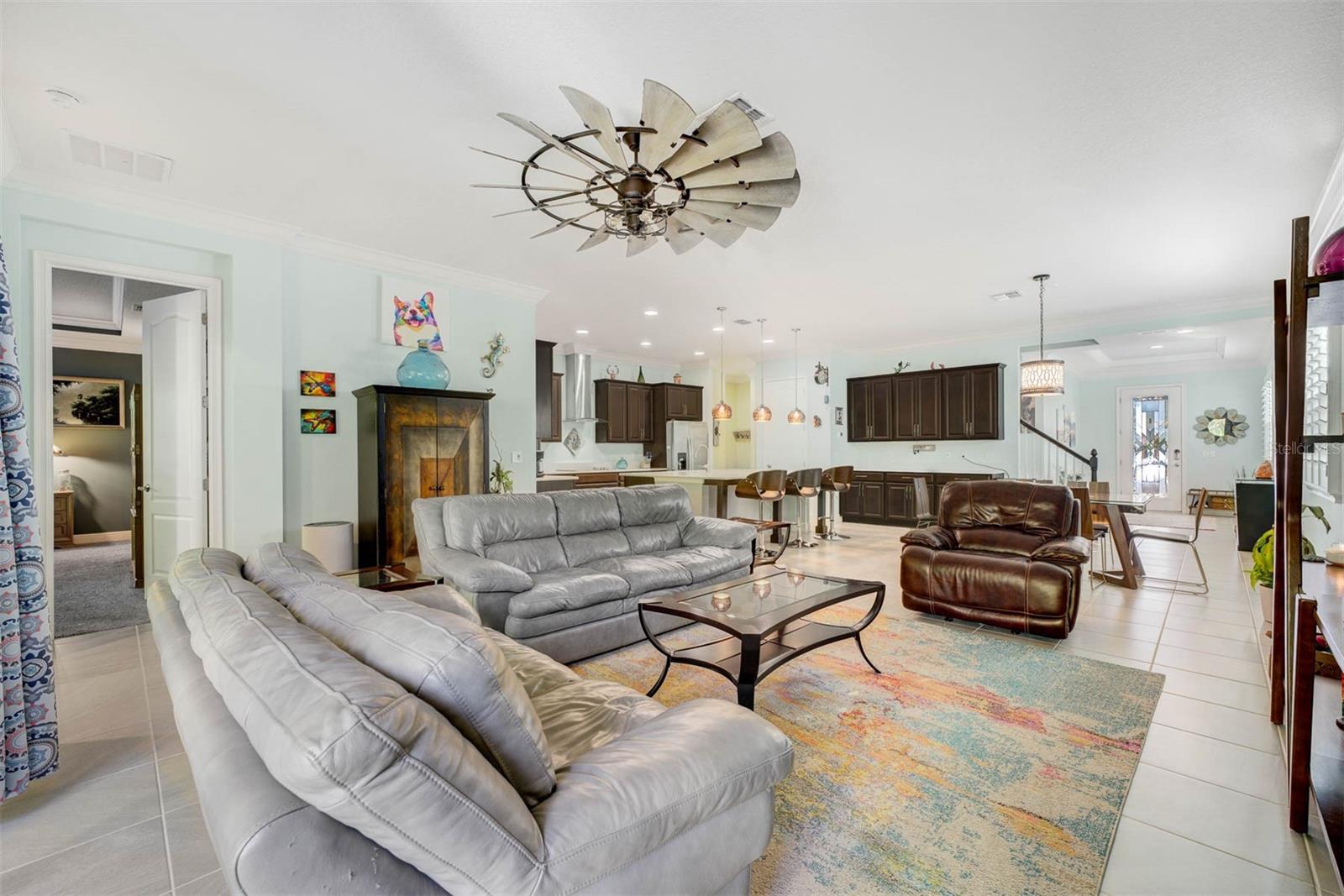 One or more photo(s) has been virtually staged. Multi-Generation Living at Its Best! Welcome to 10233 Henbury Street, a stunning single-family home perfectly designed for large or multi-generational families, offering space, luxury, and warmth in the heart of the highly sought-after Eagle Creek community. This nearly-new 5-bedroom, 5-bathroom masterpiece by Jones Homes offers over $100,000 in recent updates, making it a true gem. Featuring two spacious primary suites (one on each floor) and two large laundry rooms, this home ensures unmatched convenience and flexibility for every family dynamic. This home recently appraised for $965,000. The open-concept first floor is the heart of the home, bringing everyone together in a warm, inviting space that seamlessly combines the living, dining, family, and chef’s kitchen areas. The kitchen is a dream, featuring an oversized quartz countertop island, stainless steel appliances, and a walk-in pantry. Upstairs, a bonus multi-purpose loft offers endless possibilities — transform it into a game room, home gym, or theater. New wood flooring has been added throughout the 2nd floor. An additional third en-suite bedroom provides extra privacy and comfort for guests or family members. Step onto the spacious second-floor balcony and take in breathtaking views of a serene lake with a fountain, a perfect spot to relax while watching your children play. The backyard is an entertainer’s paradise, featuring tall landscaping, a privacy wall, and an expansive lanai with a built-in grilling area, creating an outdoor living space you’ll love. Situated in the vibrant Medical City area, this home is just minutes from the VA Hospital, Children’s Hospital, and other top-notch medical facilities. The Eagle Creek community offers world-class amenities, including multiple pools, basketball and tennis courts, scenic walking paths, and one of the country’s finest golf courses. Plus, you’ll enjoy the unique perk of watching rocket launches from the comfort of your own home. With no residential properties behind, this home offers unparalleled privacy and stunning lake views. Crown molding, custom plantation shutters, and fresh interior paint add a touch of elegance to every room. Every family member has their own private wing, while the open floor plan brings everyone together to create cherished memories. Don’t miss the opportunity to make this warm, family-friendly home yours and enjoy the pinnacle of comfort, luxury, and style in one of Orlando’s most desirable communities.