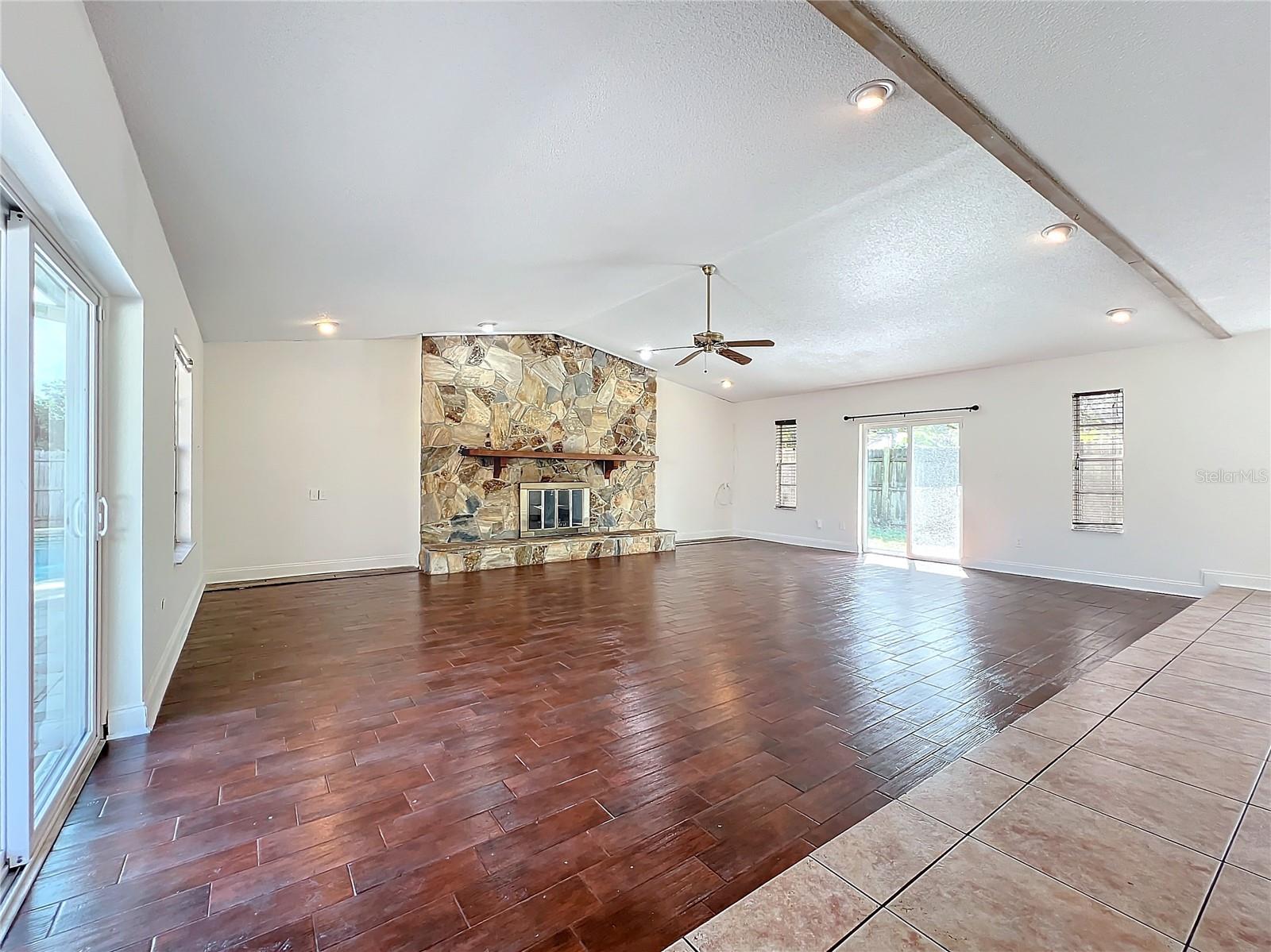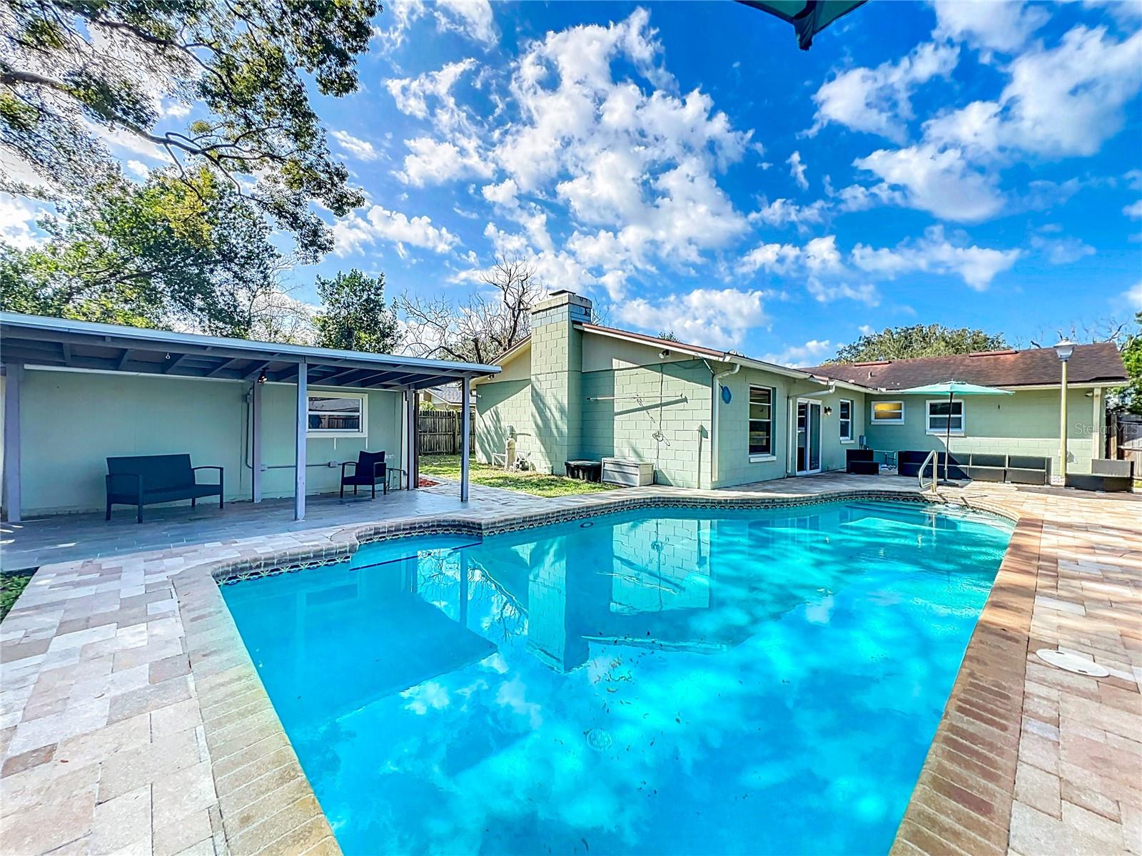 Experience the best of Florida living with this charming 3-bedroom, 1.5-bathroom home located in the well-established Kingswood Manor Community in Orlando. This remarkable property has it all! Upon entering, you're greeted by a cozy formal living room featuring a beautifully textured wall accent. To the left, you'll find the private quarters, including the primary bedroom with an en-suite bathroom, two additional bedrooms, and a remodeled guest bathroom. The updated galley kitchen boasts ample counter space, perfect for the resident chef. Adjacent to the kitchen, the dining area and breakfast bar offers versatile options for both formal and informal dining. Step down into the impressive 27' x 35' Great Room, the true heart of the home. With a wood-burning fireplace as the centerpiece and sliding glass doors on both sides, the space is bathed in natural light, providing a warm and inviting atmosphere. Outside, discover your private oasis. To the left, a spacious patio and oversized pool with depths ranging from 3 to 8 feet create the perfect setting for family gatherings and entertaining. The expansive paved deck and shaded, covered seating area enhance the outdoor experience. Additionally, the air-conditioned pool house can be customized to suit your needs as a guest suite, home office, or entertainment hub. Modern updates include energy-efficient double-paned windows, a newer HVAC system (2022), and a complete re-wiring of the home in 2024. Kingswood Manor residents enjoy access to community amenities, including a park, playground, tennis and basketball courts, and a community pool. Located in Orlando, this home has easy access to I-4, College Park, Downtown Orlando & Winter Parks famous Park Avenue home to all the fabulous shopping and restaurants and so much more. Schedule your showing today. You don’t want to miss this one. It will not last long.