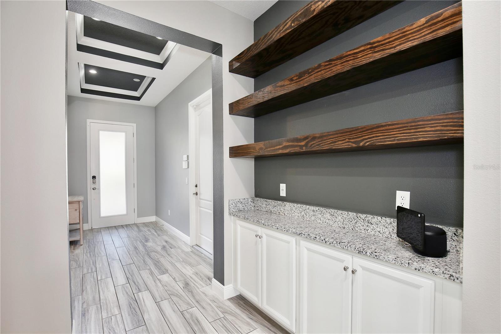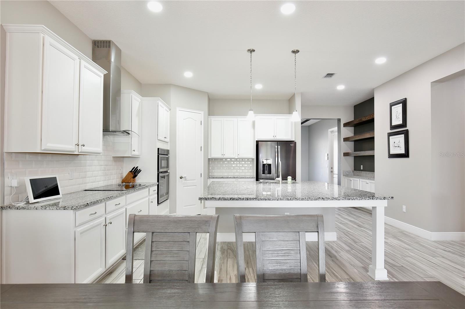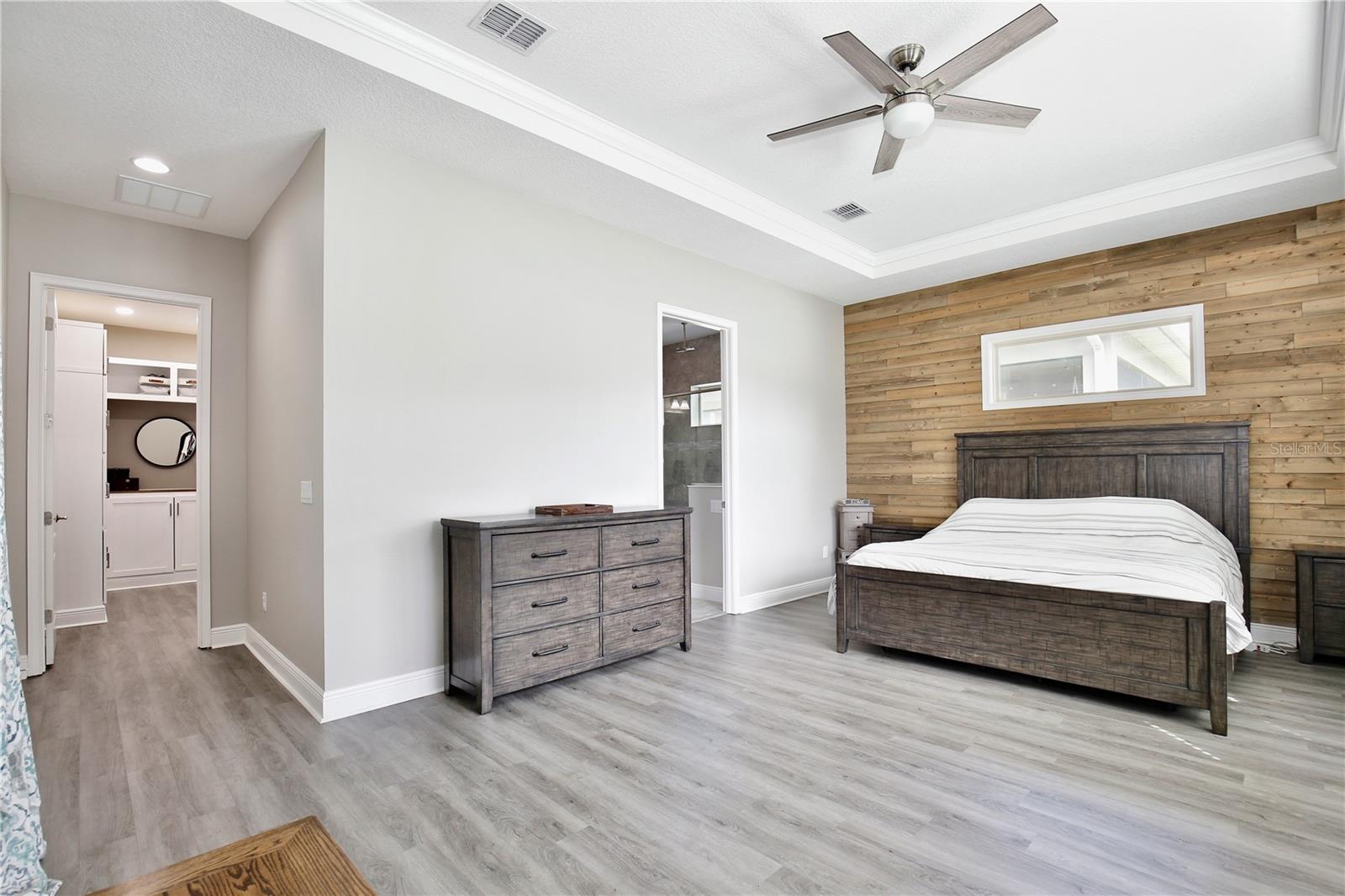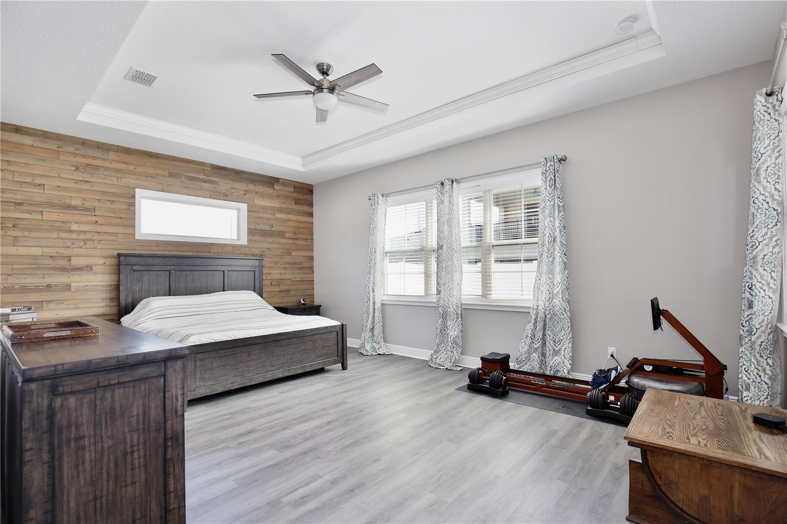 Welcome to your dream home, where luxury meets convenience in a stunning residential oasis! This elegant four bedroom, three bathroom house offers an unrivaled living experience that caters to everyone's taste. Revel in the curb appeal with its impressive stone facade and columns, two car garage, and beautiful landscaping, all complemented by a paver driveway. Step into the foyer, where tray ceilings with recessed lighting and a stylish glass door entry set the stage for what awaits within. Culinary enthusiasts will be enamored with the gourmet kitchen, boasting a convenient butler's pantry, sleek shaker cabinets topped with crown molding, gleaming granite countertops, stainless steel appliances, and a chic bar top seating area bathed in the glow of pendant lights. Enjoy the added luxury of a built in oven and microwave, stylish subway tile backsplash, and a modern cooktop with a range. Entertaining is a breeze in the adjacent dining room, where a rustic chandelier adds ambiance, seamlessly flowing into the living room. The custom wood panel accent wall creates a warm and inviting atmosphere, while sliding glass doors provide access to the screened patio, a serene space for relaxing or hosting gatherings. The primary suite is a private retreat featuring a tray ceiling, a wood panel accent wall, and a custom built walk in closet designed to impress. The en suite bathroom offers a spa like experience with a spacious glass door shower and dual vanities. The home also includes three additional guest bedrooms and two well-appointed guest bathrooms with tub/shower combos and granite counter vanities. Efficiency is key in the large laundry room, complete with ample cabinet storage and a sink. Outside, the fenced backyard ensures privacy while you enjoy the Florida sunshine. Residents benefit from a community amenity center featuring a swimming pool, playground, meeting rooms for hosting events, and a fitness center. This prime location is minutes from the shopping and dining of Avalon Park and Waterford Lakes Town Center, highly rated schools, and UCF. Don't miss the opportunity to explore this gem—take the 3D virtual tour and schedule your personal showing today to experience this breathtaking residence firsthand!