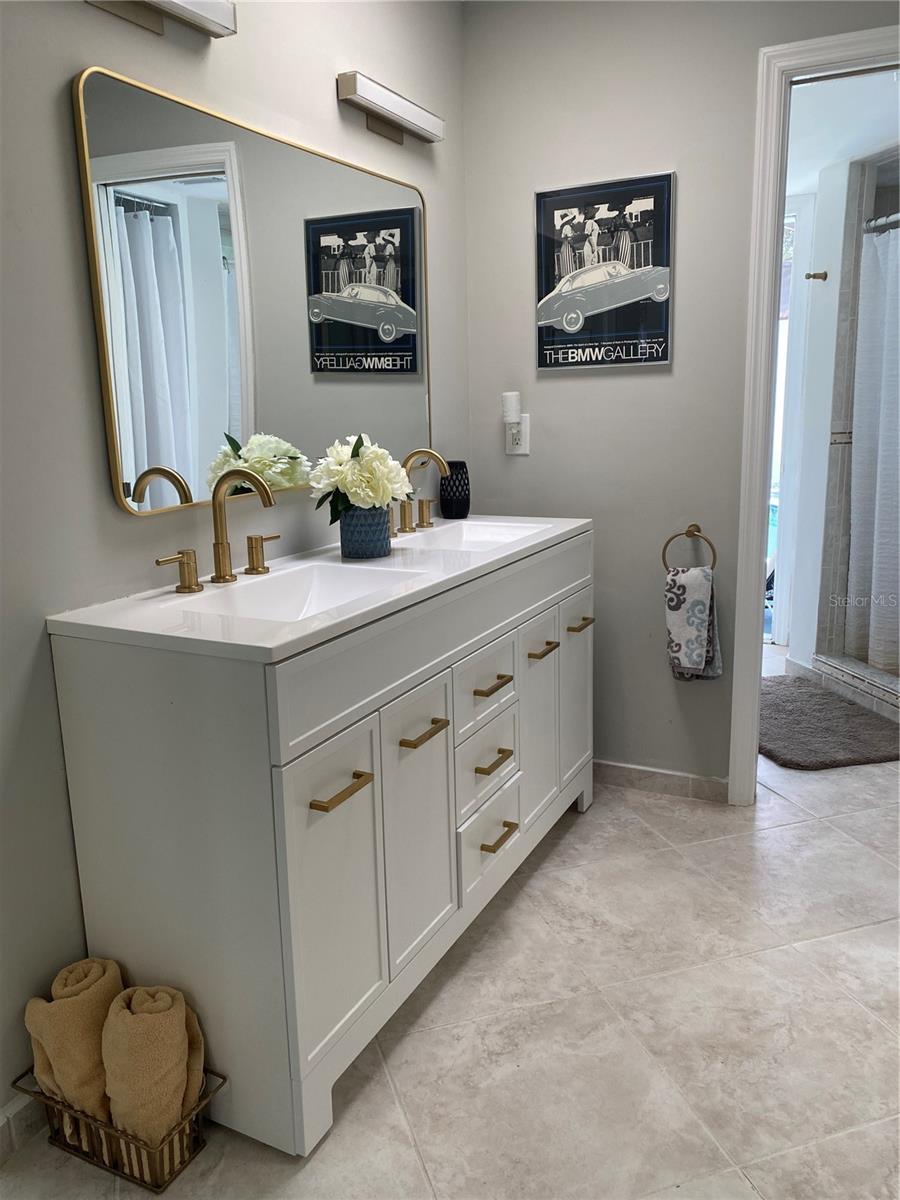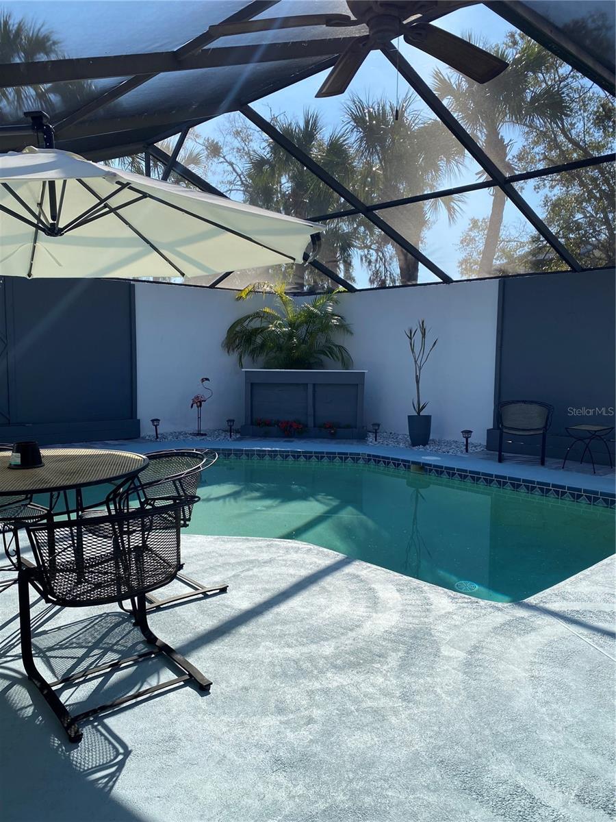 Welcome to this elegant MOVE IN READY villa filled high-end features designed for entertaining, comfort and sophistication. upon entering, you will immediately feel the expansive volume ceilings, warmth of the soft gray color palette and beautifully designed fireplace in this open floor plan living area. The chef inspired kitchens appeal is further elevated by stunning granite countertops, new Frigidaire Gallery appliances that include gas/convection stove combination, French door refrigerator and state of the art microwave. Other features include updated lighting, touchless faucet, pull out cabinet drawers and lots of storage. The split floorplan offers a spacious primary bedroom with volume ceiling, a modern ensuite bathroom with a large dual sink vanity, abundant closet space and a separate shower area. The sunny 2nd bedroom offers a large closet space with shelving system in place. The beautifully landscaped pool area and updated summer kitchen all inspire a resort -like atmosphere within a private tranquil setting. This unit has been tastefully and professionally updated to allow years of carefree ownership. Updated include a new HVAC, plumbing throughout, maintenance free flooring, pool pump, LP tankless hot water system, and much more. The garage is freshly painted with a new garage door and opener. The garage is oversized for 2 cars. Enjoy community amenities such as a sparkling swimming pool to enhance your social and active lifestyle. This home blends elegance and modern effortlessly, fulfilling all your desires. DON'T MISS THIS OPPORTUNITY TO MAKE THIS UNIQUE PROPERTY YOUR HOME! Property appraiser shows property as 3 bedroom. The property is 2/2 with a summer kitchen.