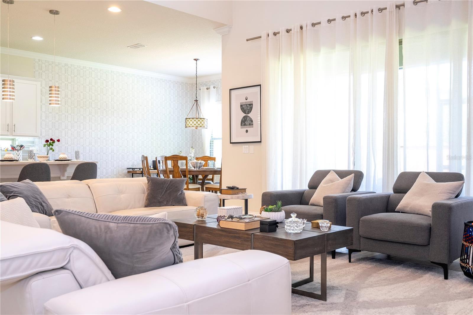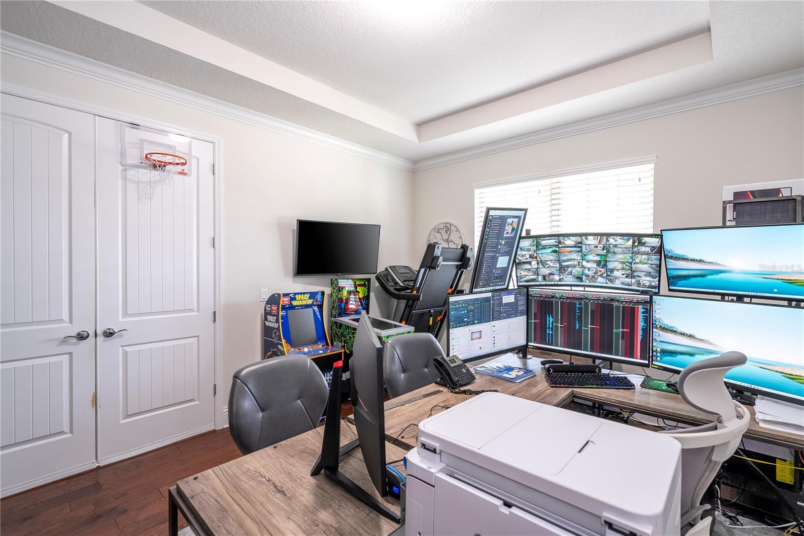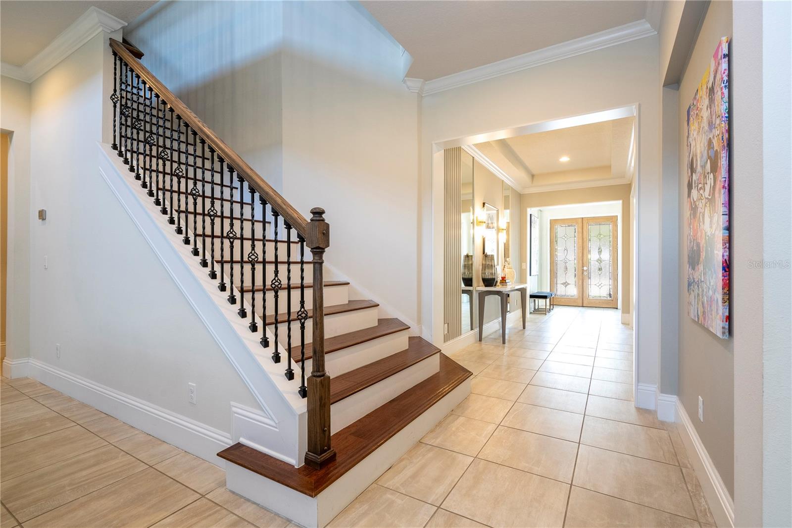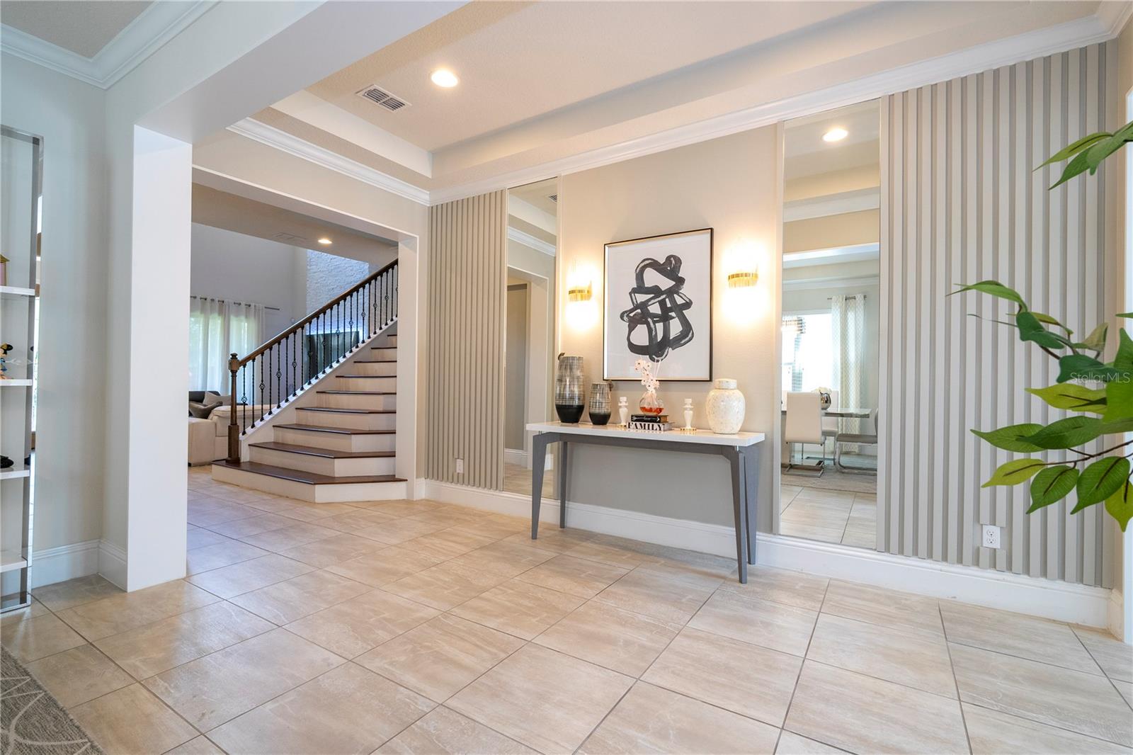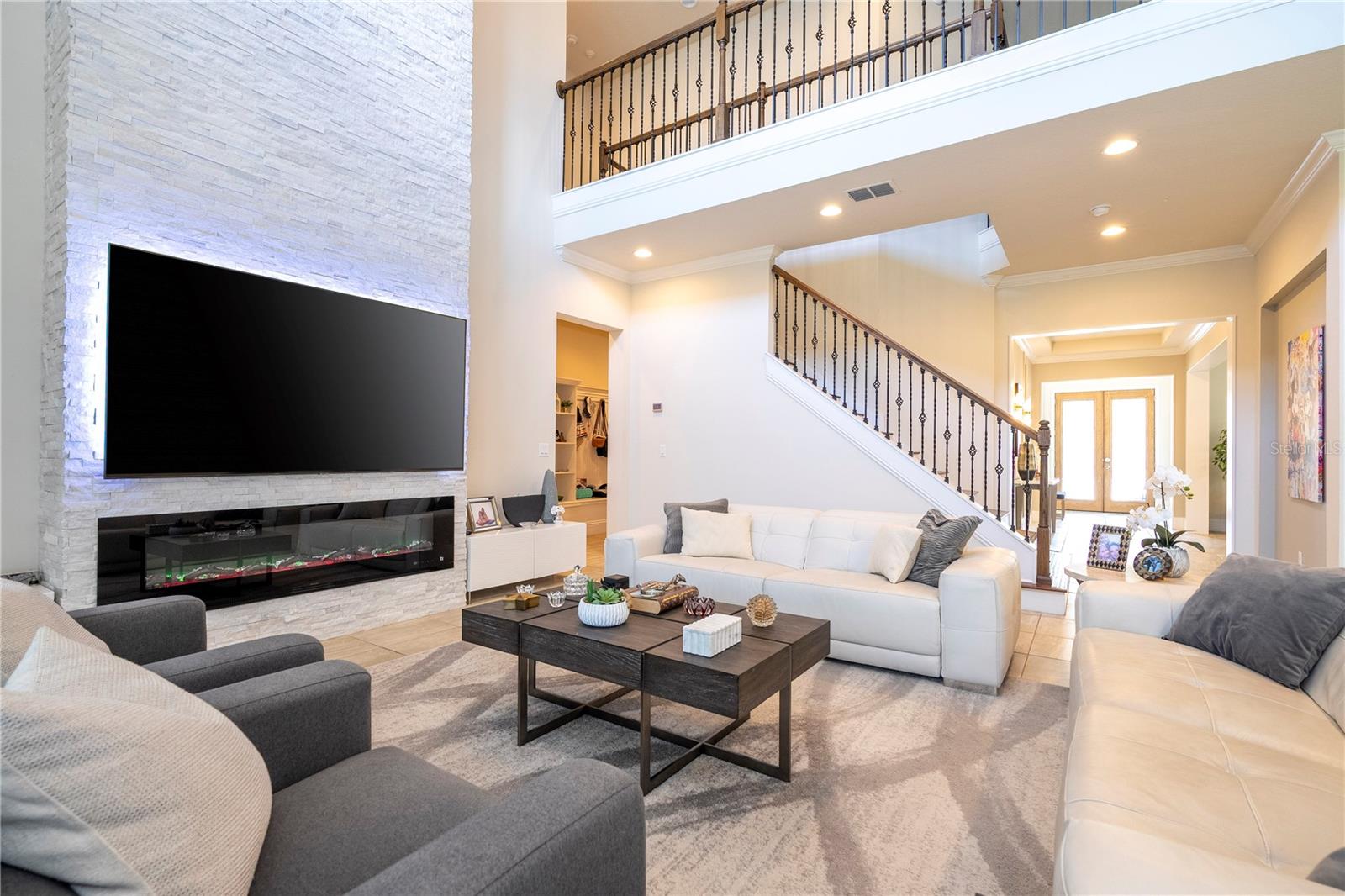Welcome home to 9520 Royal Estates Blvd, located in the highly sought-after Windermere/Winter Garden/Horizon West area. Nestled within the exclusive Royal Legacy Estates community of just 169 distinctive single-family homes, this property boasts an exceptional location—so close to Disney you can hear the iconic whistle of the Magic Kingdom railroad and enjoy nightly views of the spectacular Magic Kingdom fireworks. This meticulously maintained, move-in ready Kendelwood model (the largest model available in the community) features 5 spacious bedrooms, a private office, and 4 full bathrooms. Perfectly situated on a prime lot, it's conveniently located near the new Castleview Elementary School and the community pool. The home's stunning two-story great room is bathed in natural light and seamlessly opens through sliding doors onto an upgraded, extended lanai and spacious backyard. Designed with an open floor plan ideal for entertaining, the gourmet kitchen features upgraded stainless steel appliances, premium "Tundra Ice" countertops, and an expansive walk-in pantry. Adjacent to the kitchen, the inviting living area impresses with soaring ceilings and a breathtaking stone fireplace complemented by an 85" TV. Guests will appreciate the comfort and privacy of the first-floor multi-generational ensuite bedroom located near the front entrance. Flexible spaces such as a bonus room, dining area, and convenient full lanai bathroom provide ample opportunities to balance work and leisure from home. Ascend the custom wood staircase to the luxurious master suite, featuring a private flex area, a spa-inspired bath, and two generously sized walk-in closets. The second floor also includes a Jack-and-Jill suite connecting two additional bedrooms, and a fourth bedroom featuring its own private ensuite—all bedrooms equipped with walk-in closets. A conveniently placed laundry room on this floor simplifies household tasks. Further enhancing comfort and convenience, the home includes generous storage options throughout, a 3½-car garage, and two recently installed AC units (July 2020) for optimal climate control. A direct-connect generator hook-up ensures peace of mind. Additional upgrades such as custom closets, wood flooring on the second floor, upgraded lighting fixtures, and wood accents add to the home's refined appeal. With low HOA dues, Royal Legacy Estates offers resort-style living complete with a community pool, beautifully tree-lined sidewalks, and scenic trails perfect for exercising, pet walks, or enjoying Florida's natural beauty. The new Castleview Elementary School and Taborfield Neighborhood Park are both within easy walking distance—Castleview is close enough for you to comfortably watch your child enter and exit school from your porch. Ideally located near dining, shopping, highly rated schools, I-4, SR 429, east and west coast beaches, and Central Florida’s world-renowned attractions, this property offers an exceptional opportunity to experience the Florida lifestyle you've always dreamed of.